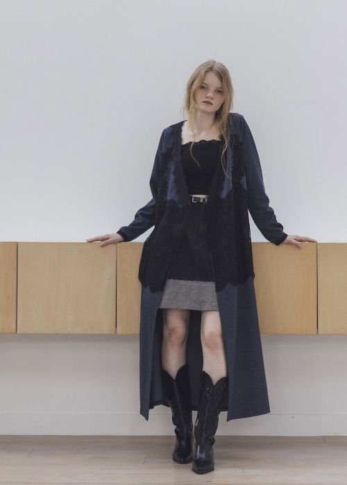 frill pocket center seam bi color stitch denim