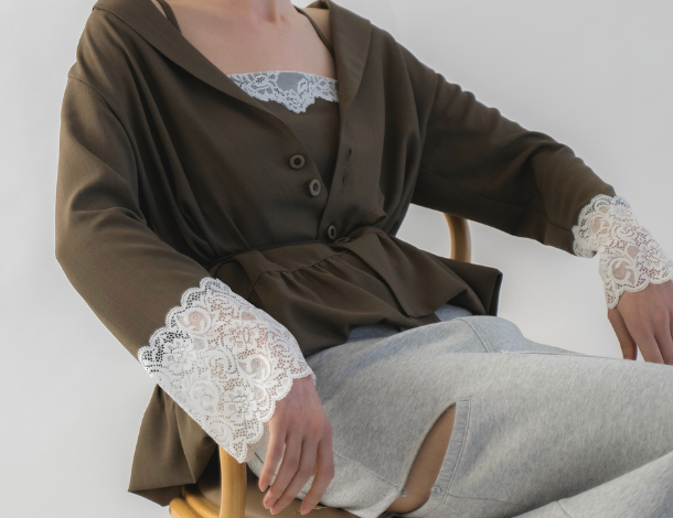cuffs lace hem balloon frill JK
