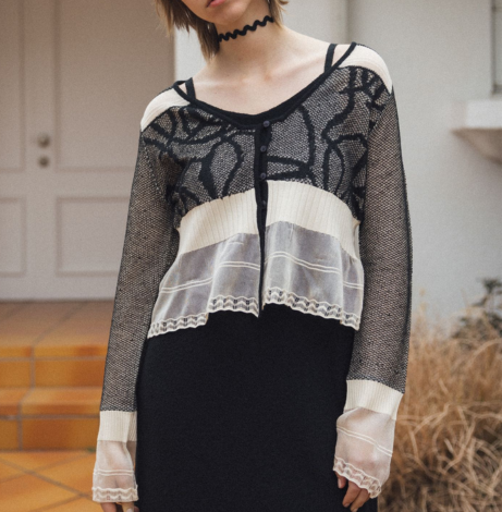 jacquard pattern sheer knit cardigan