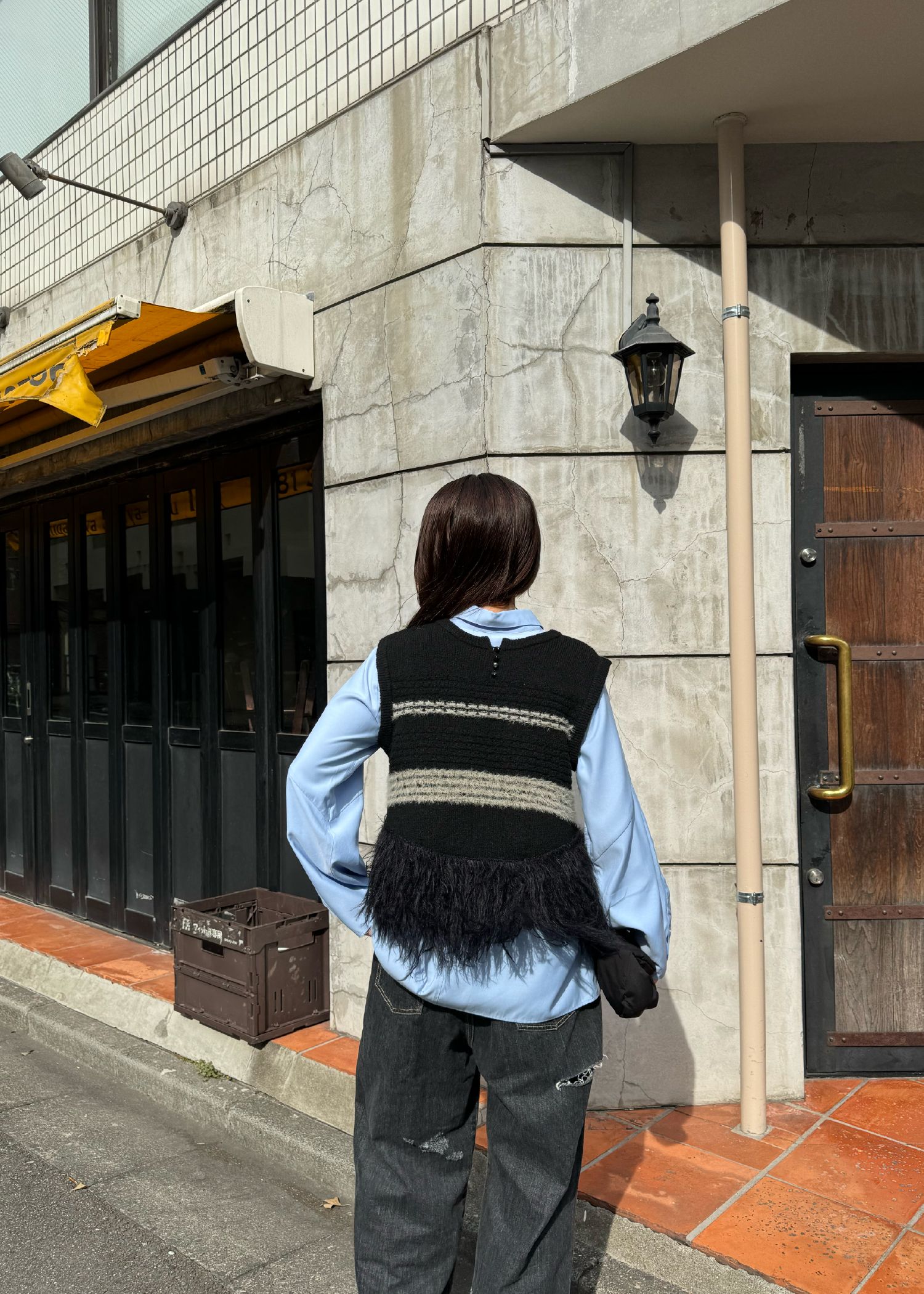 • fringe hem random border no sleeve knit