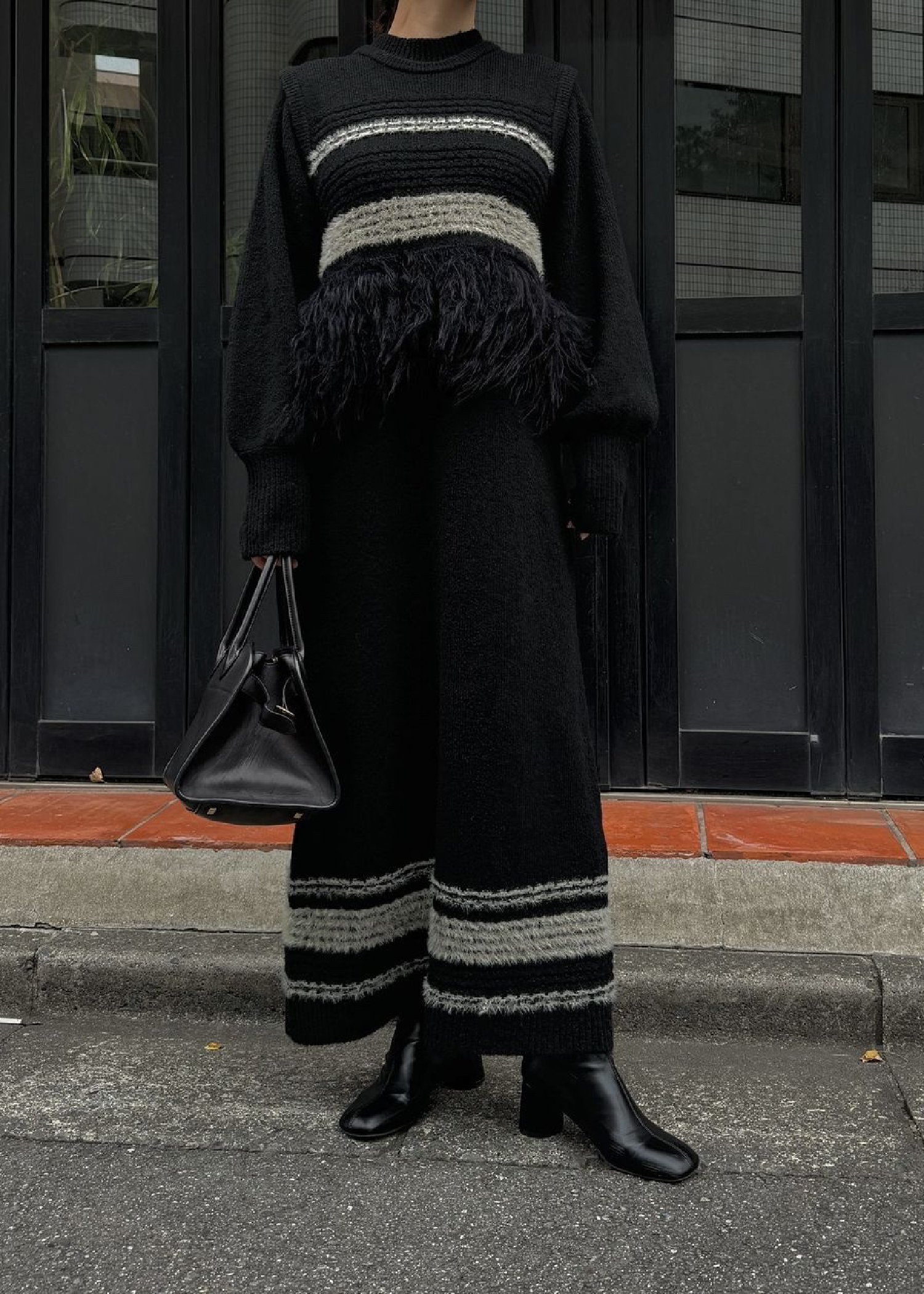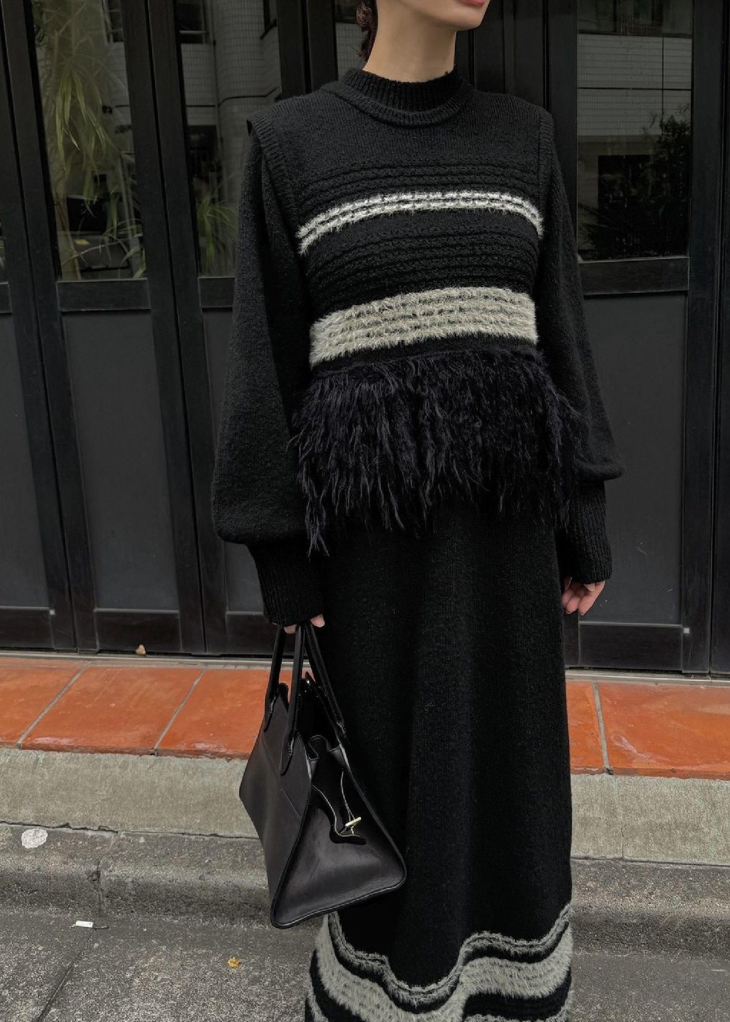 fringe hem random border no sleeve knit