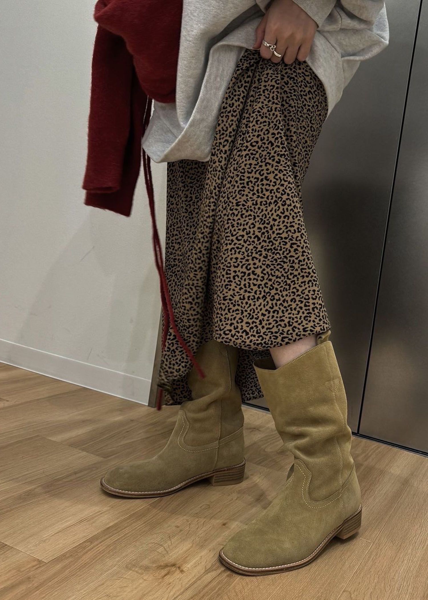 leopard print long trapeze skirt