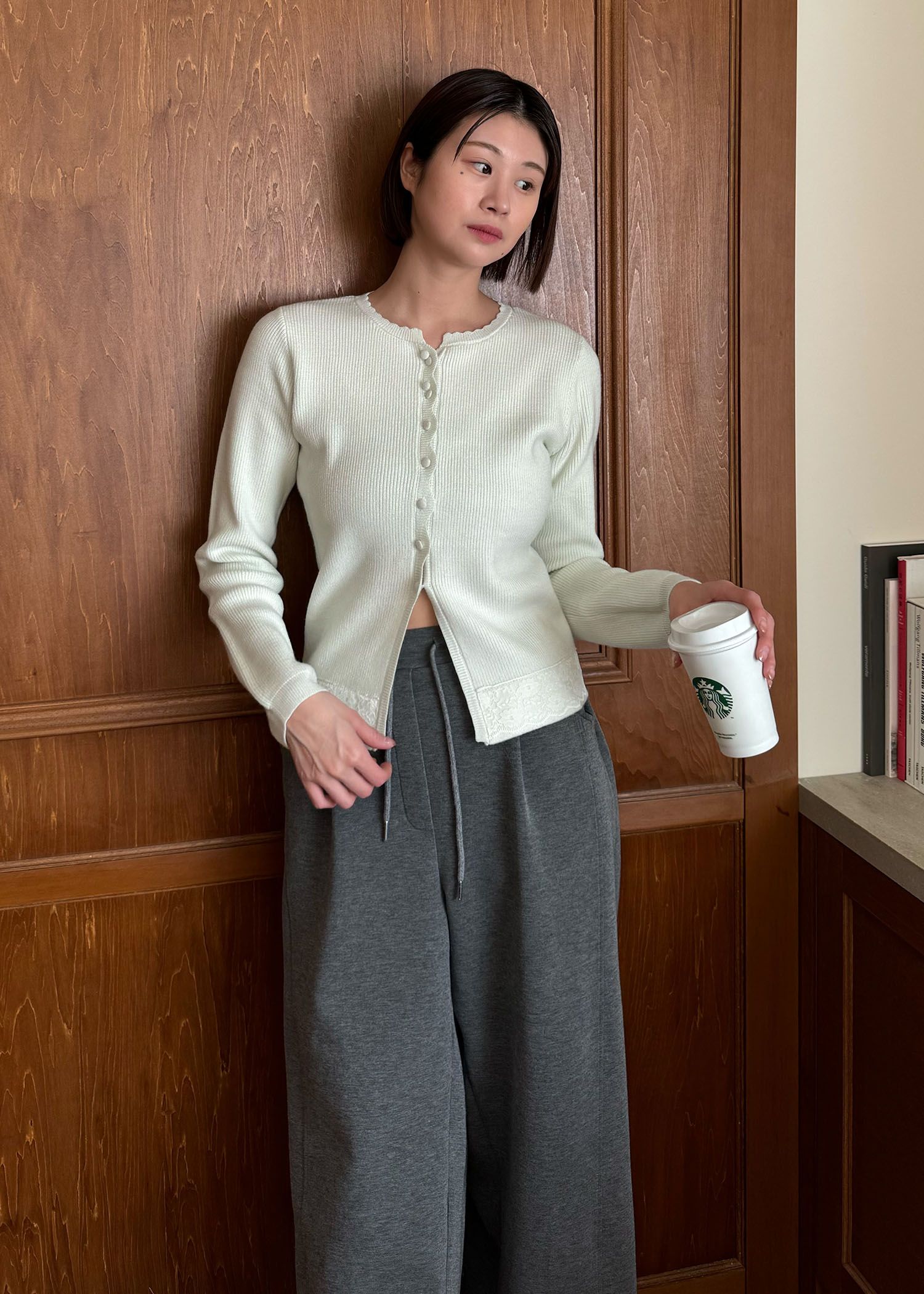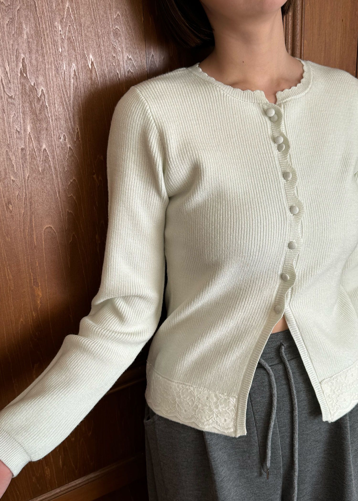 lace combination scallop knit cardigan