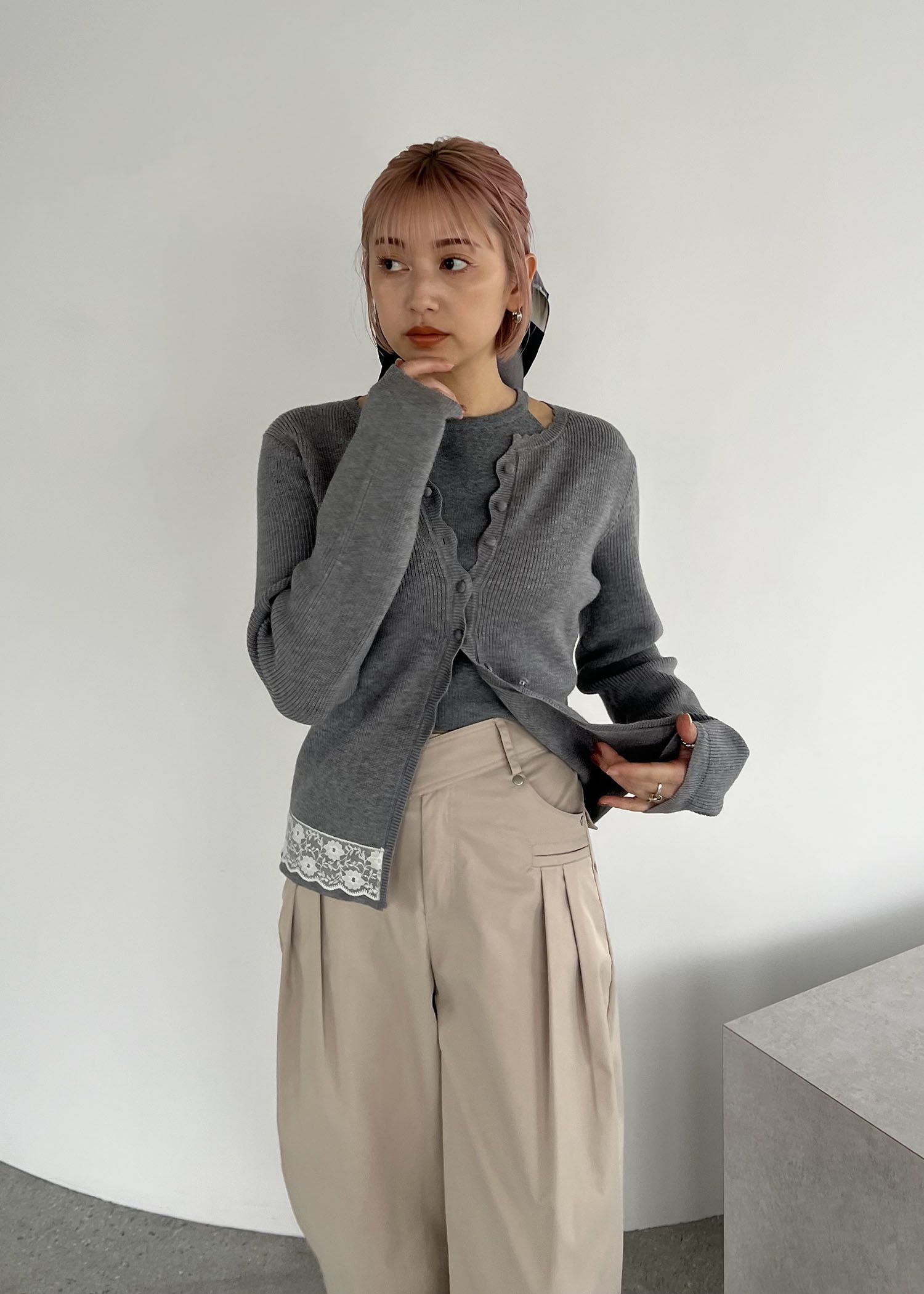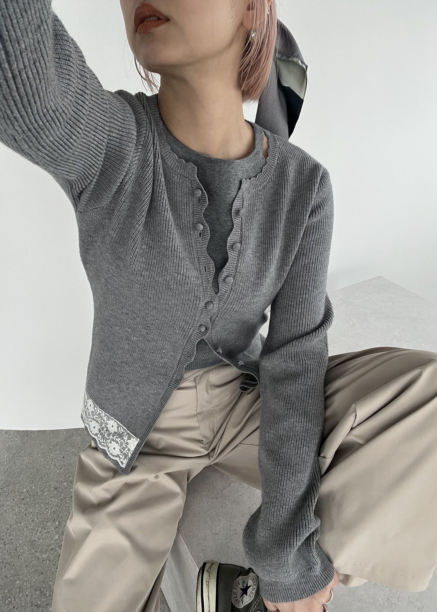 lace combination scallop knit cardigan