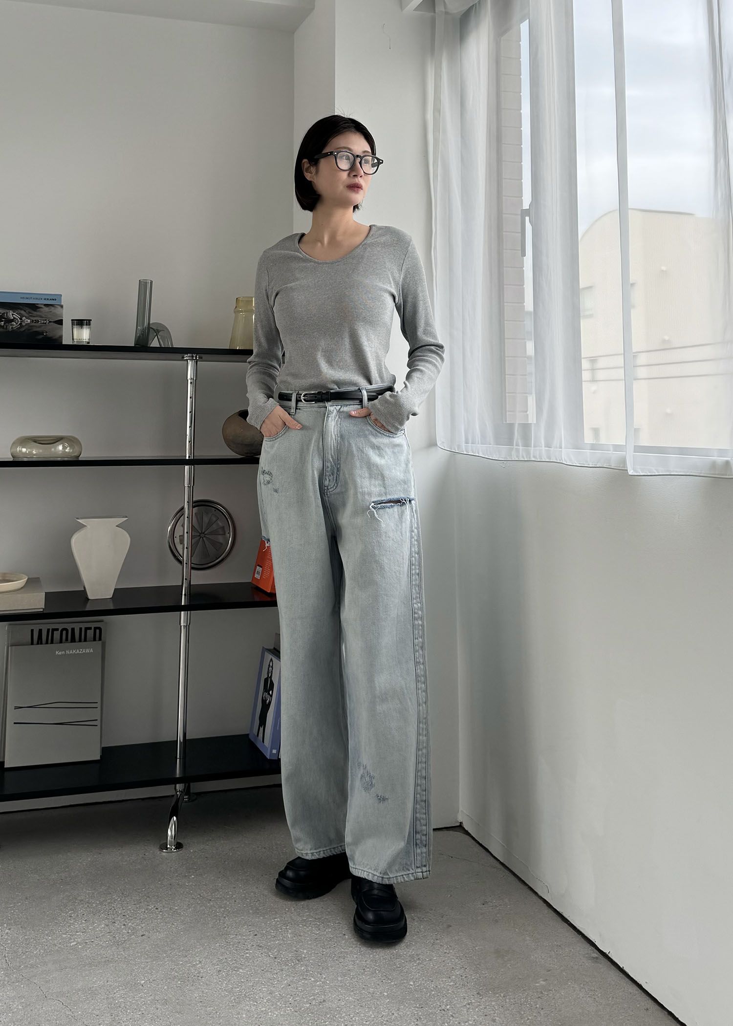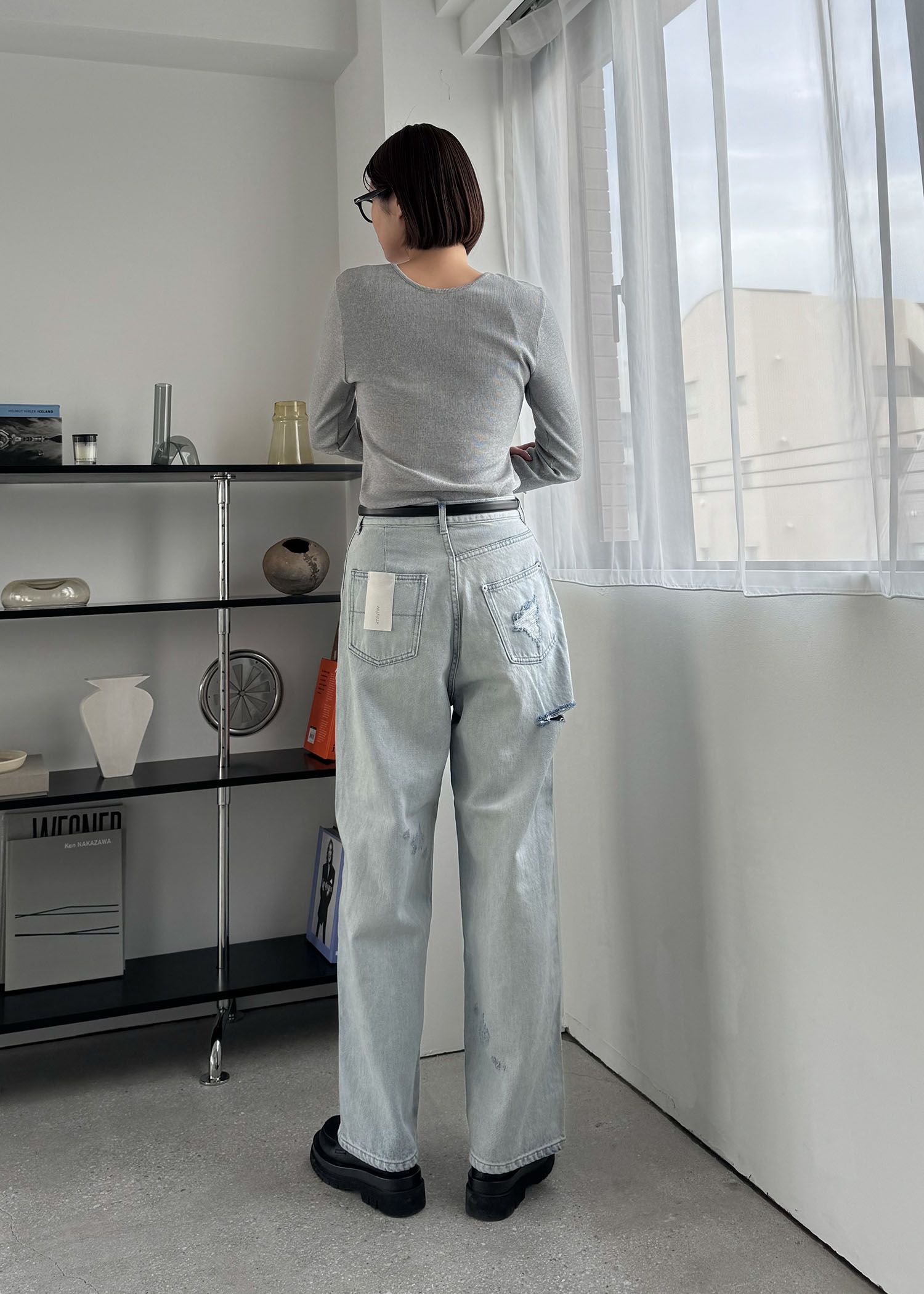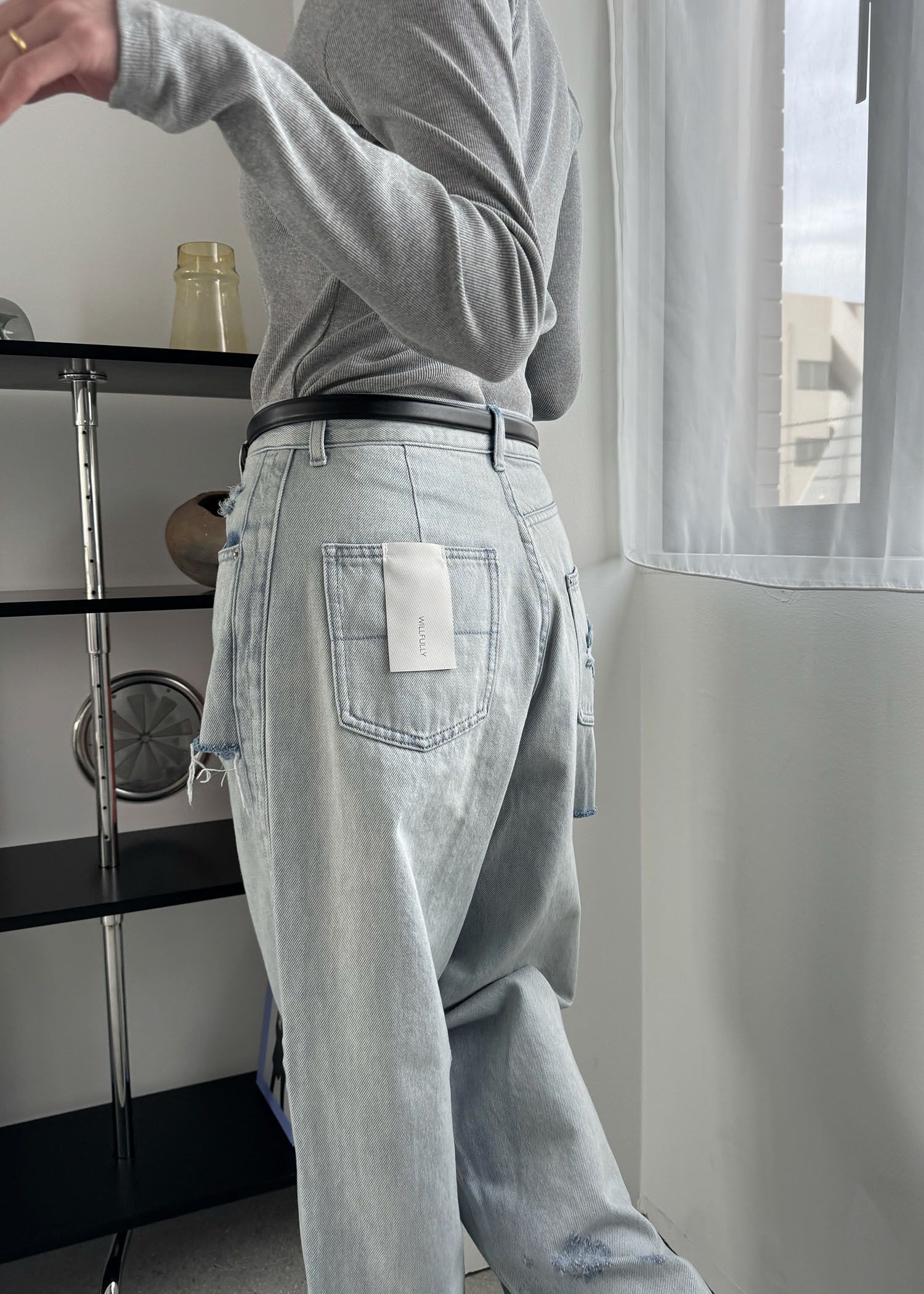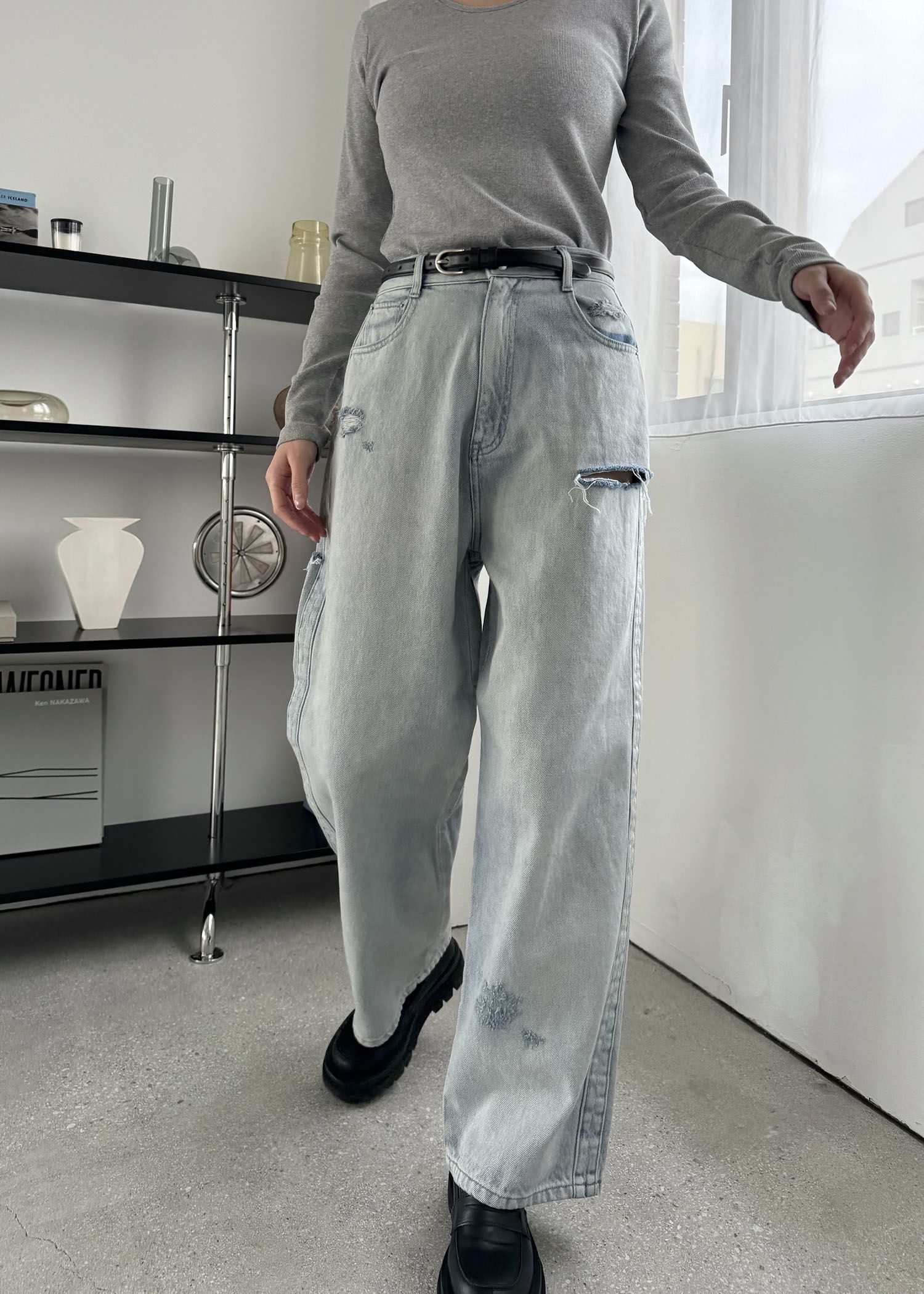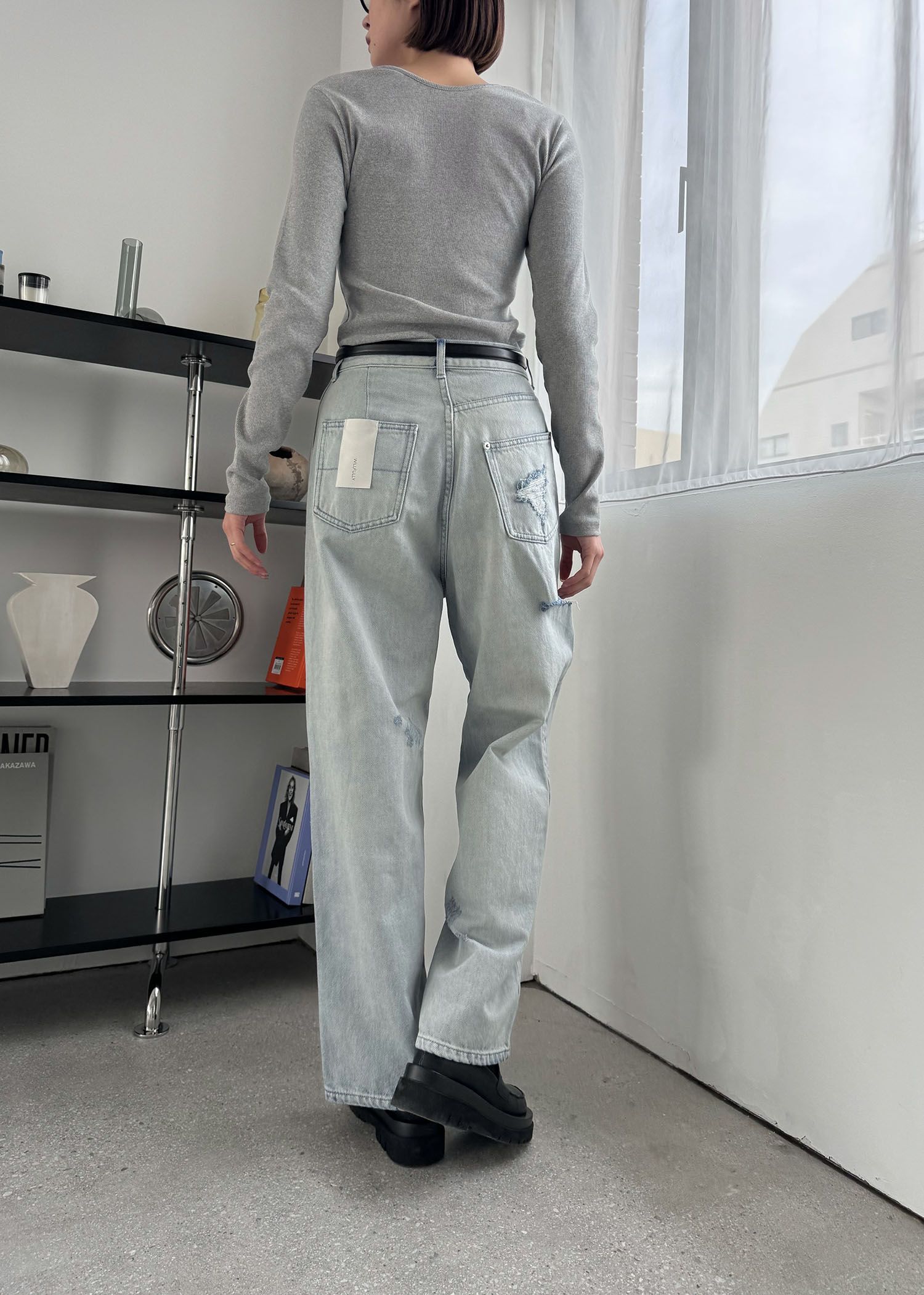 SS loose distressed effect denim PT