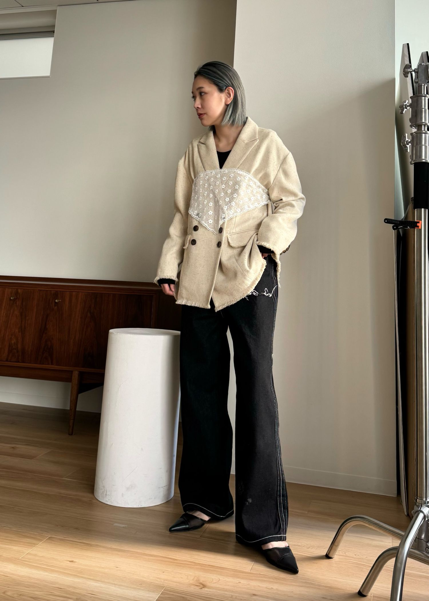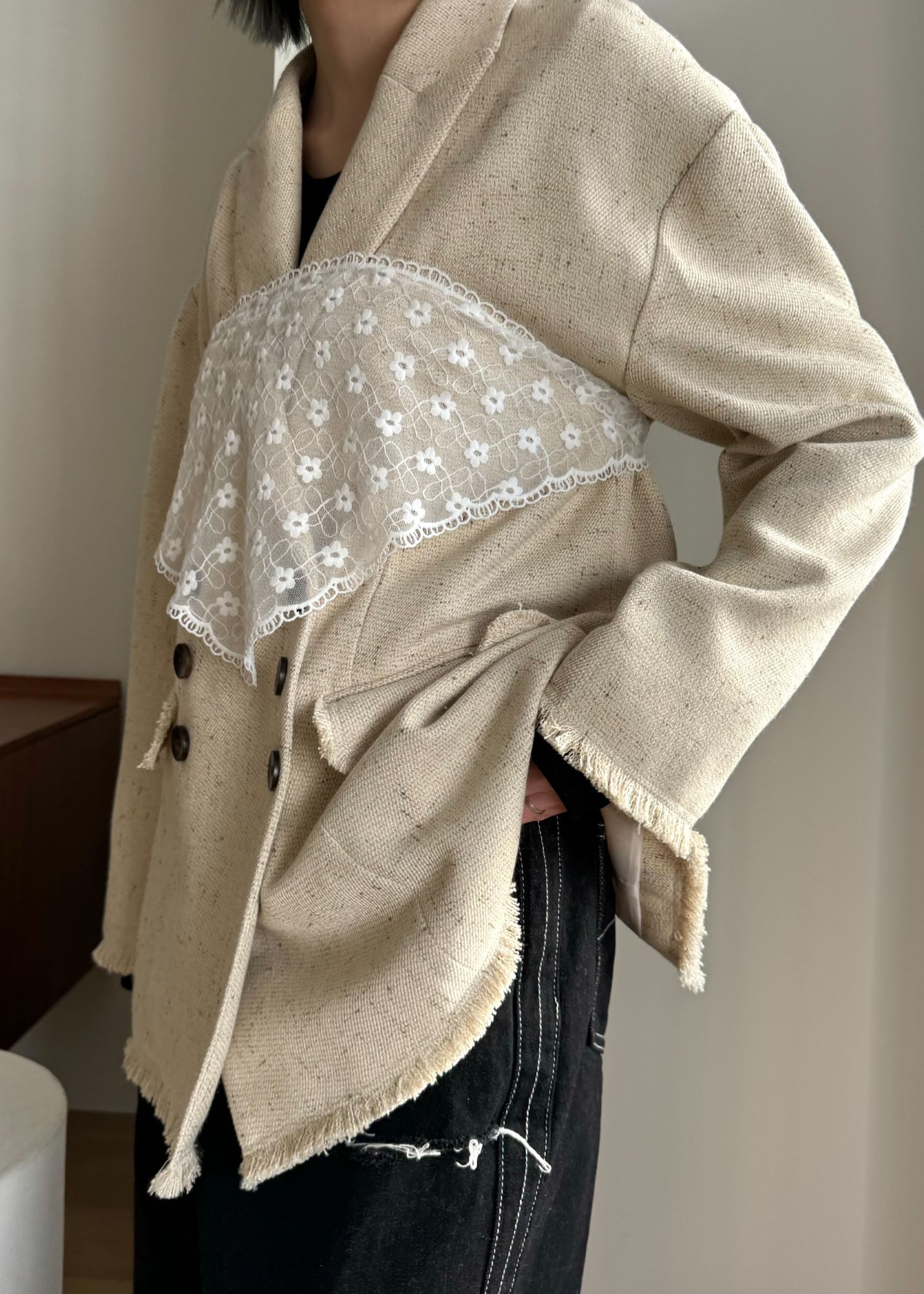 SS loose distressed effect denim PT