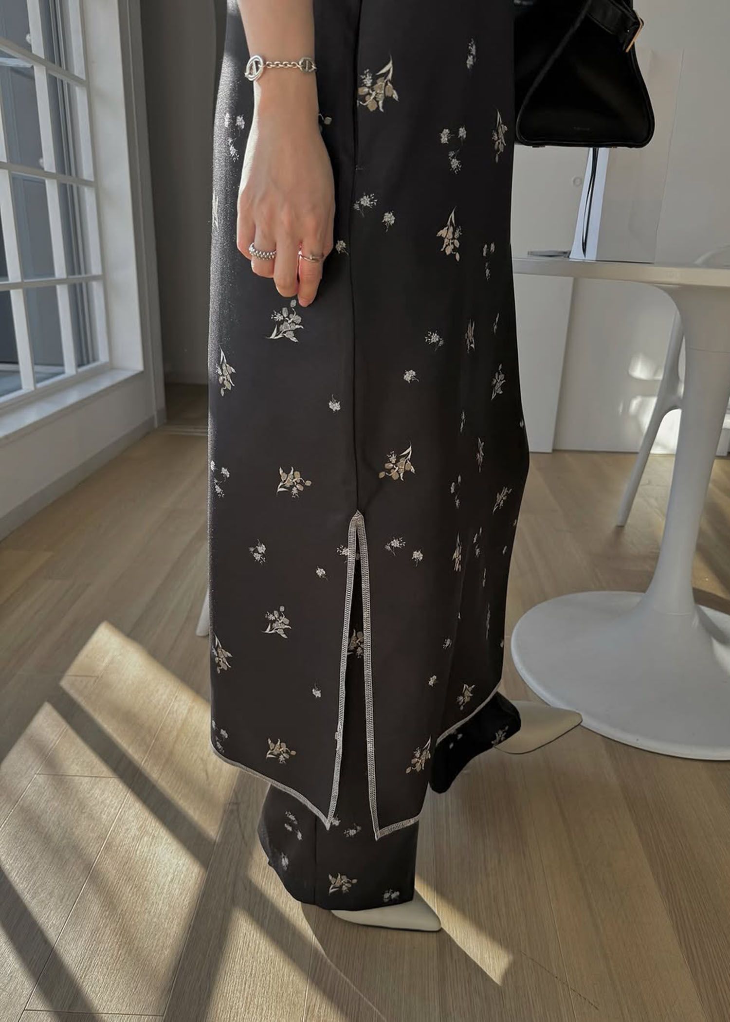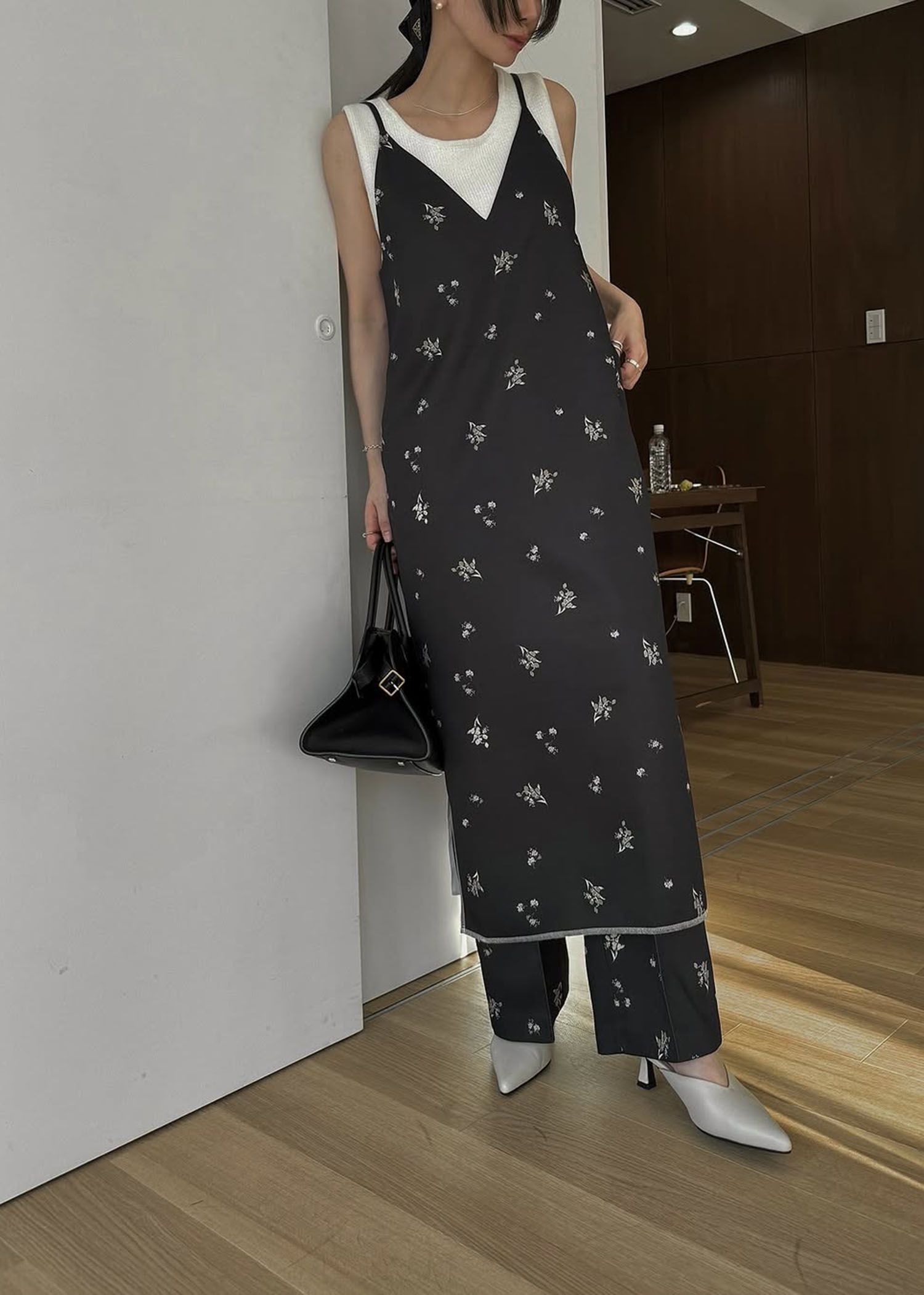 deep side slit ditsy print camisole OP