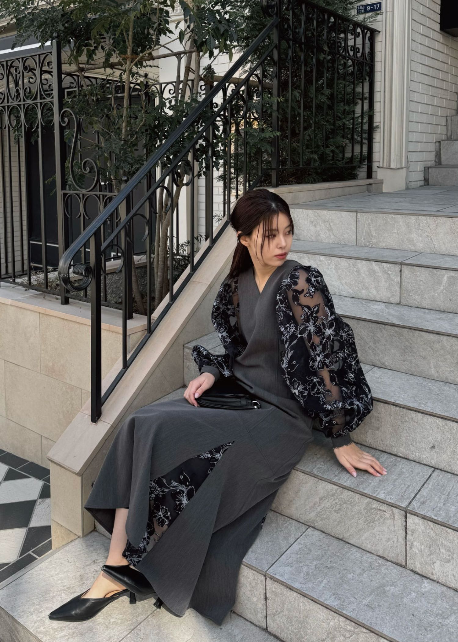 organdy flower volume sleeve panel OP