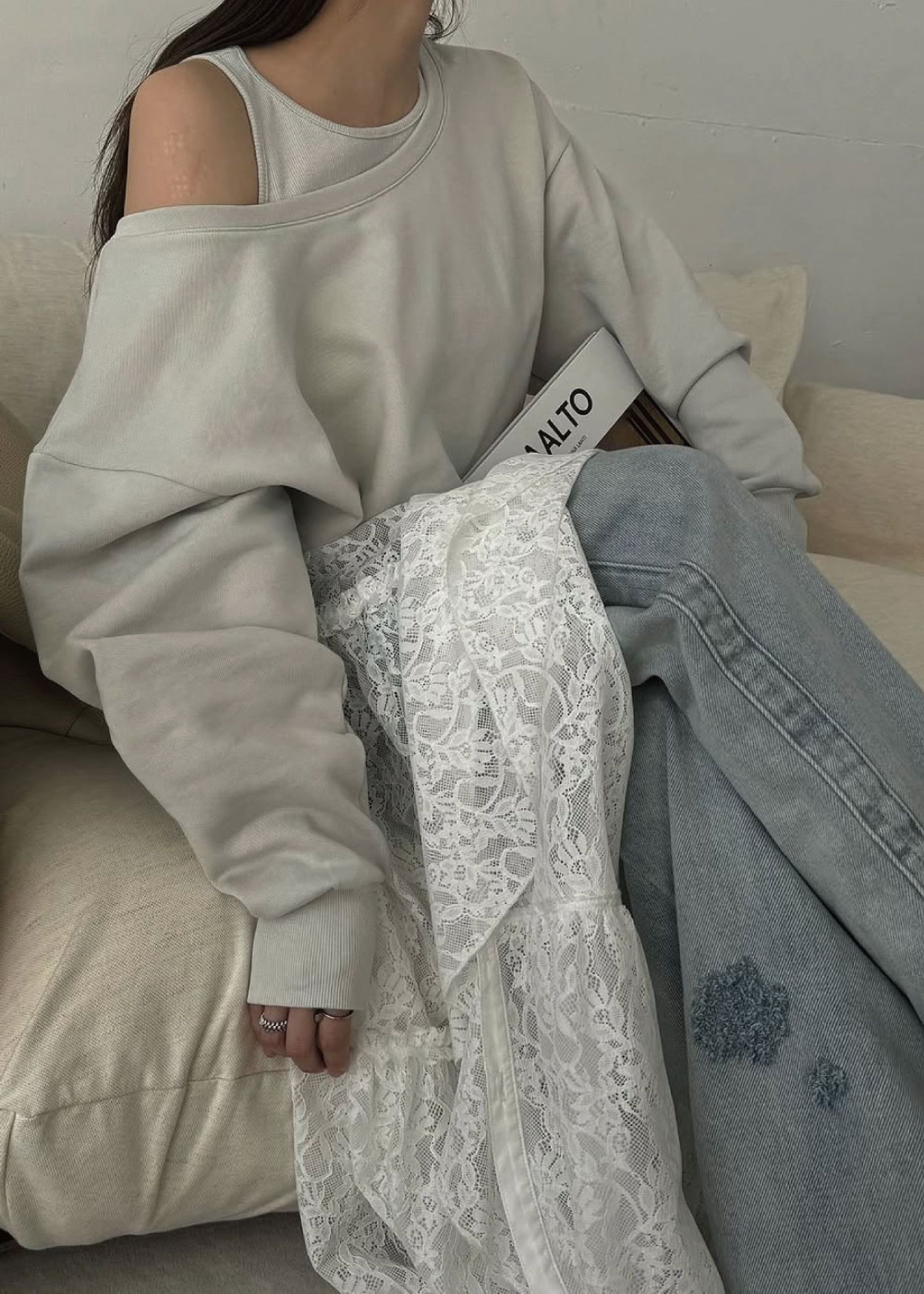 SS loose distressed effect denim PT
