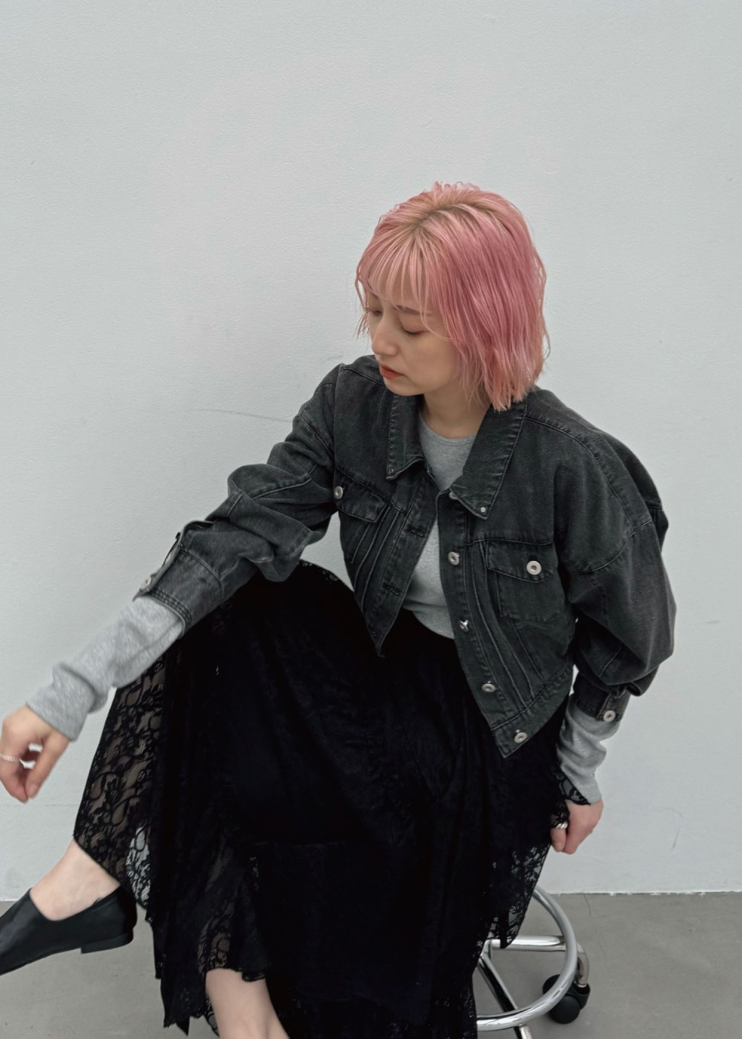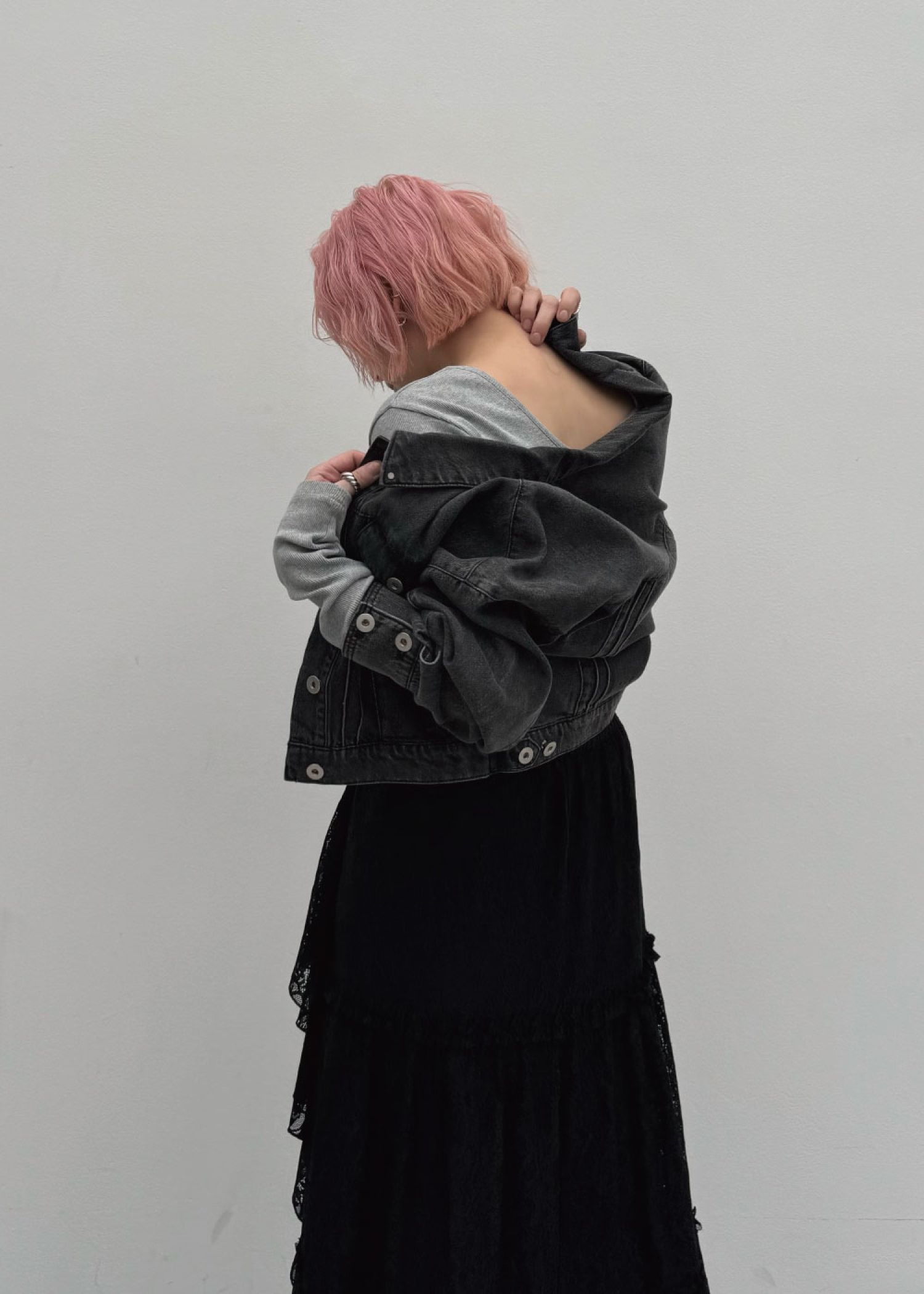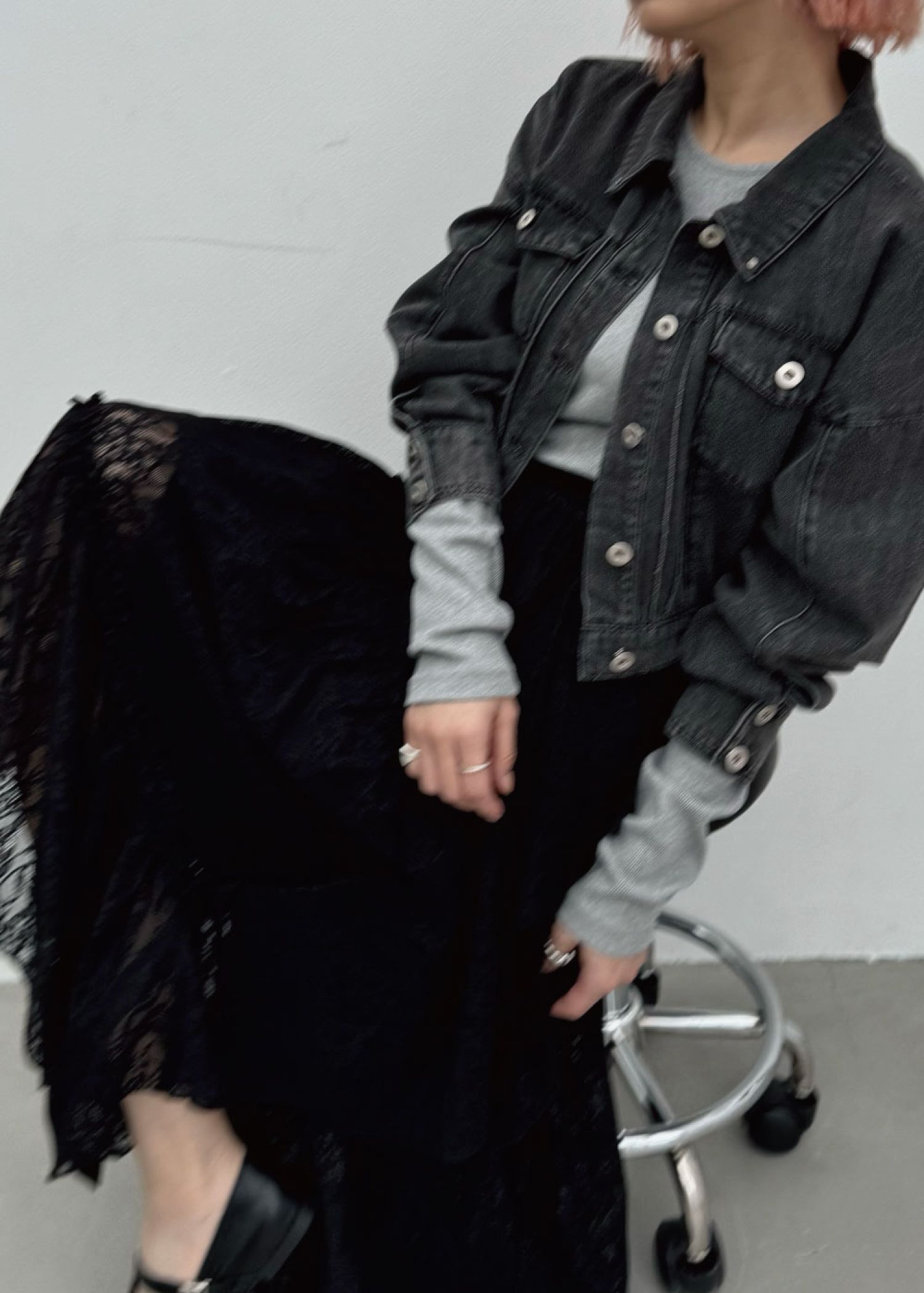 short denim bi color stitch JK