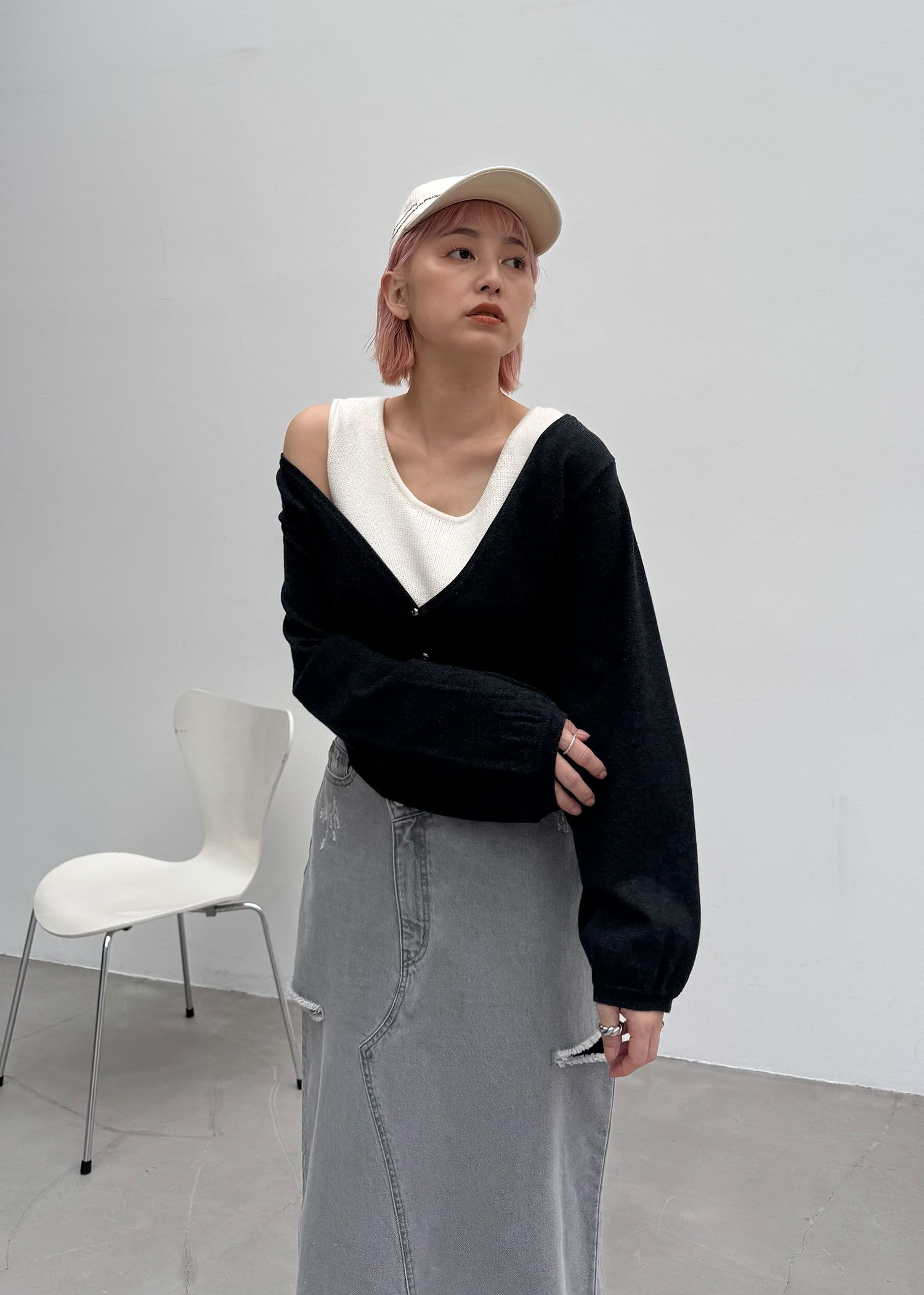 cropped V neck knit cardigan
