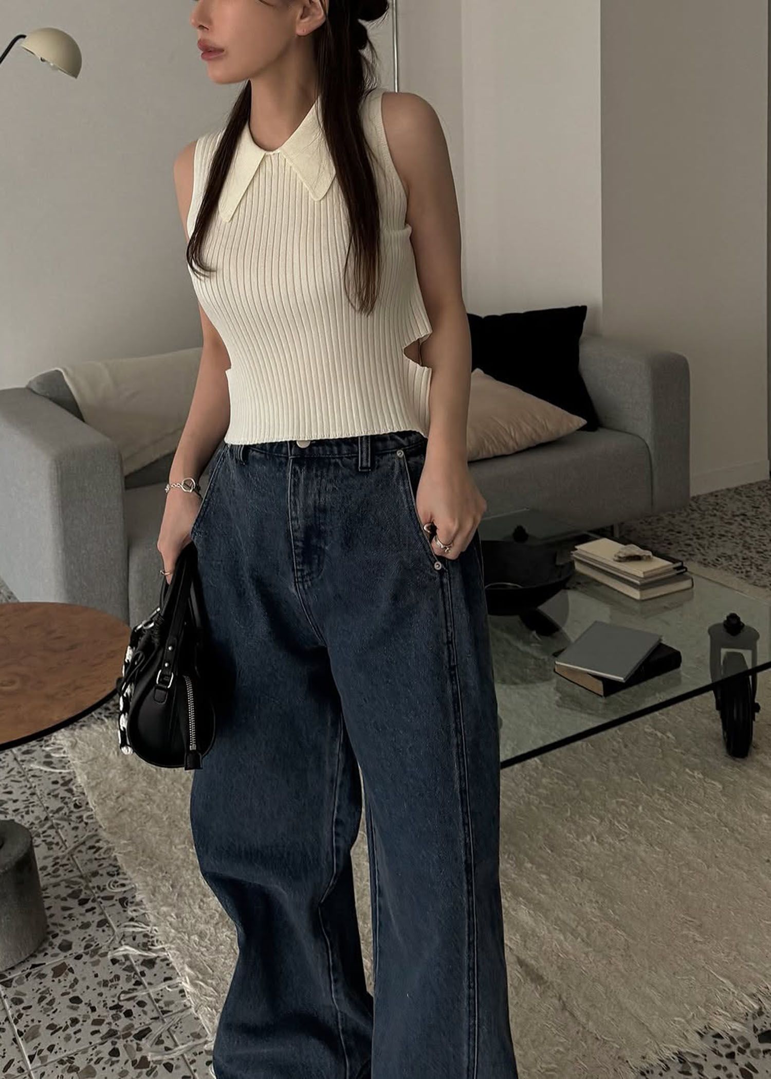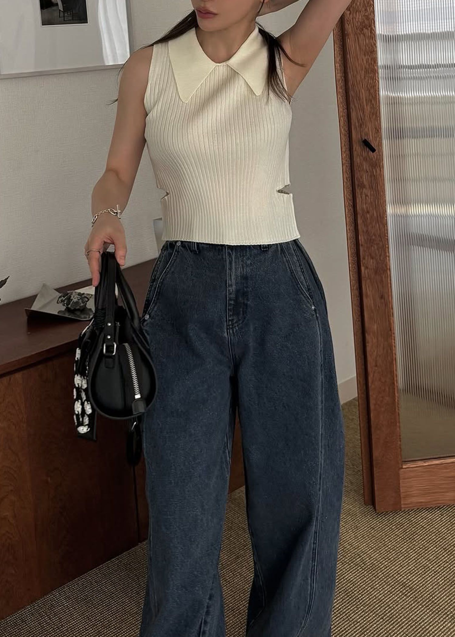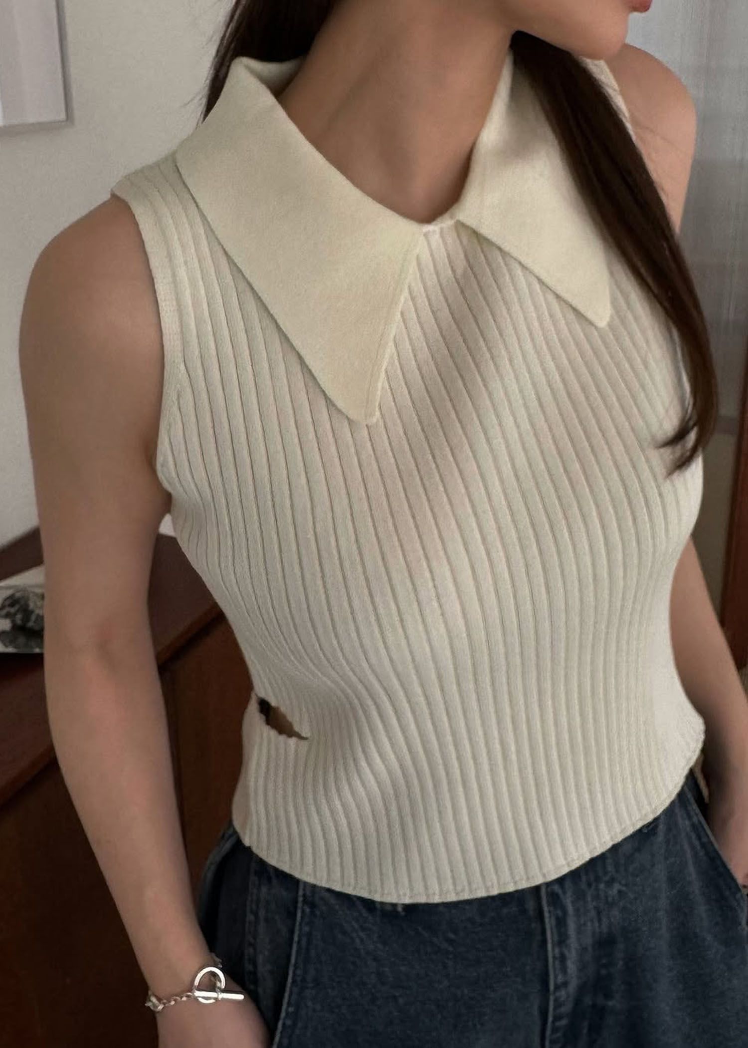 side notch no sleeve collar knit