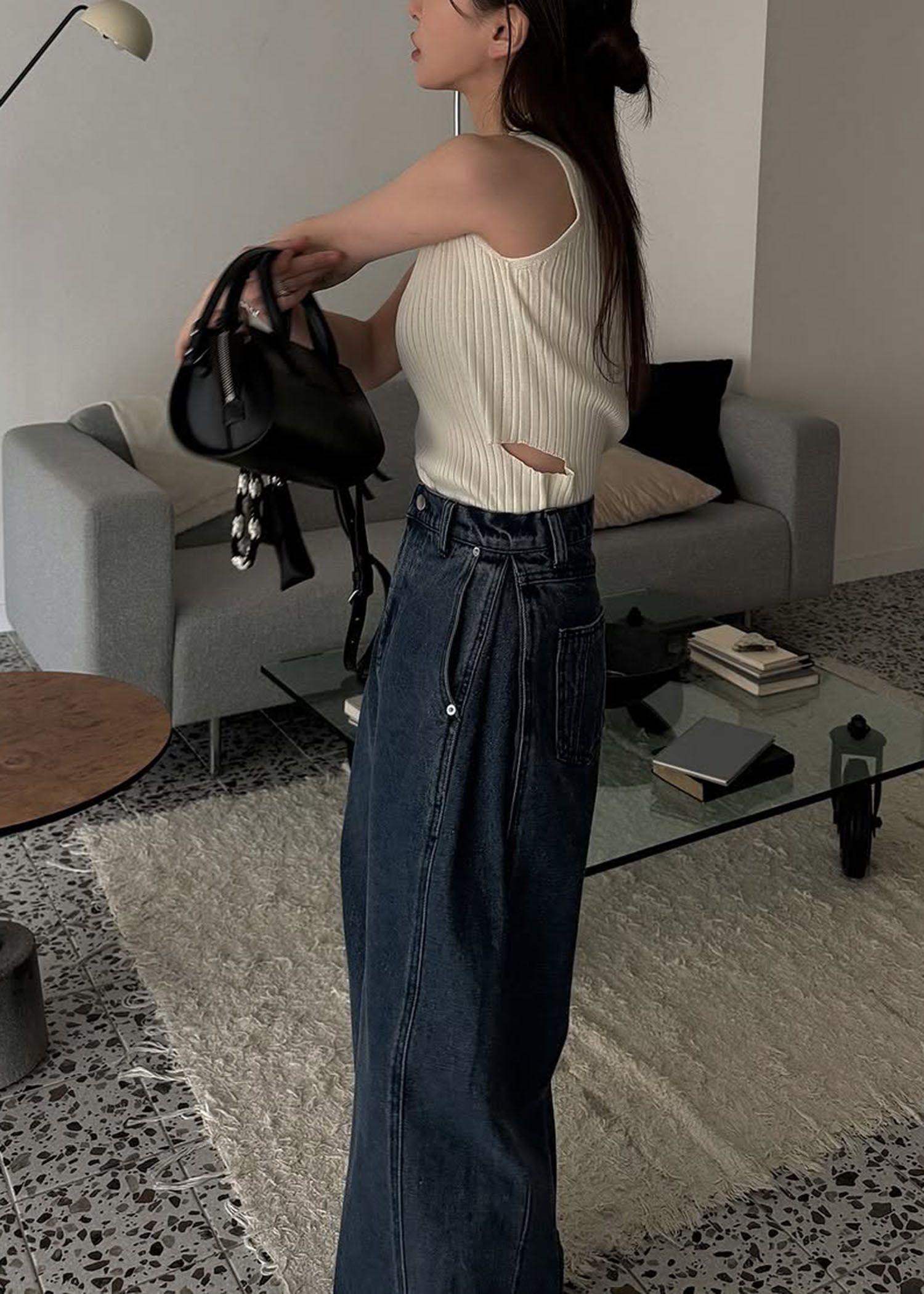 loose side tuck denim PT