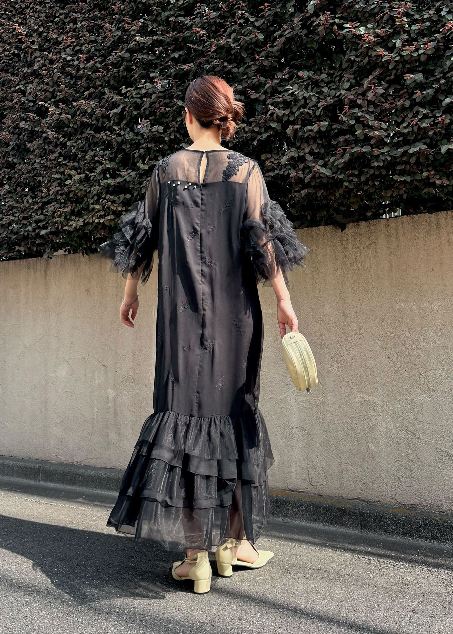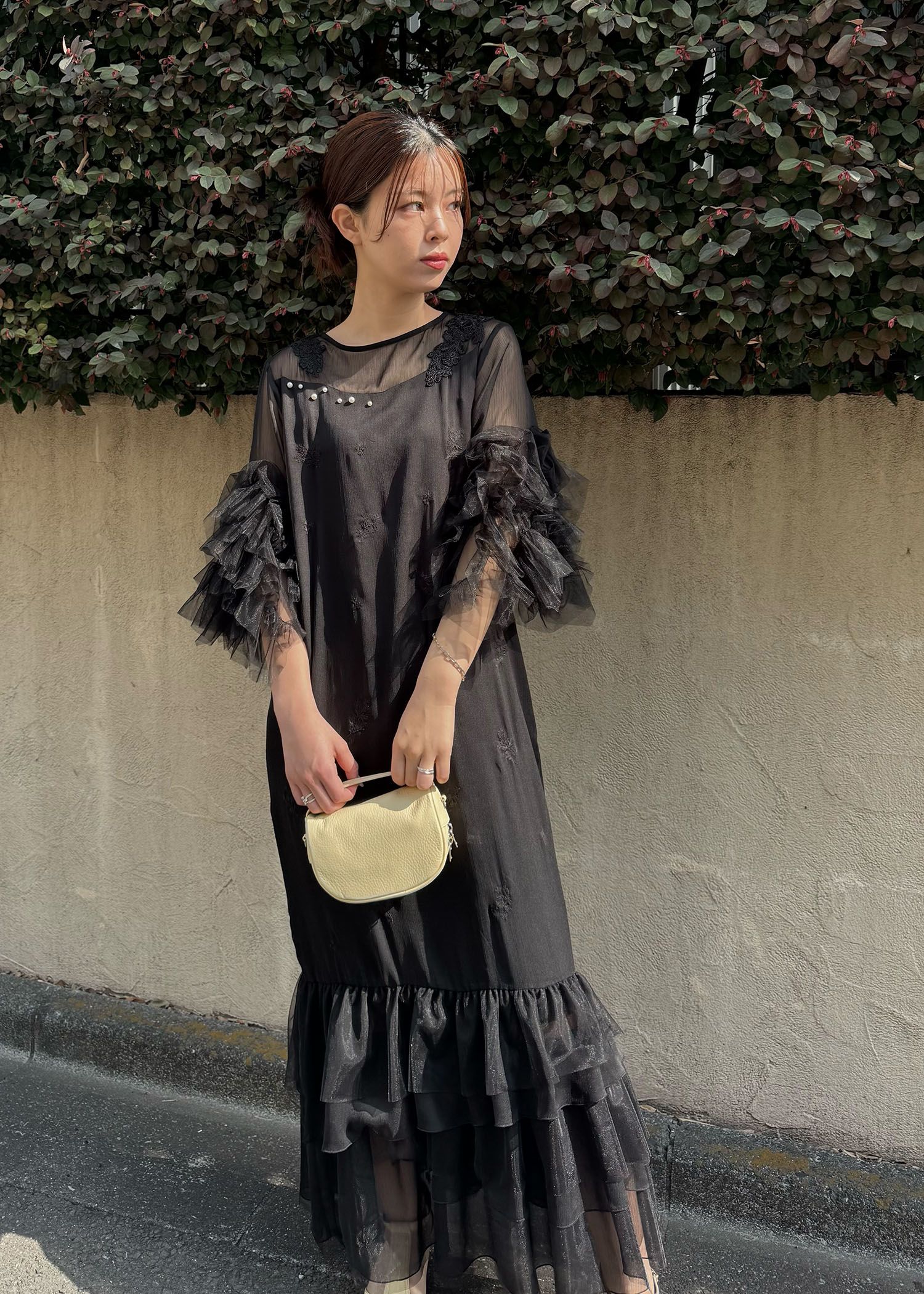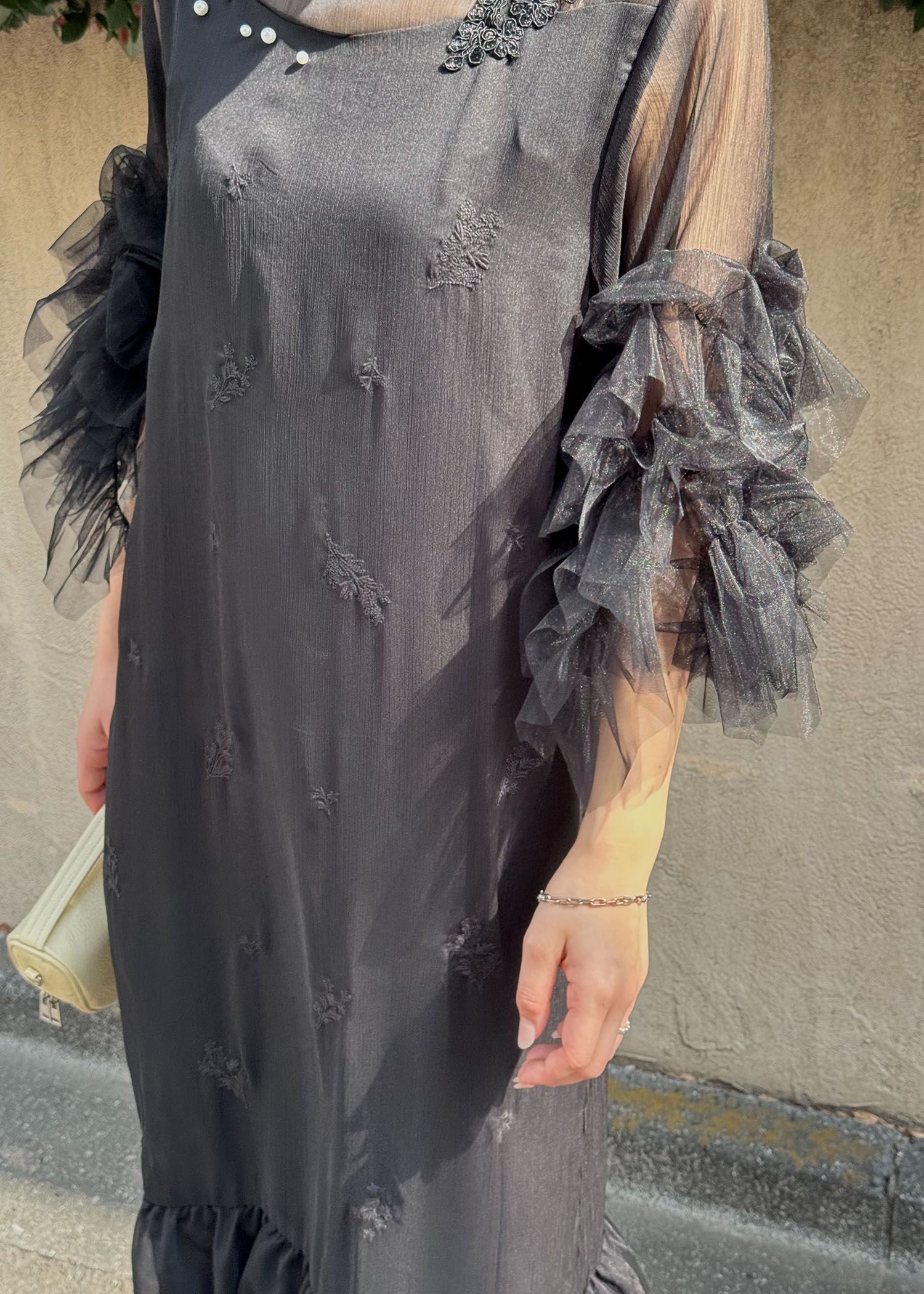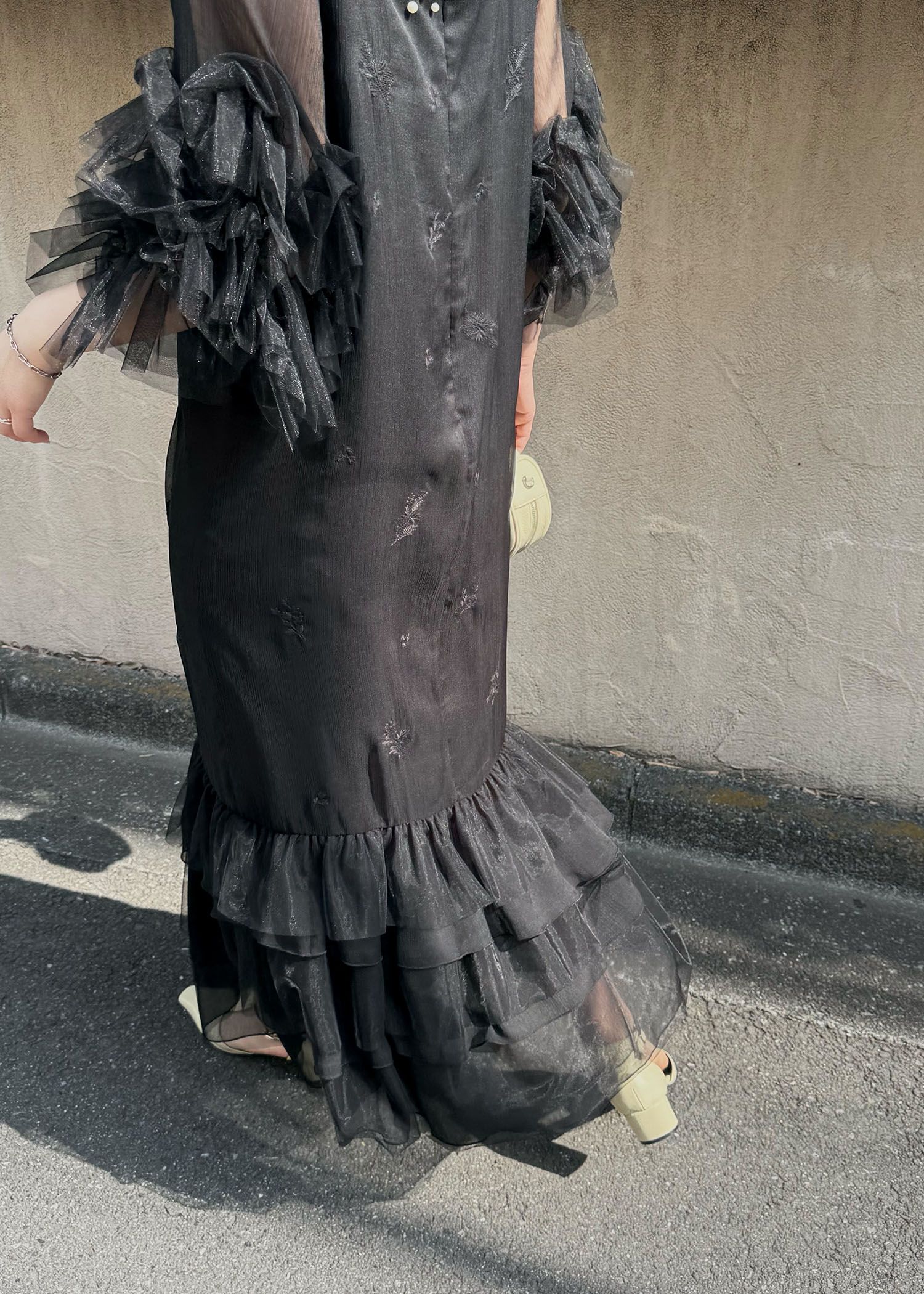 hem tiered volume sleeve embroidery OP