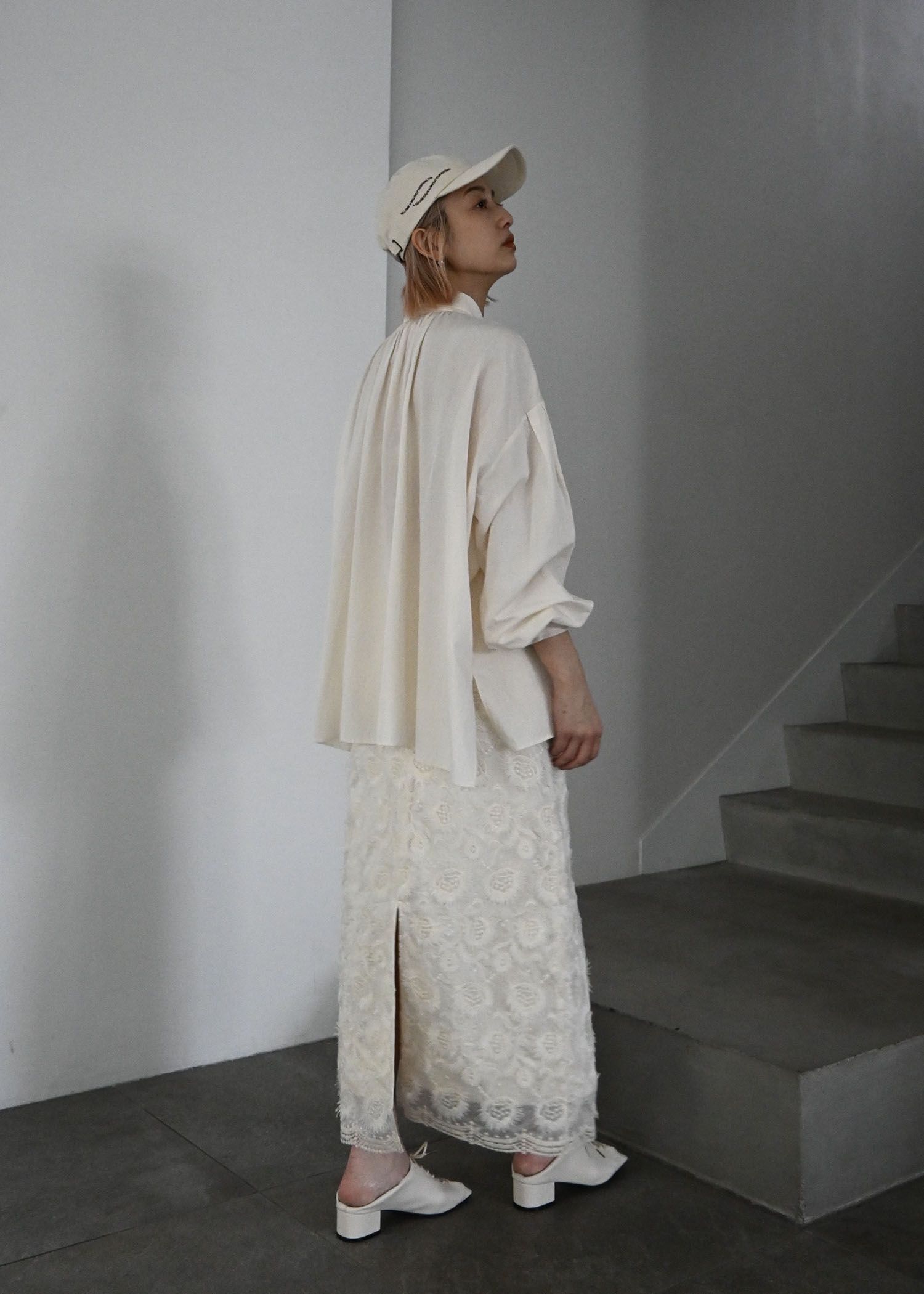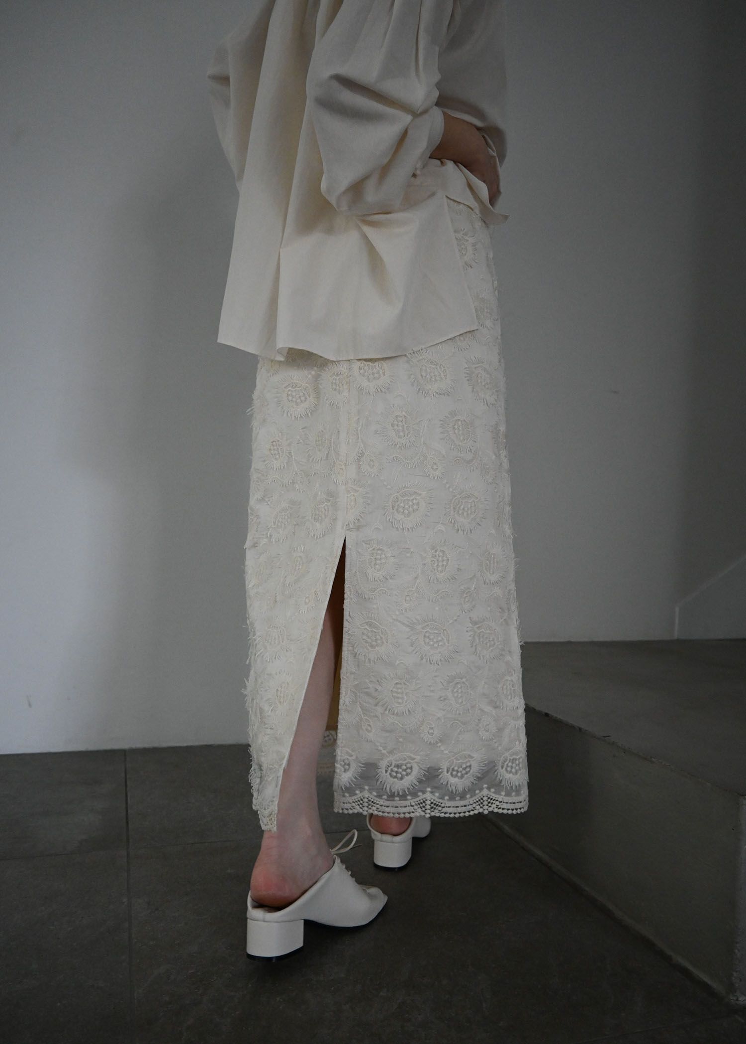 organdy embroidery scallop hem pencil SK
