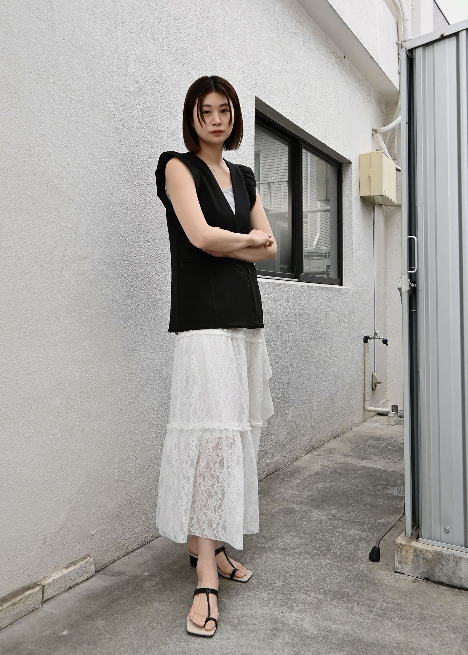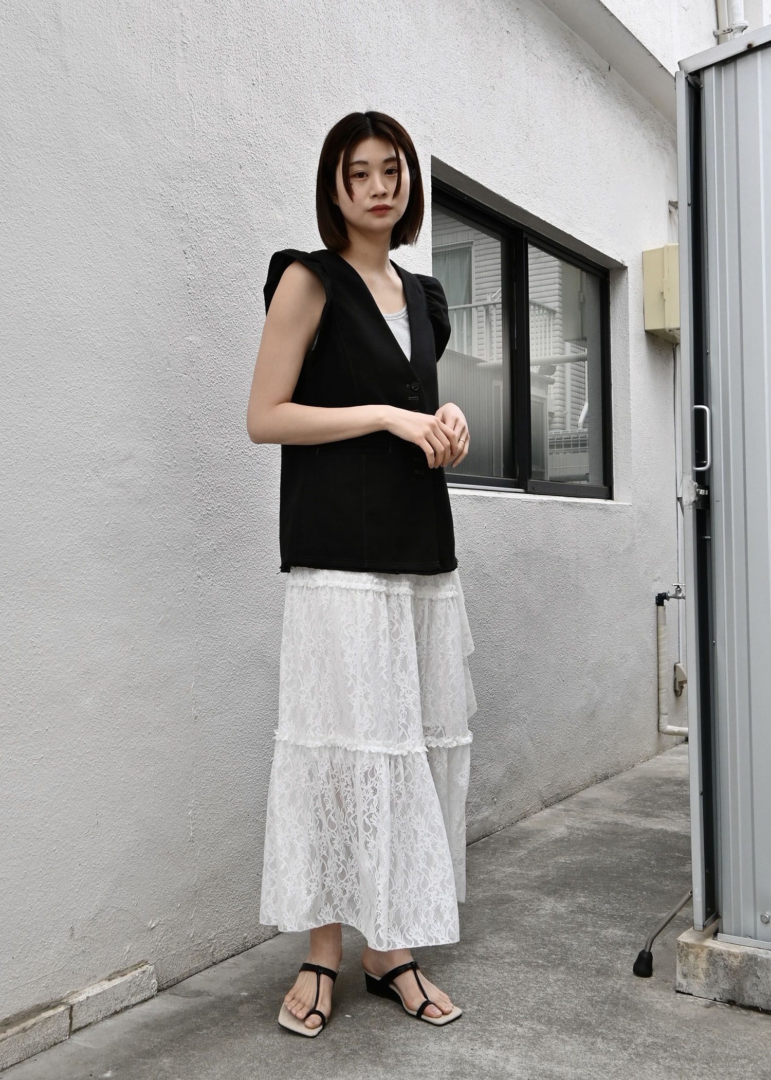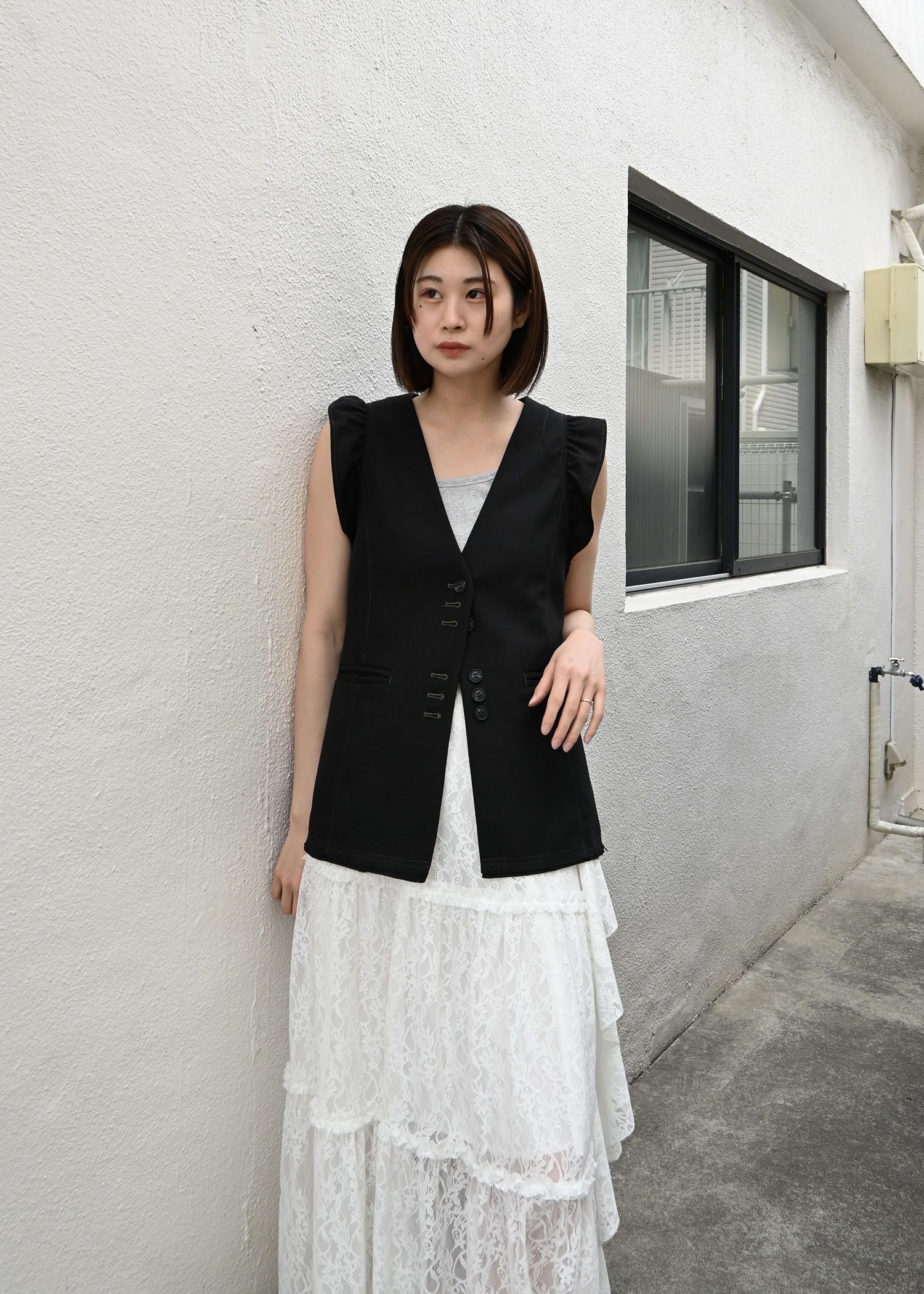 no collar frill sleeve nep gilet