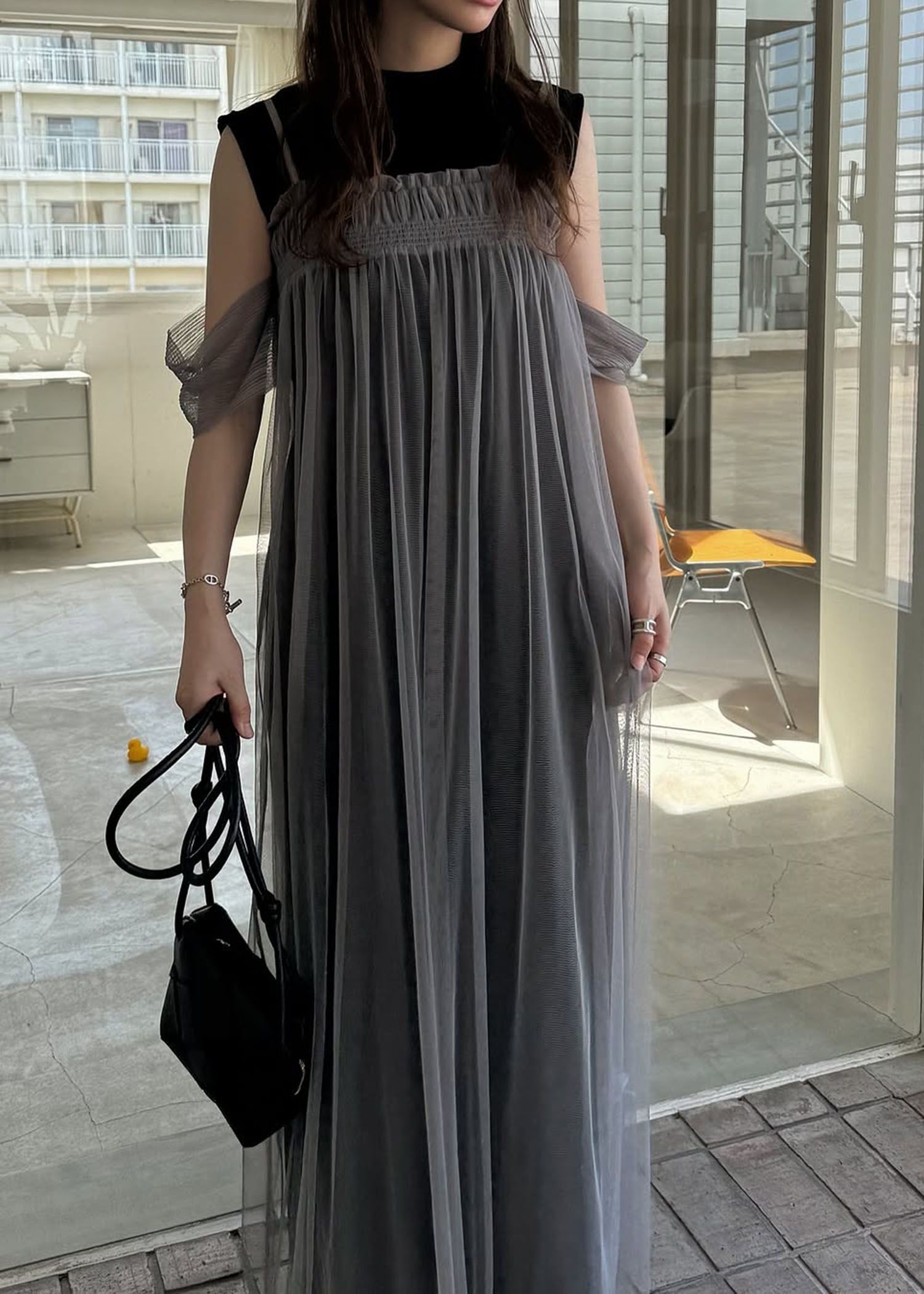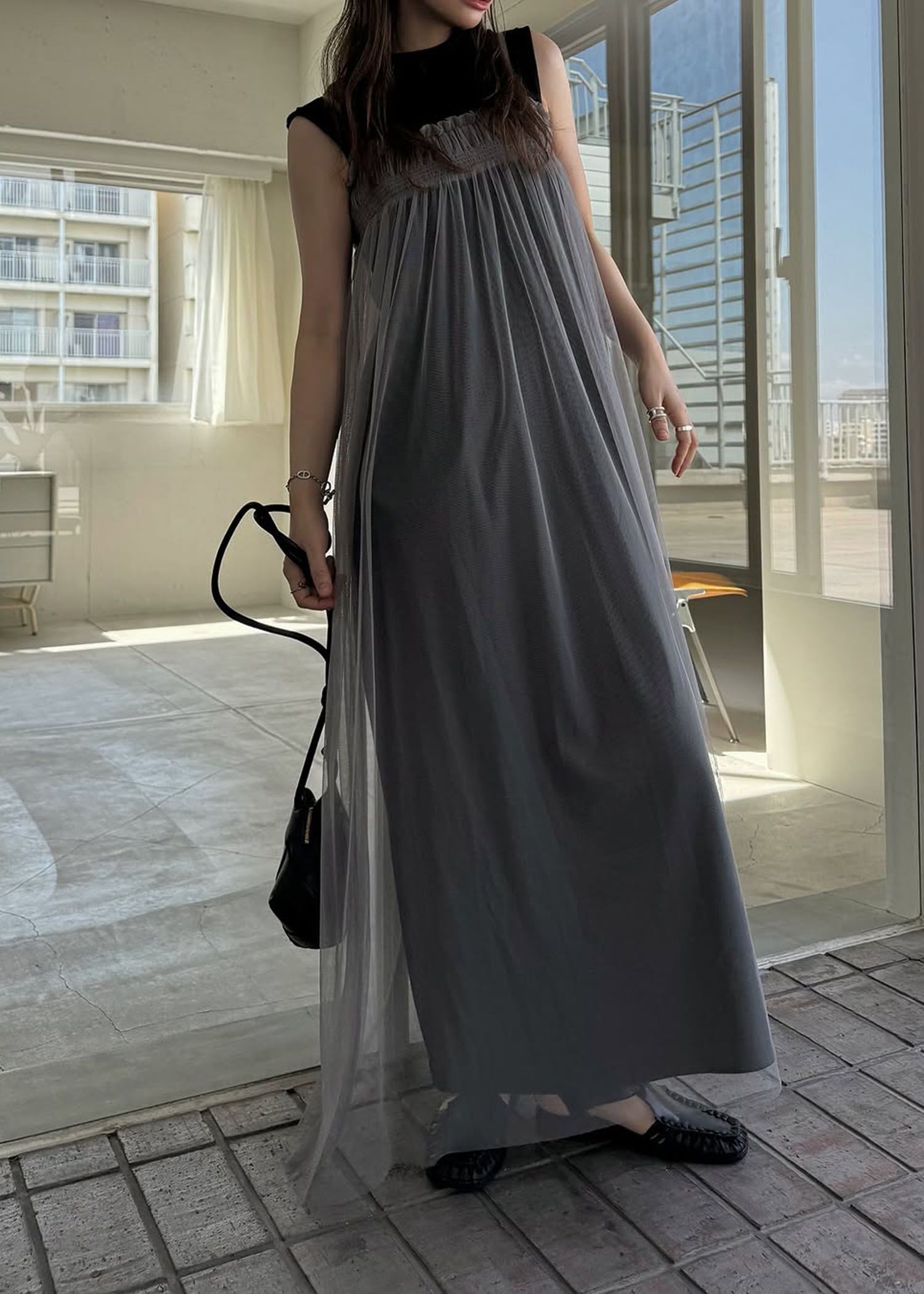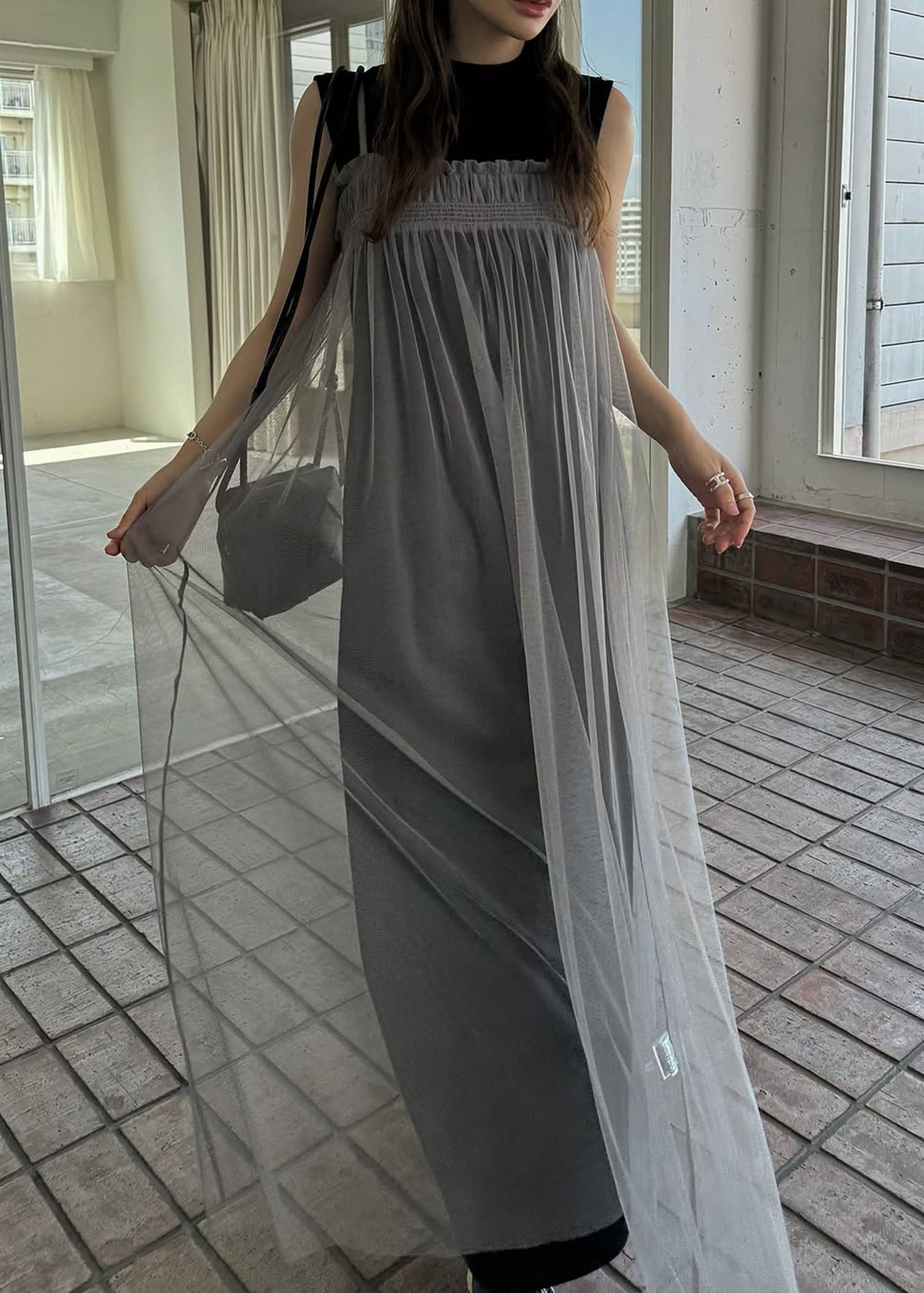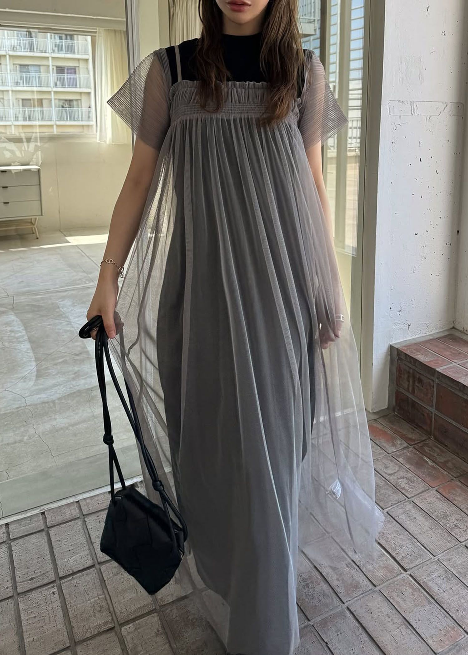 pleats shirring tulle camisole OP