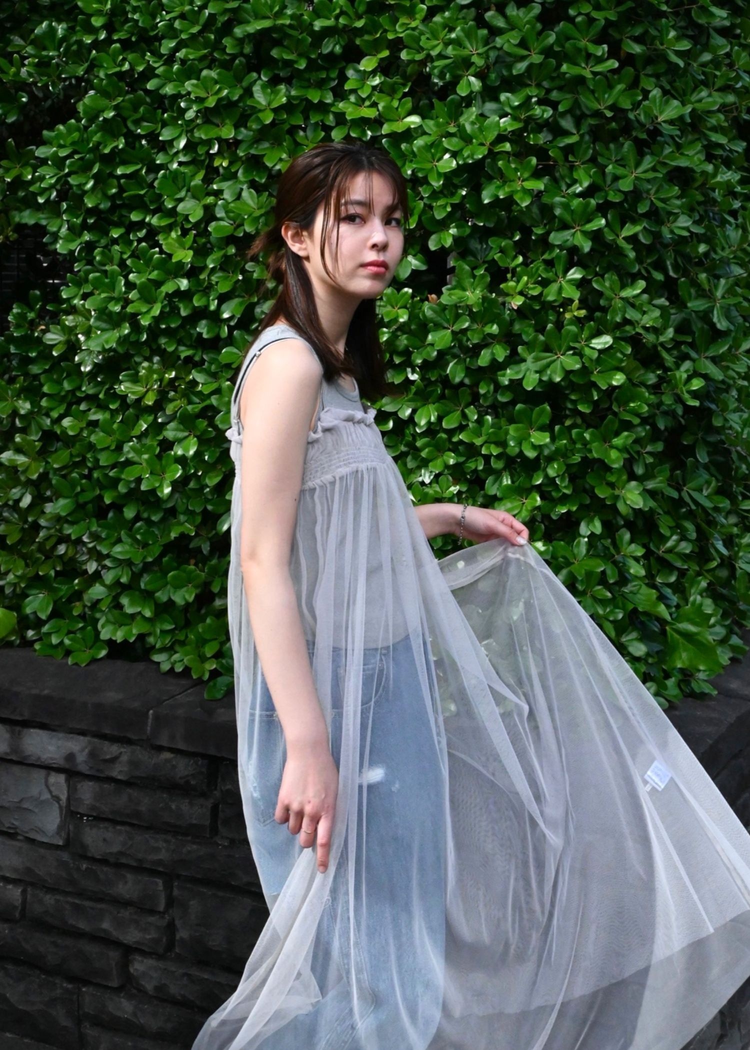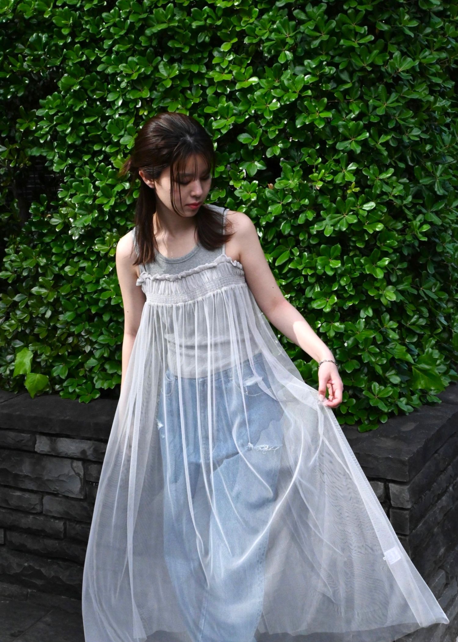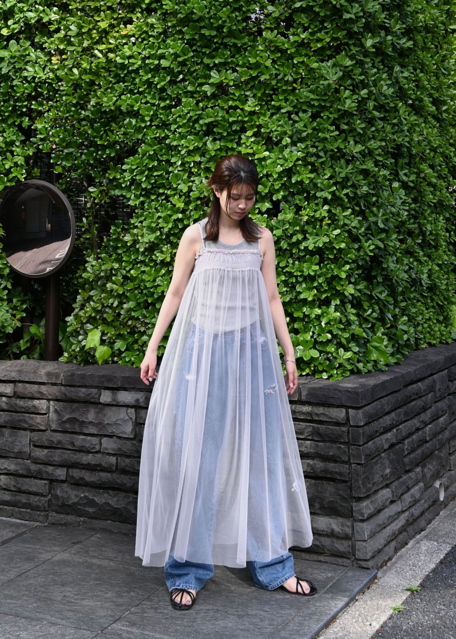 pleats shirring tulle camisole OP