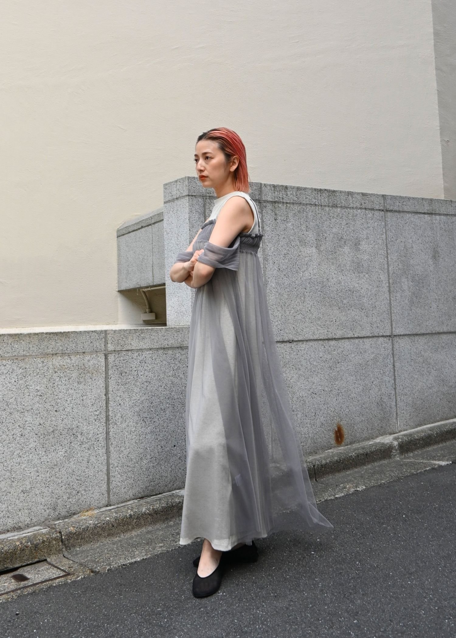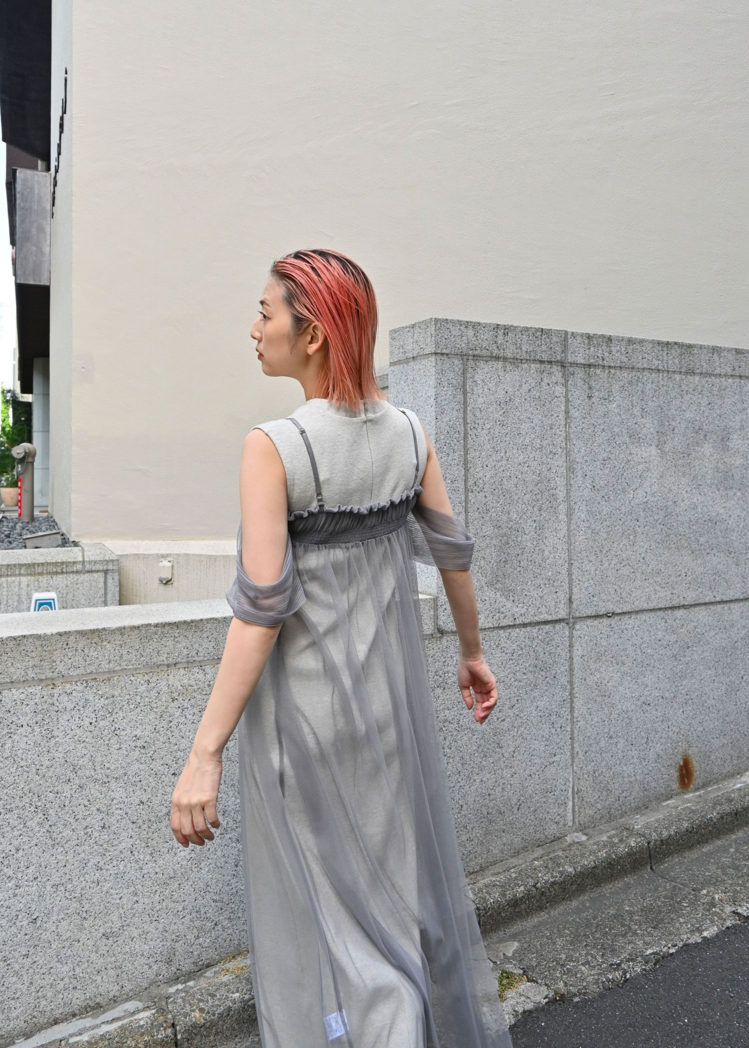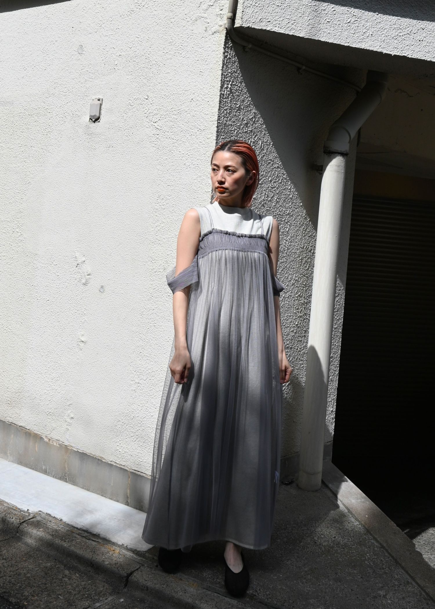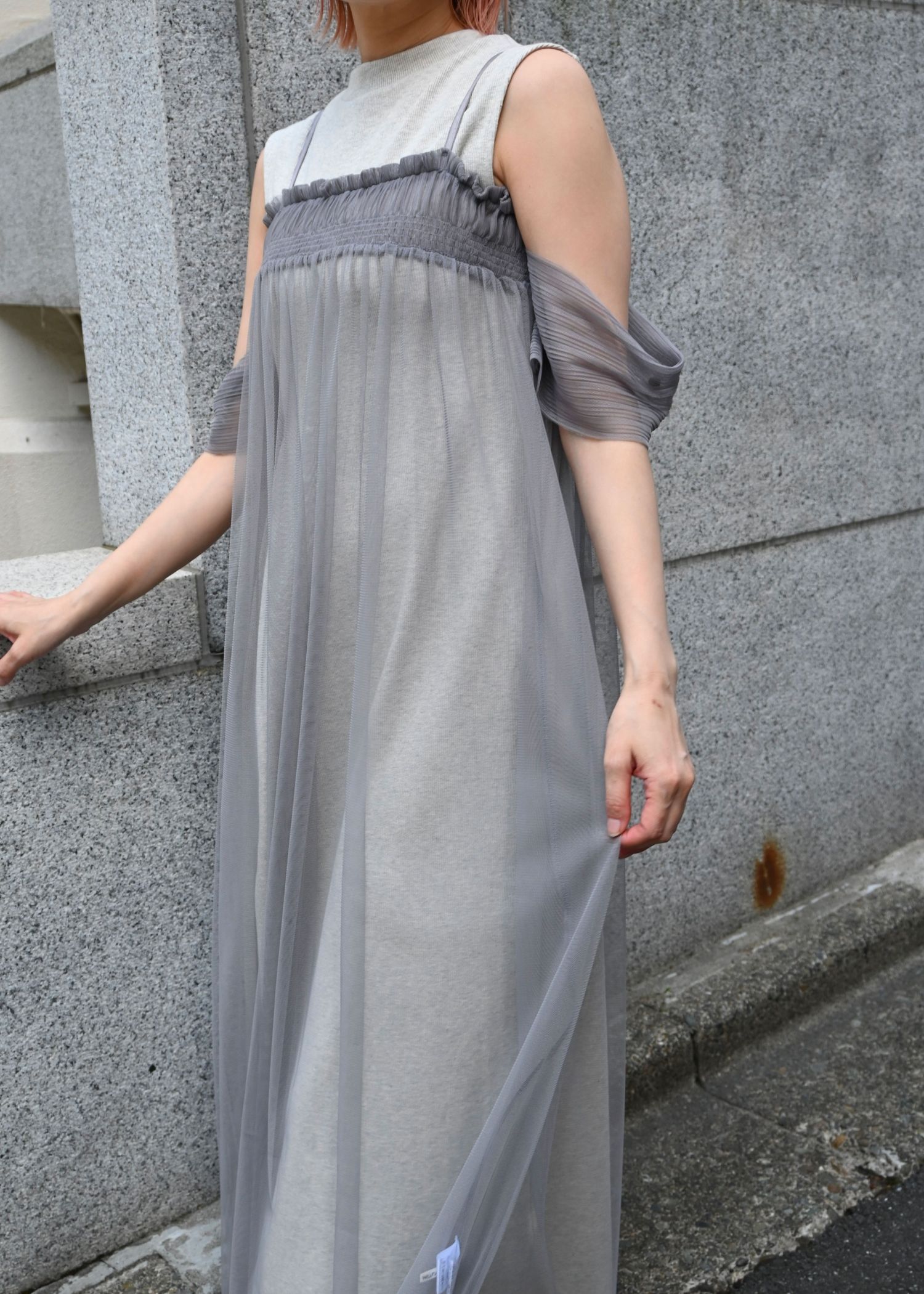pleats shirring tulle camisole OP
