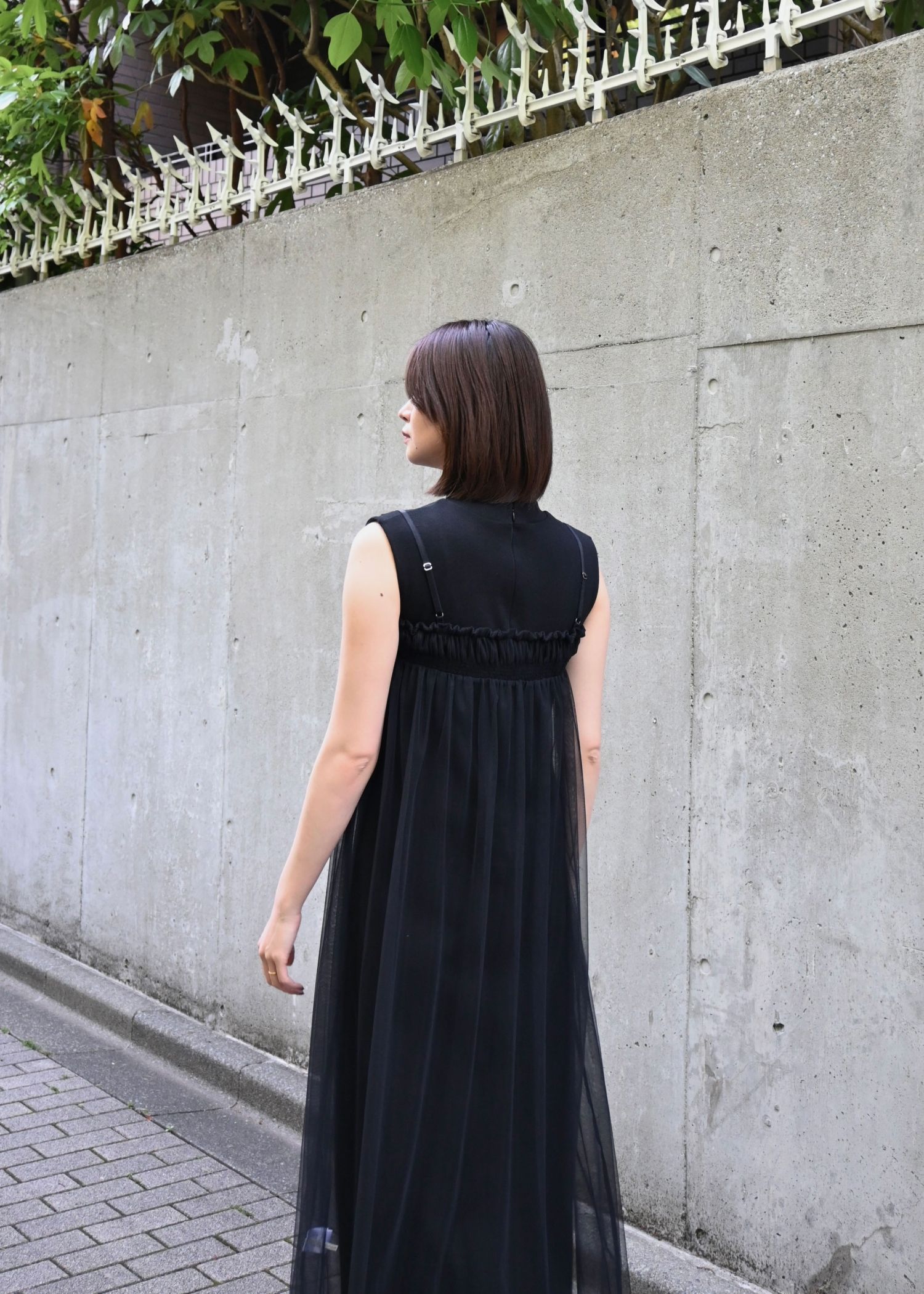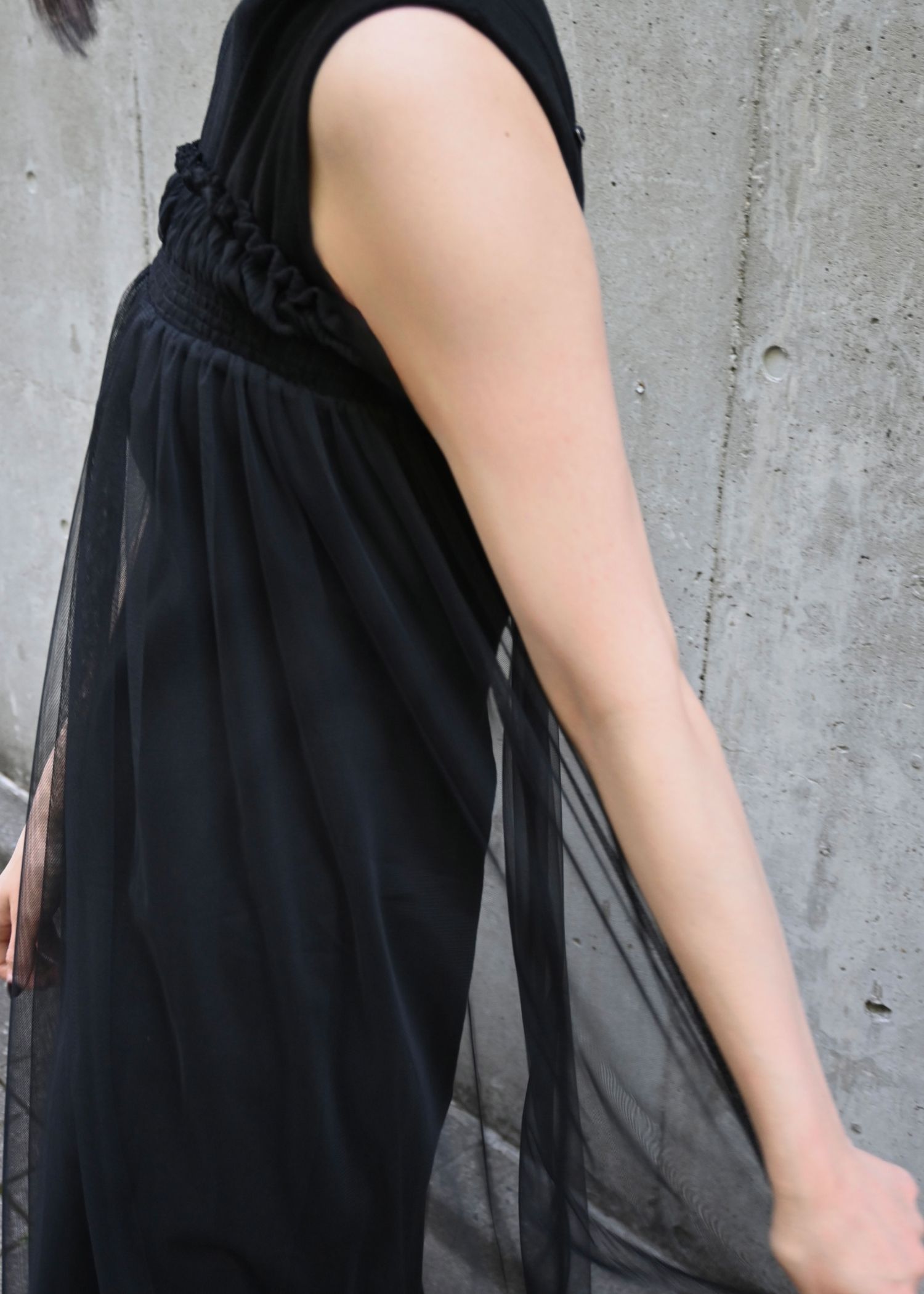 pleats shirring tulle camisole OP