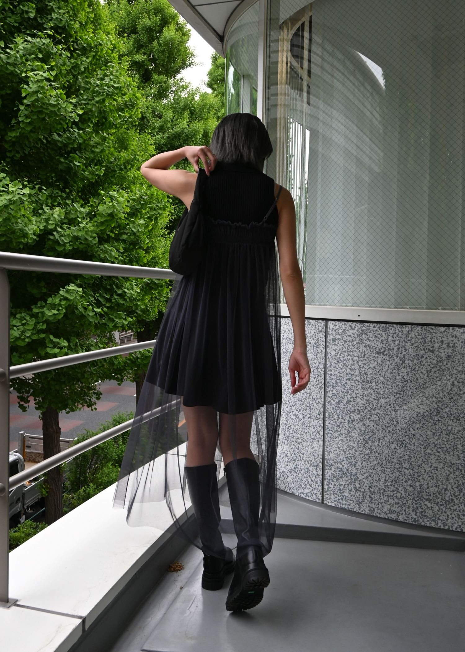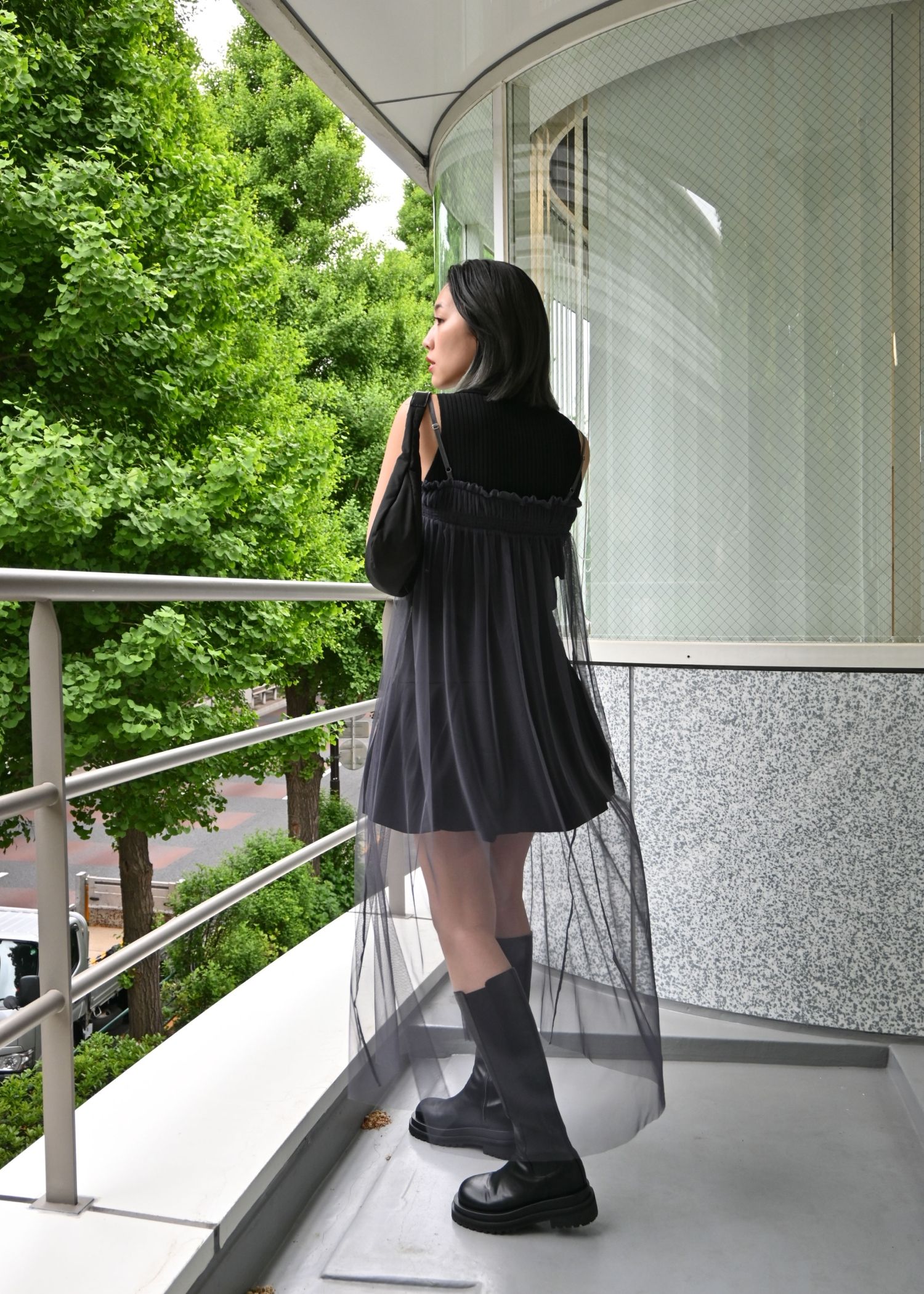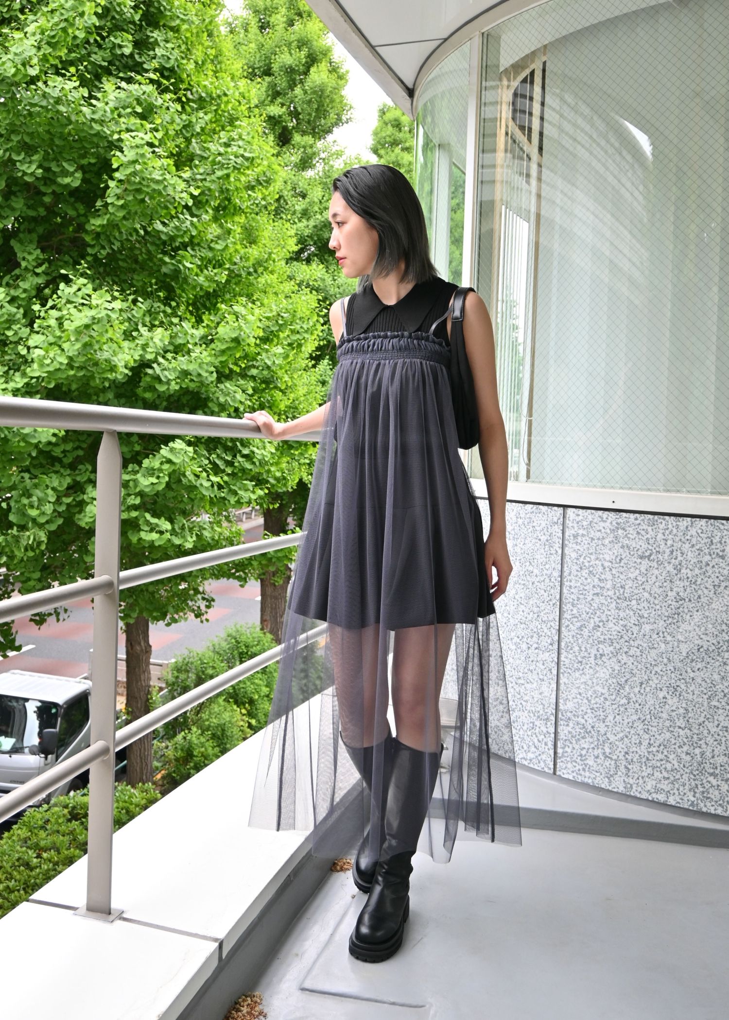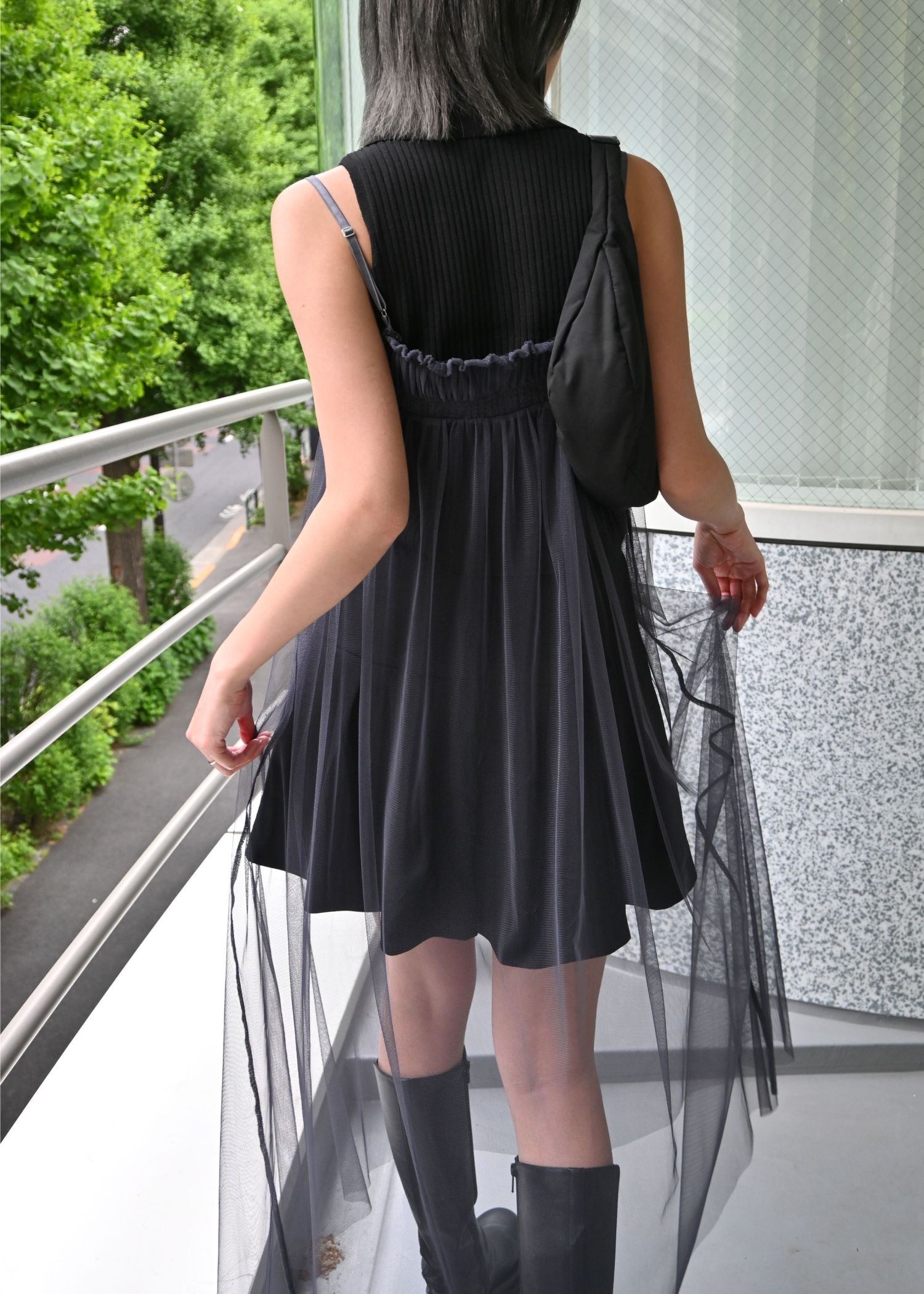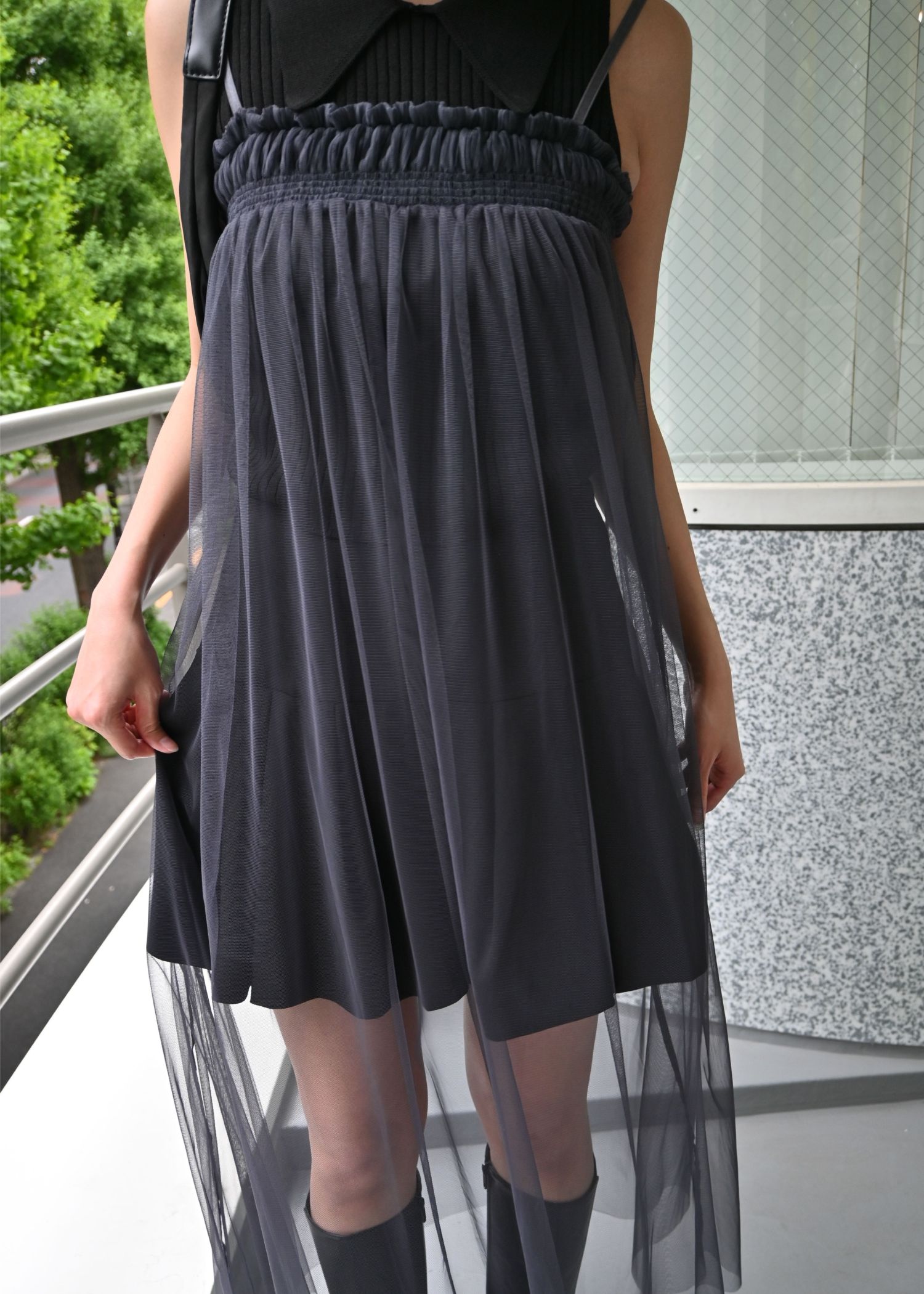 pleats shirring tulle camisole OP