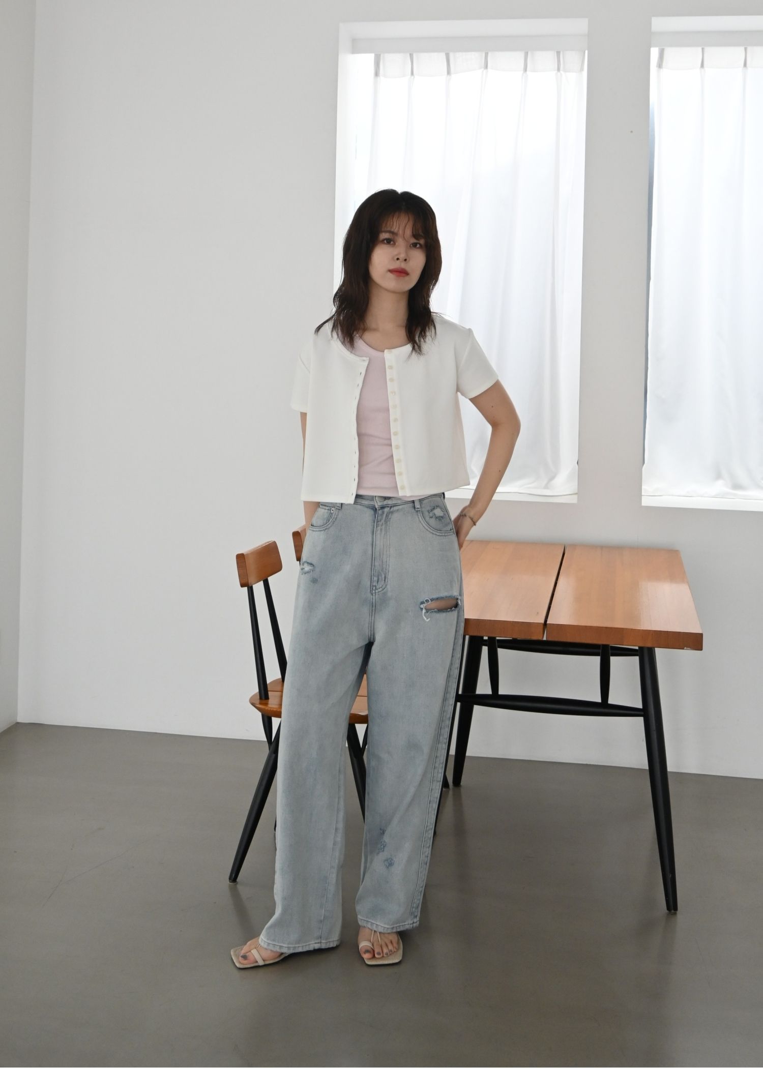 SS loose distressed effect denim PT