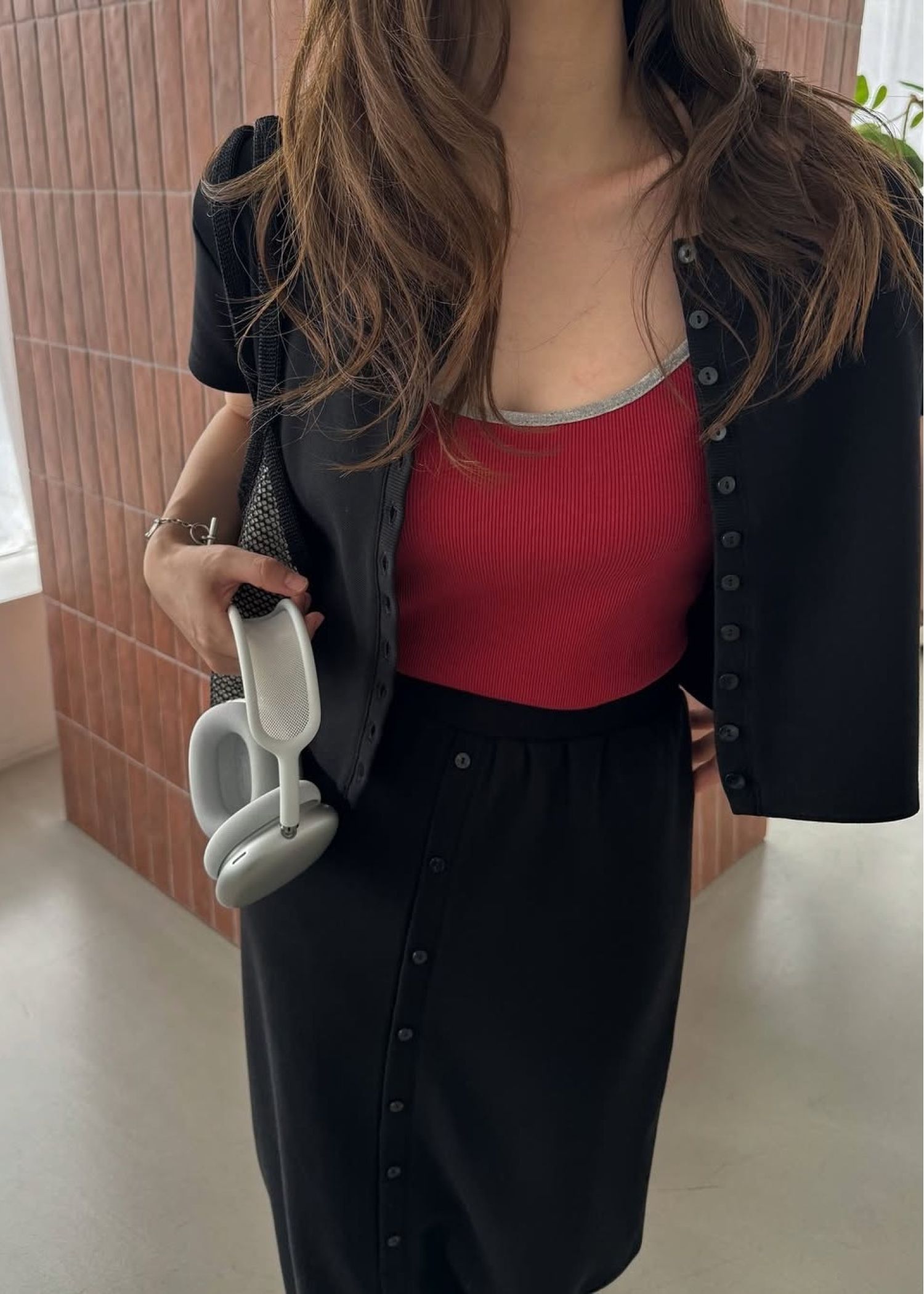 color schem cami & T-shirt set rib tops