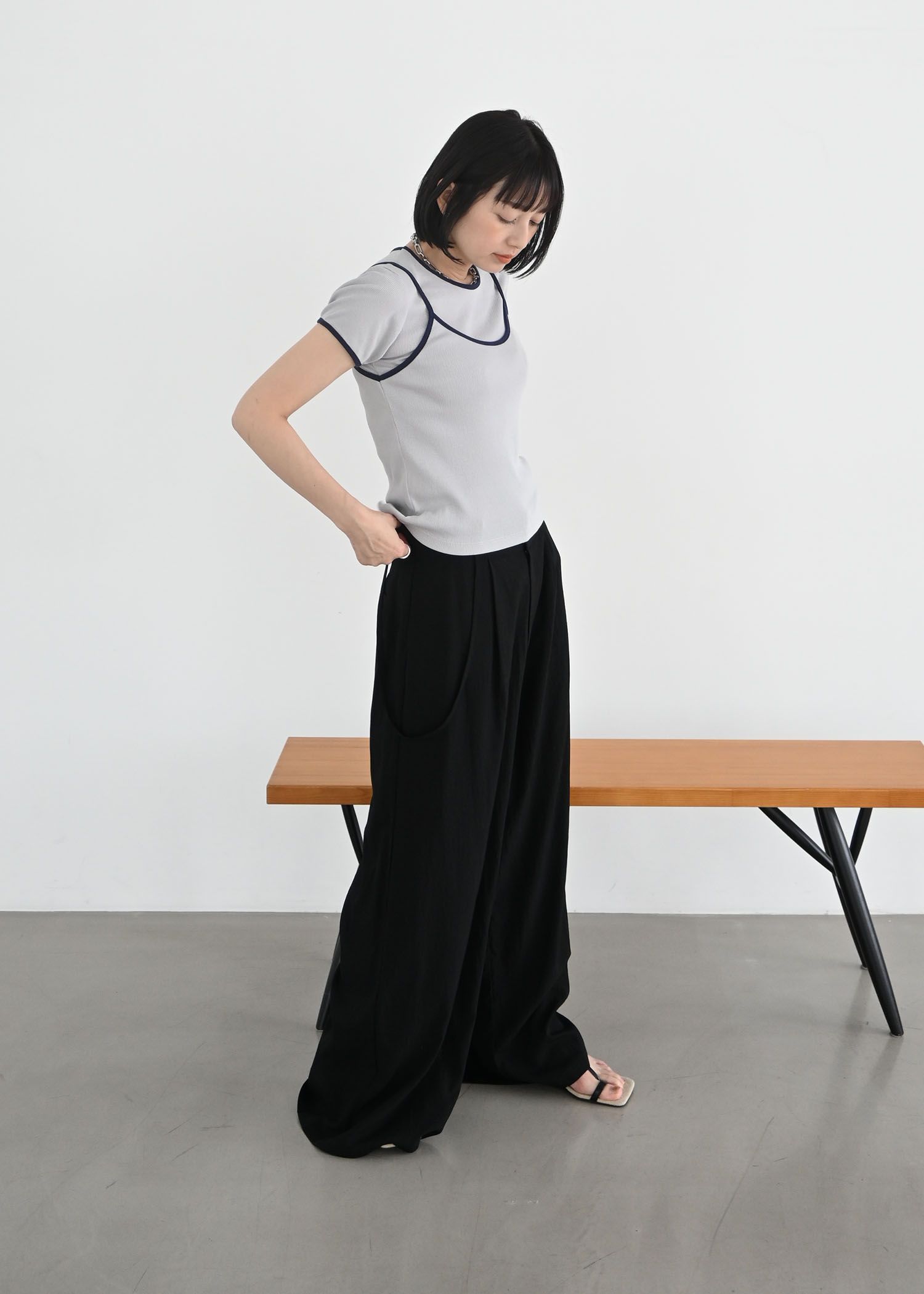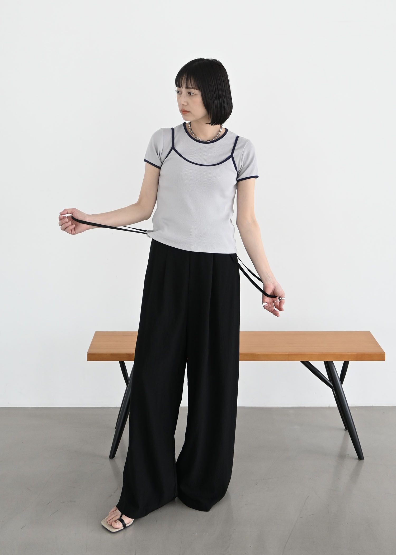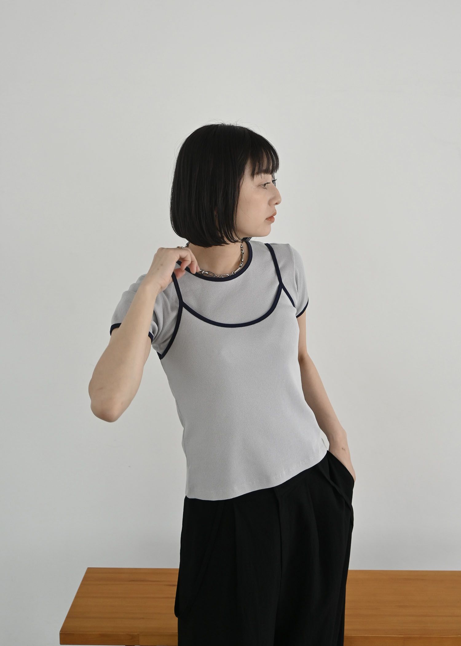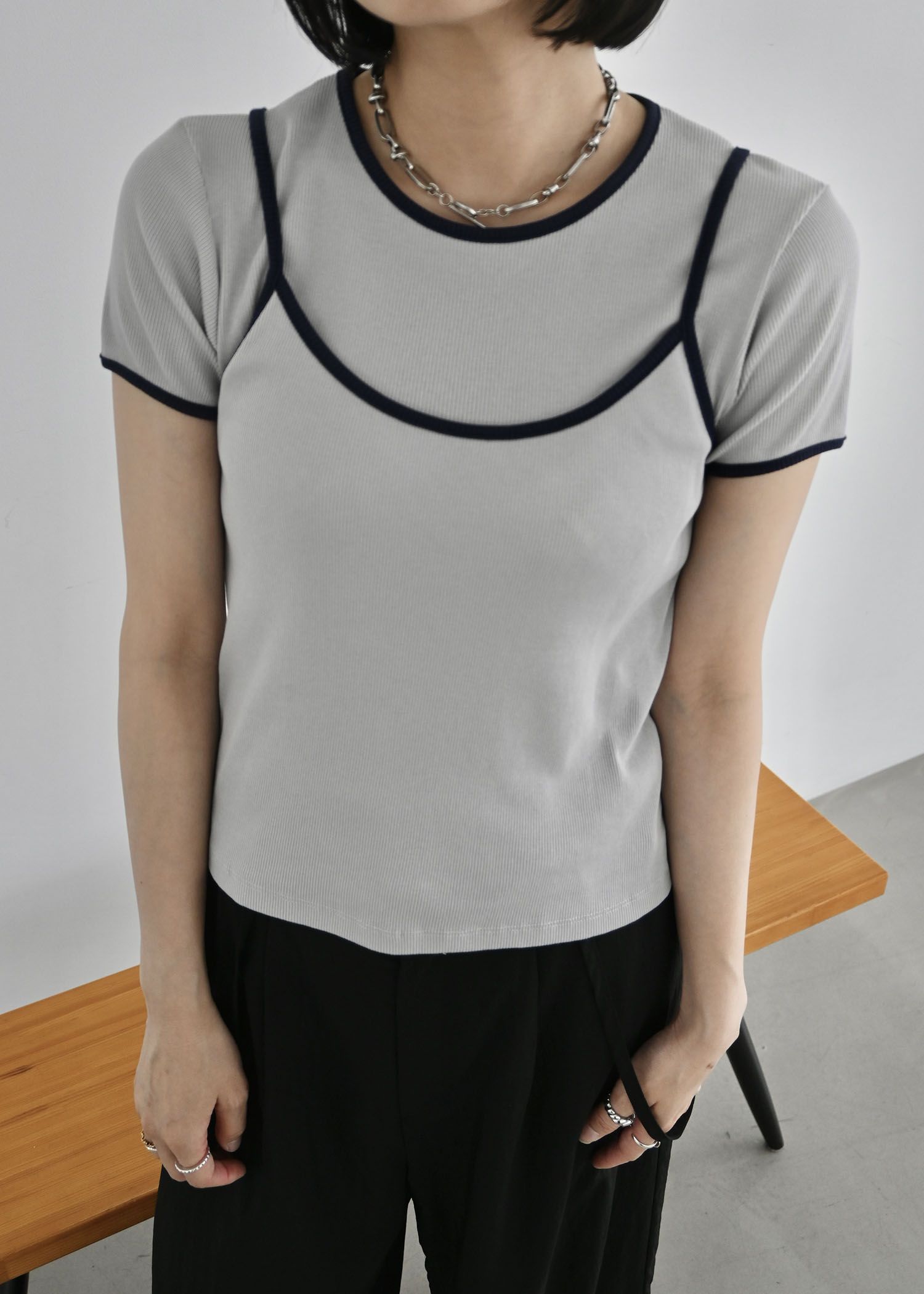 color schem cami & T-shirt set rib tops