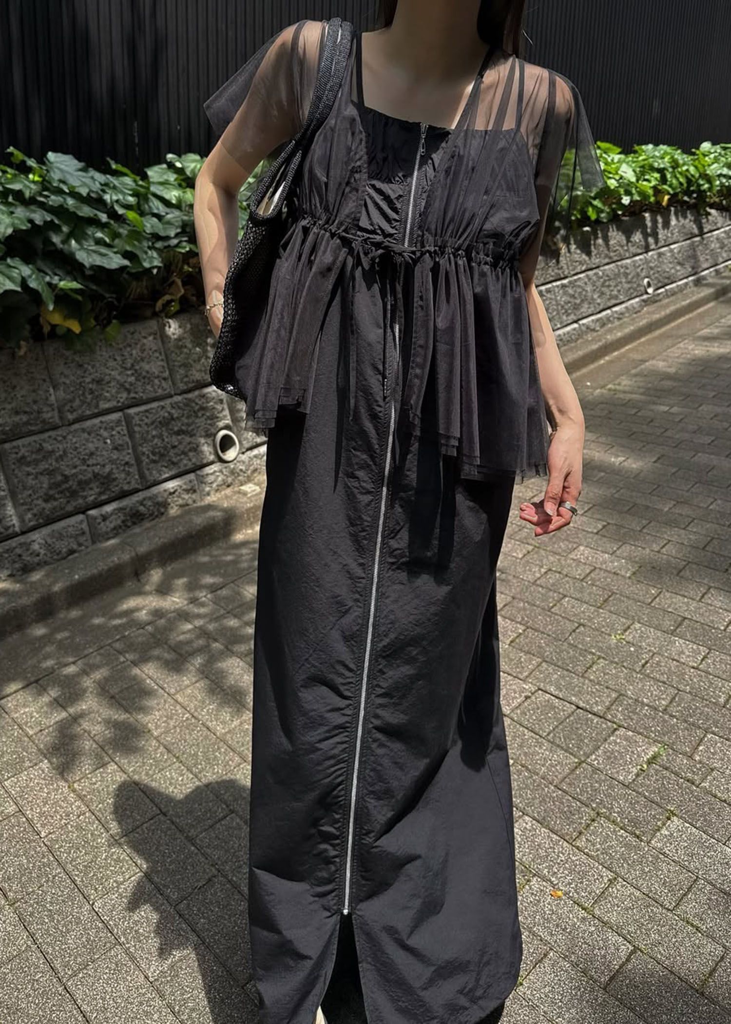 patchwork back pocket nylon camisole OP