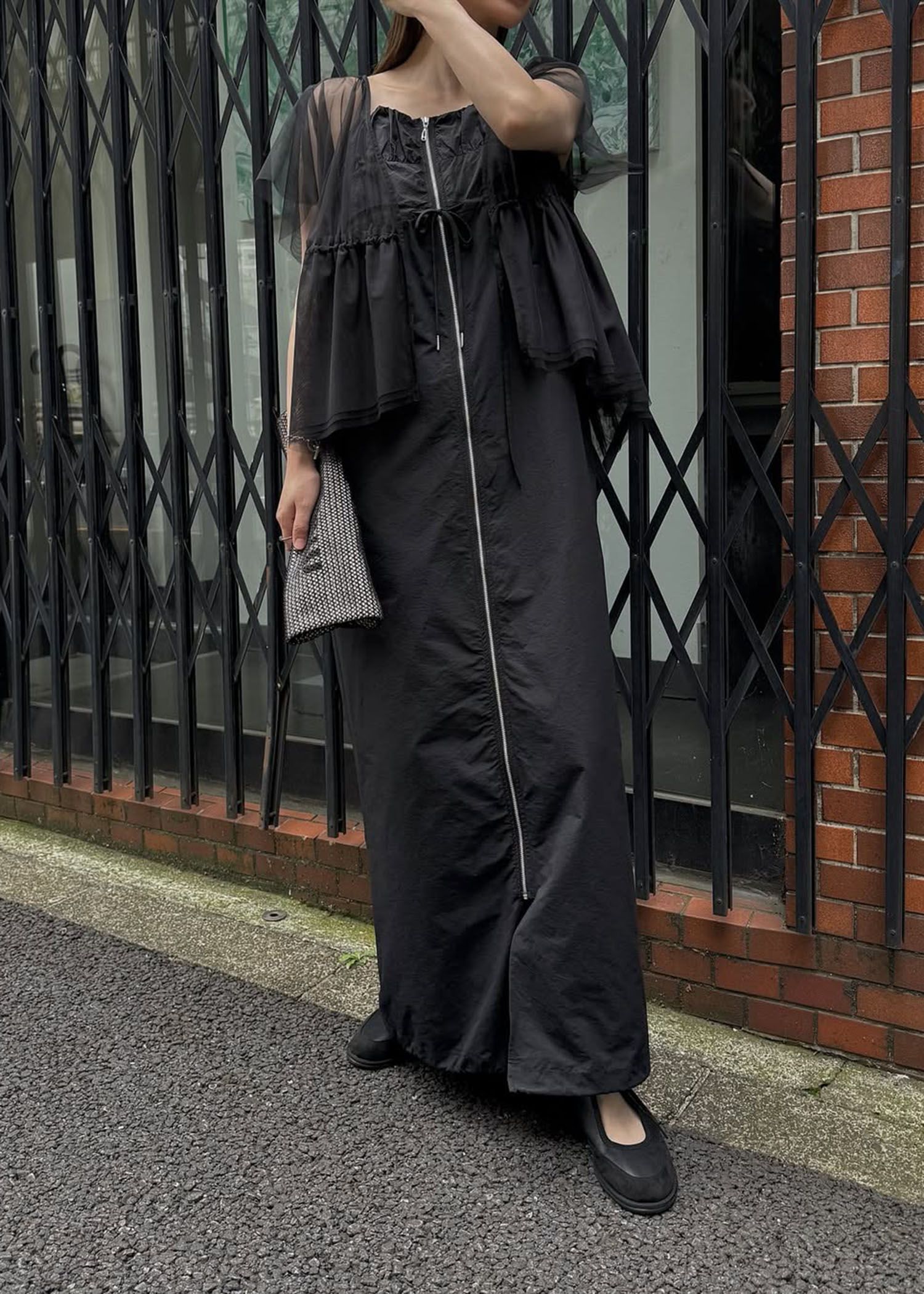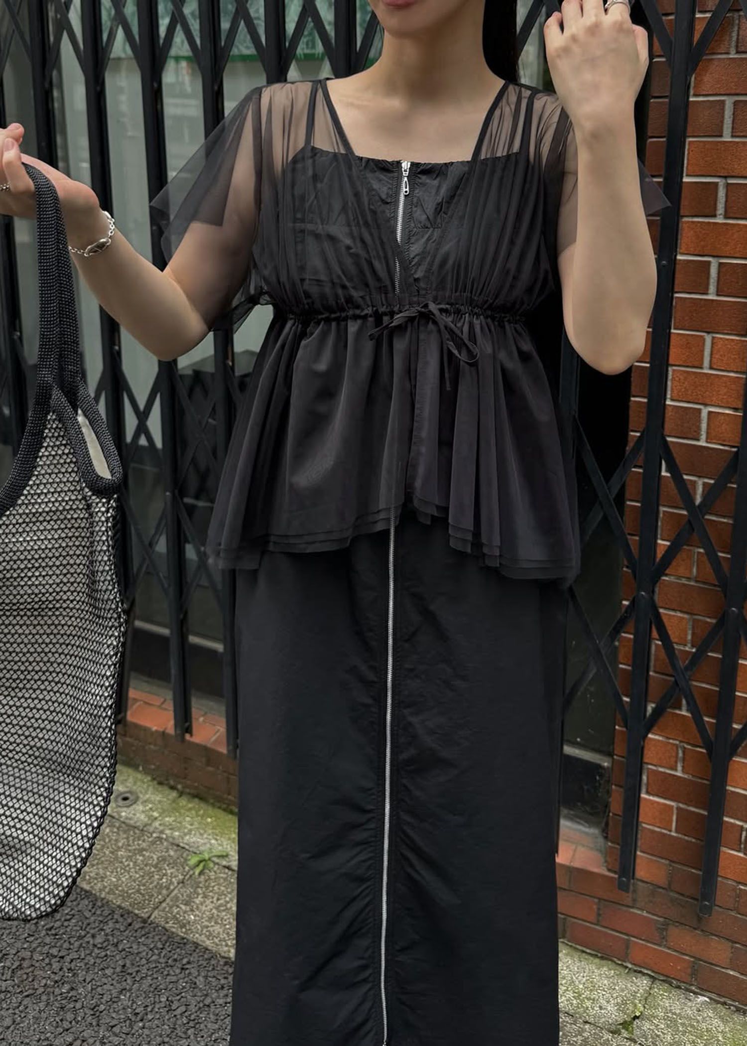 frill sleeve peplum tulle tops
