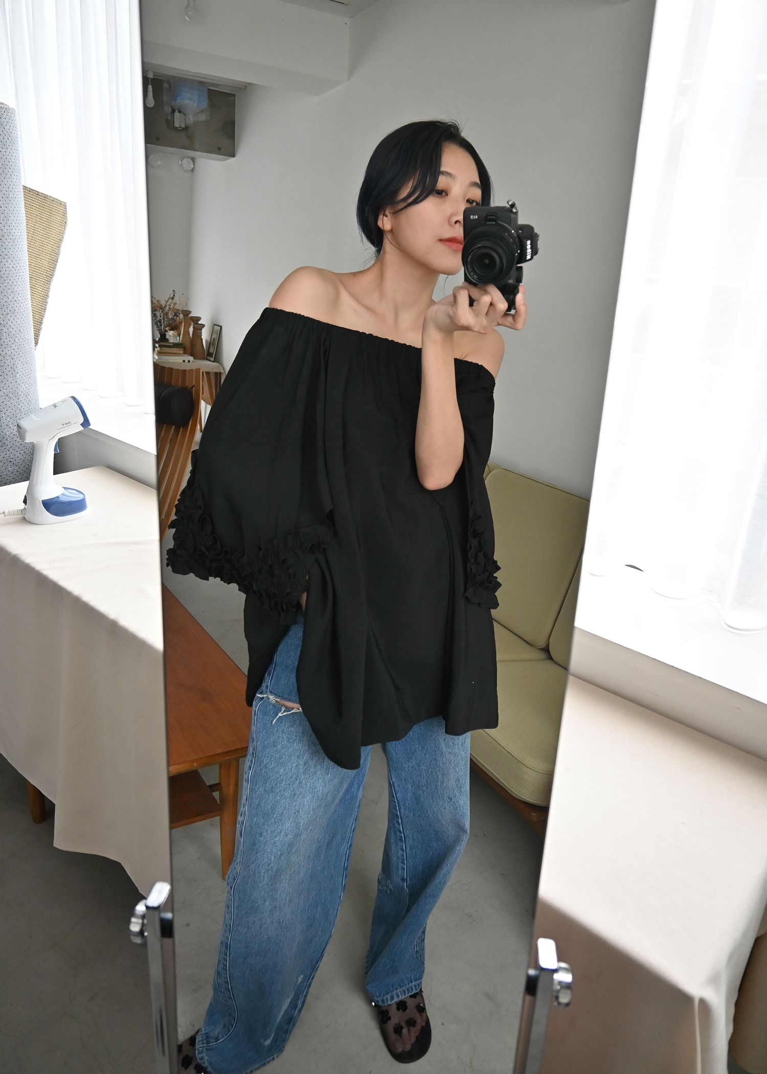 SS loose distressed effect denim PT