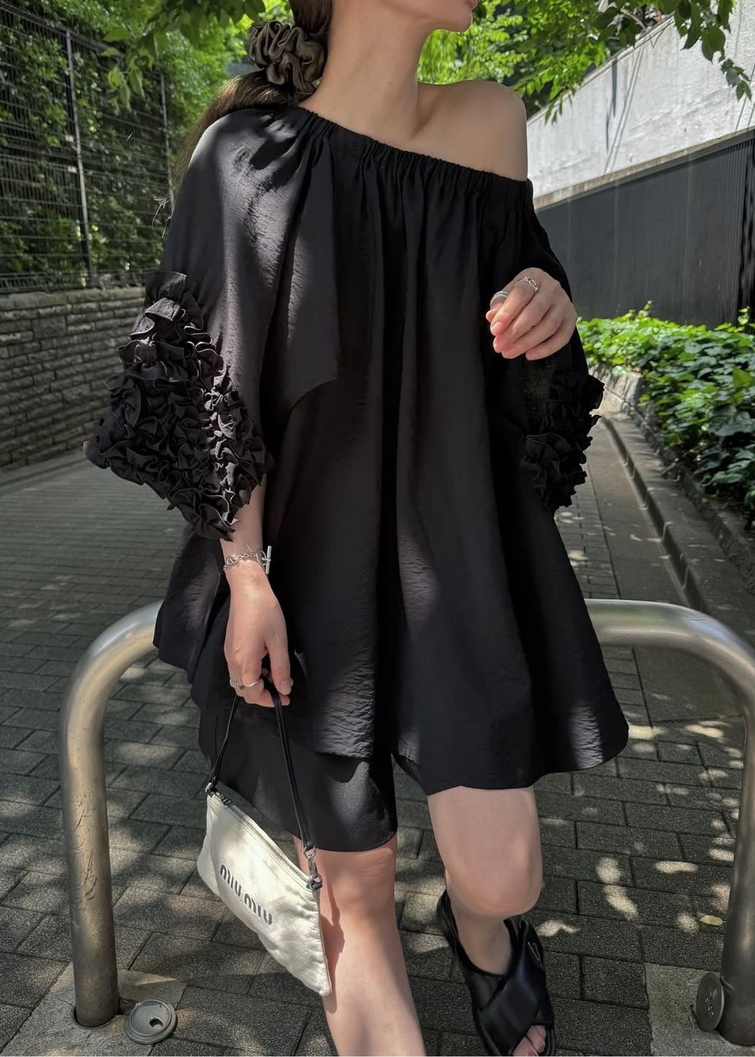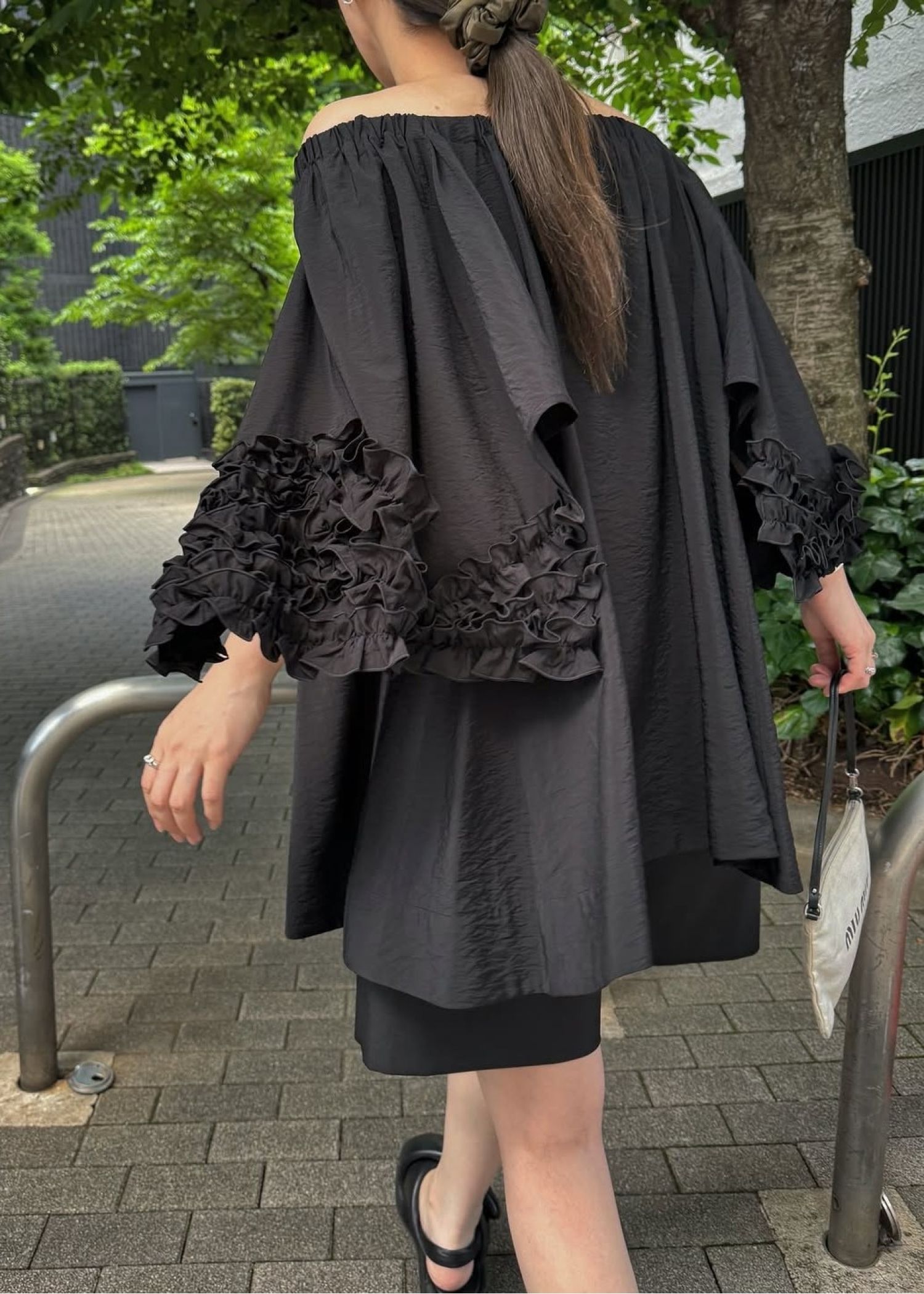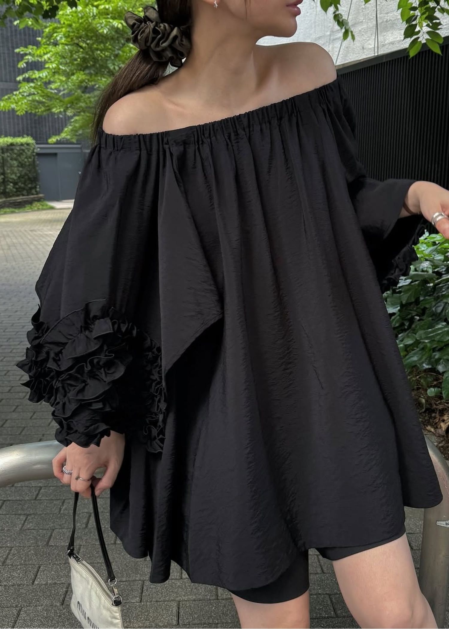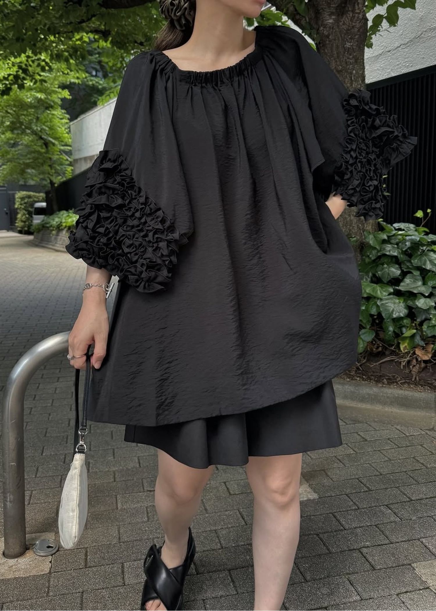 flutter frill sleeve gather tunic