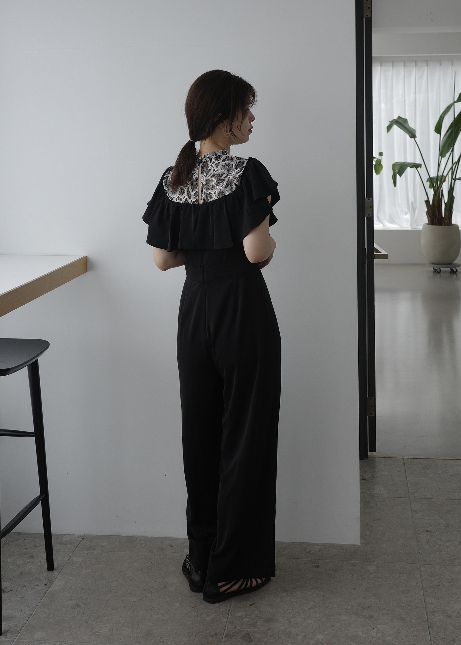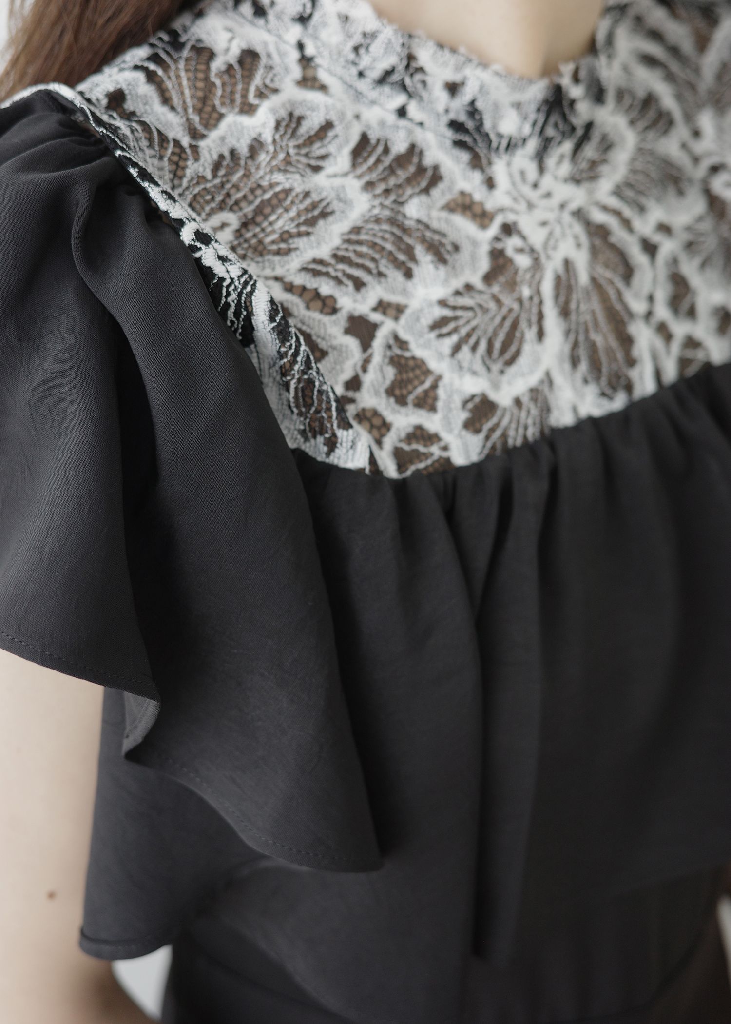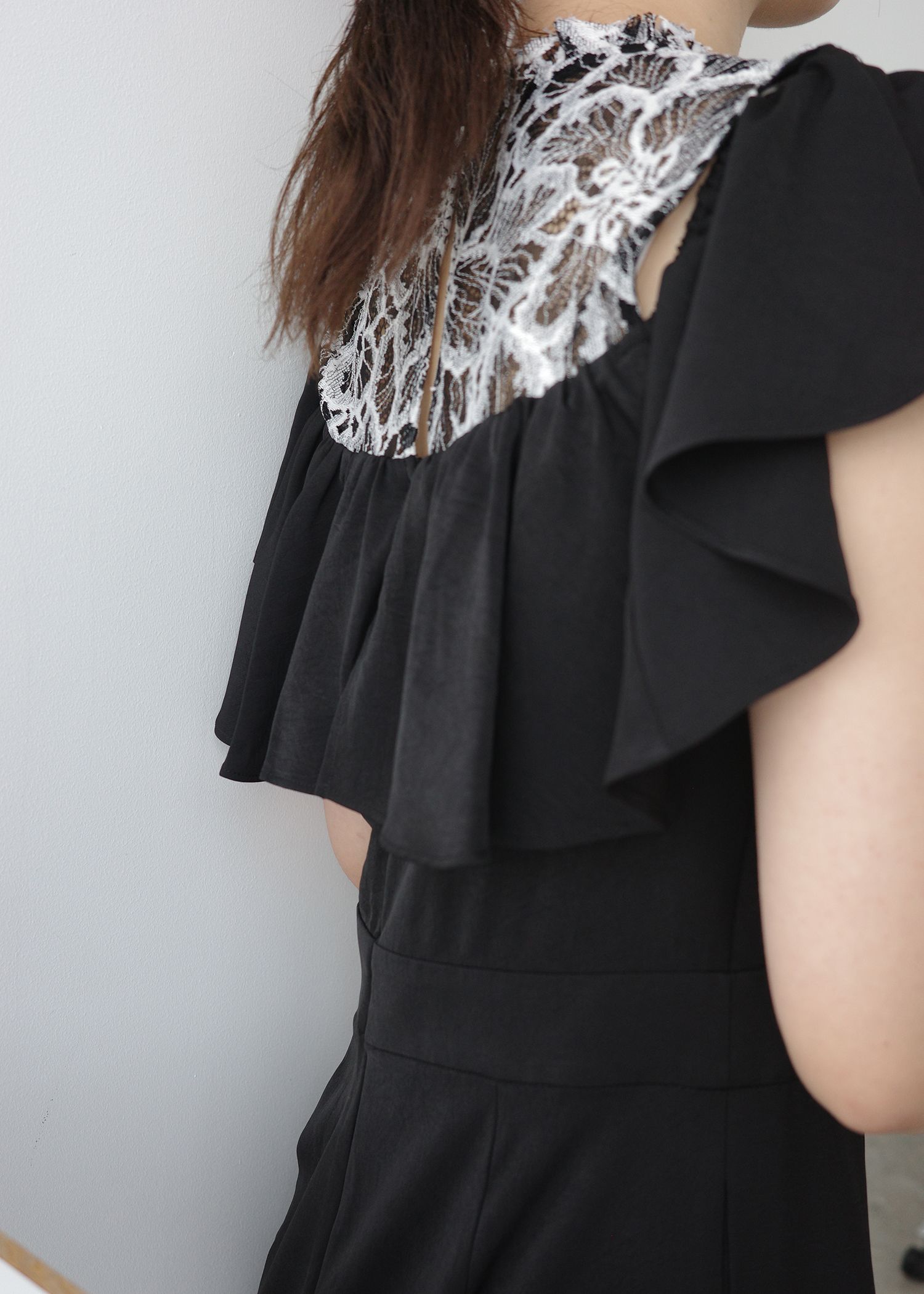 lace switching frill off shoulder all-in-one