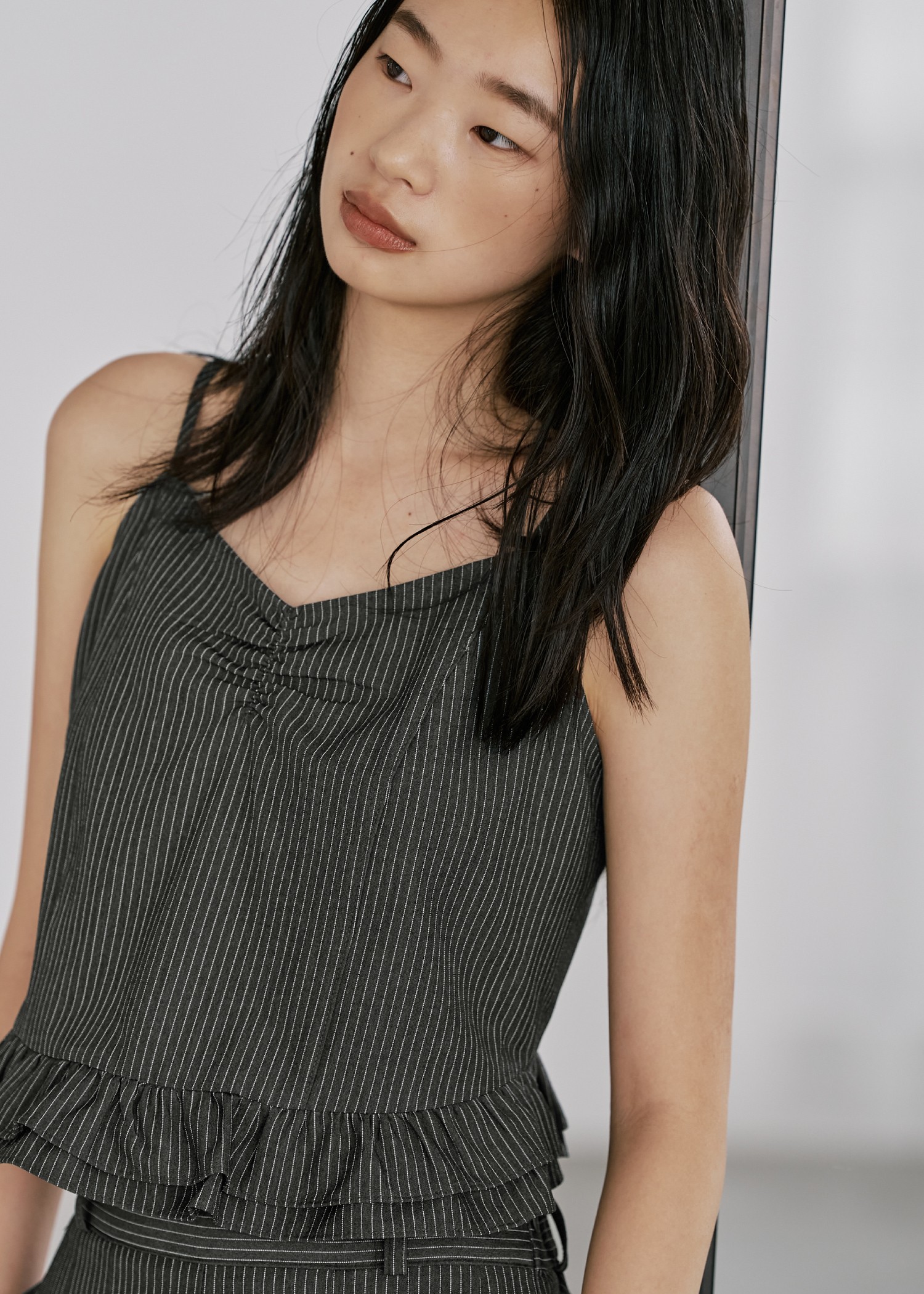 undulate gather frill stripe cami