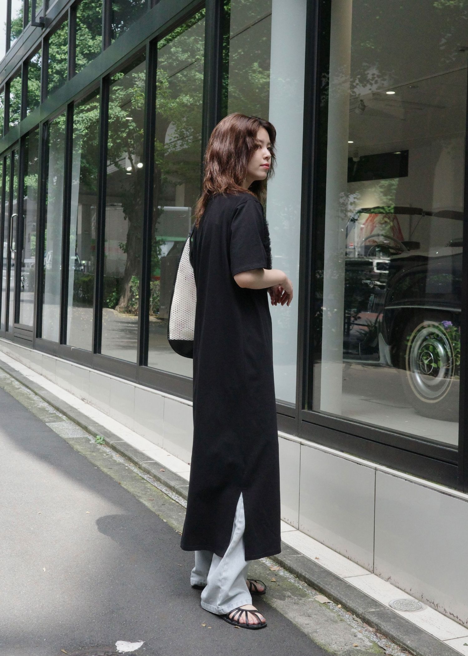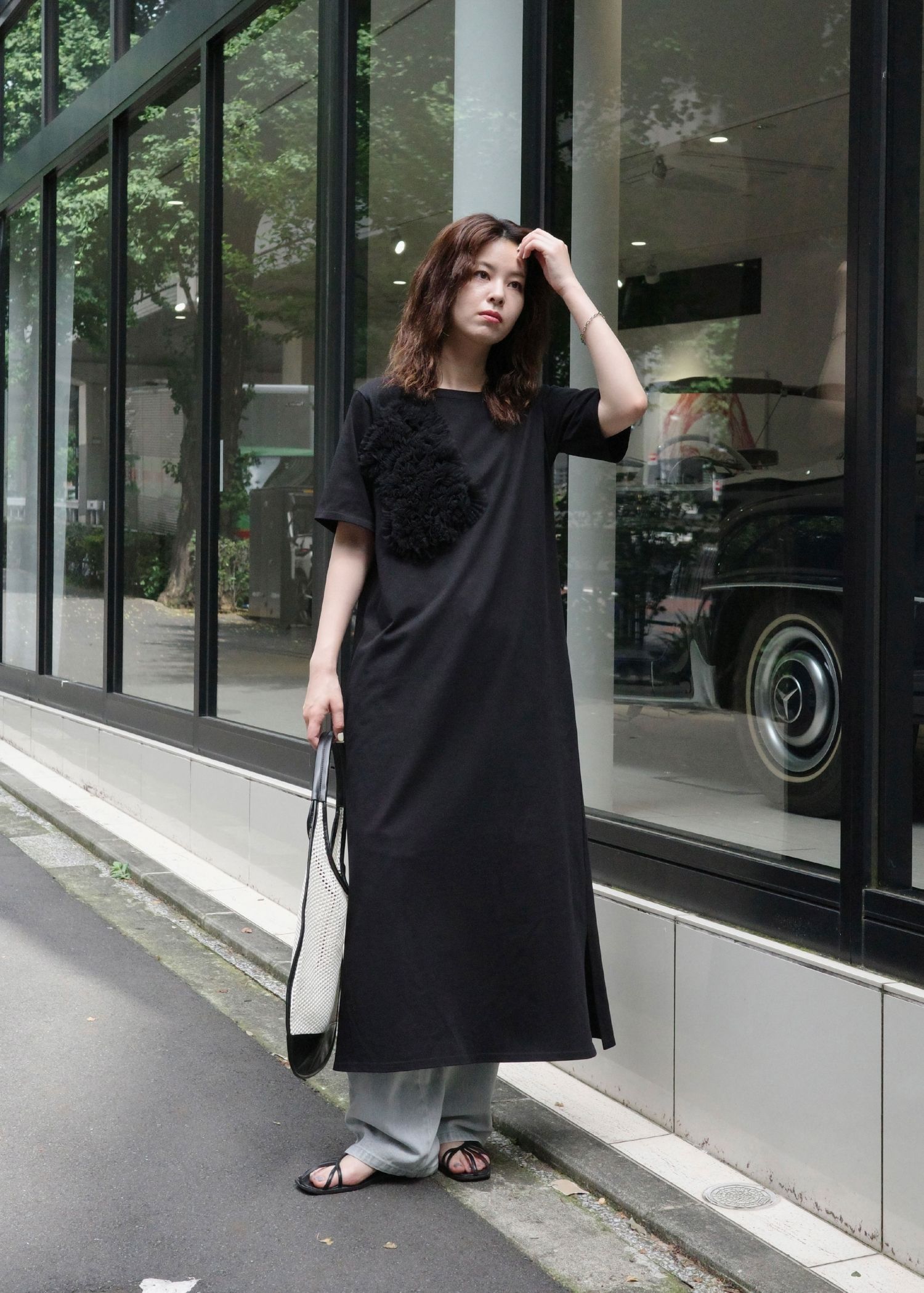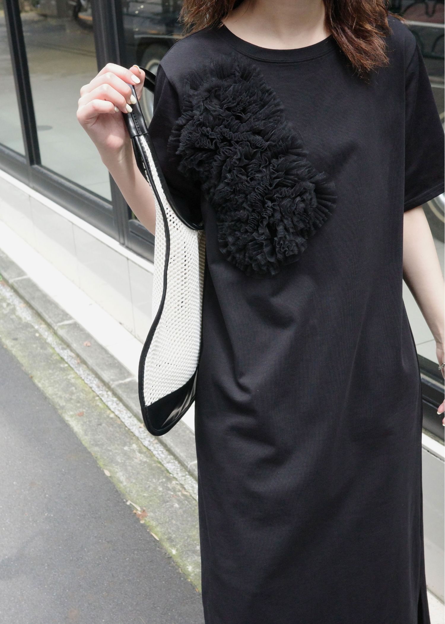 tulle motif half sleeve cut and sew OP