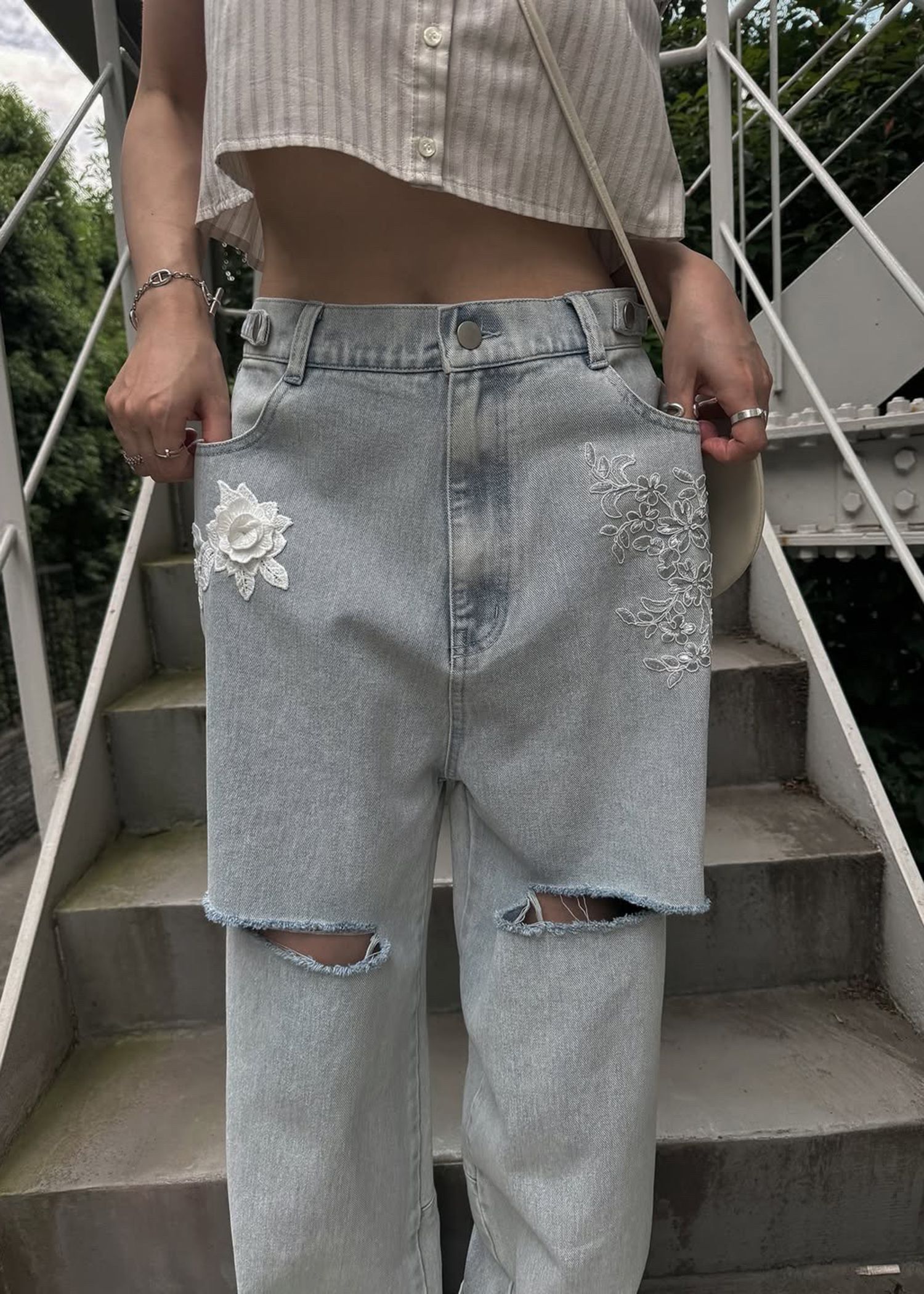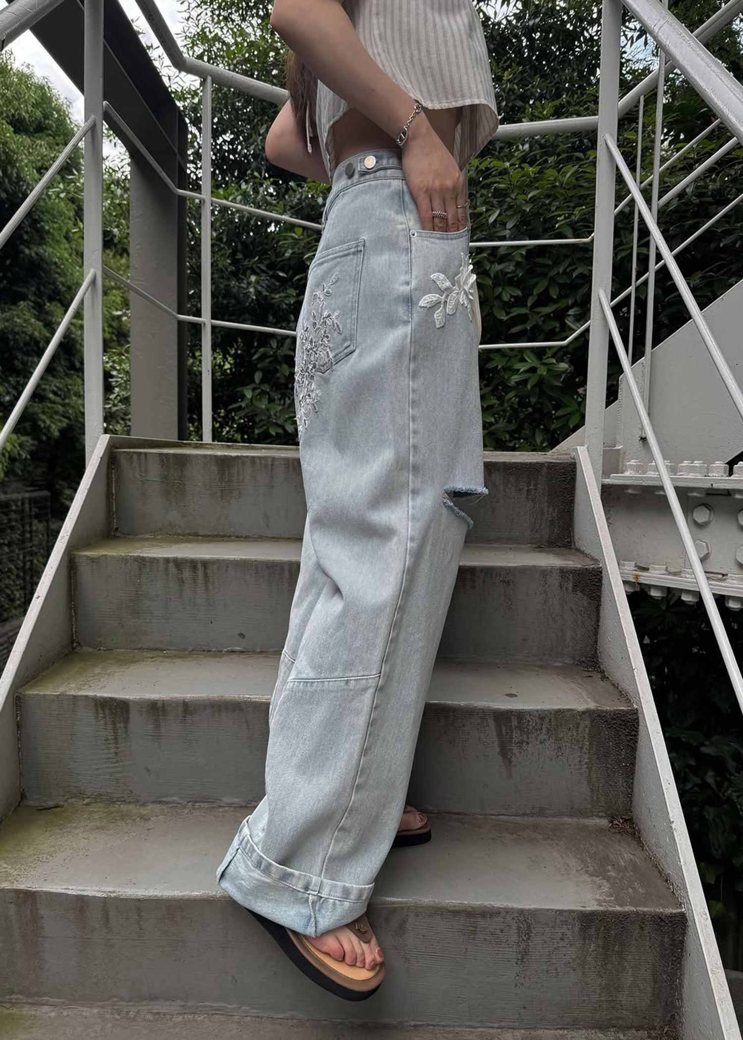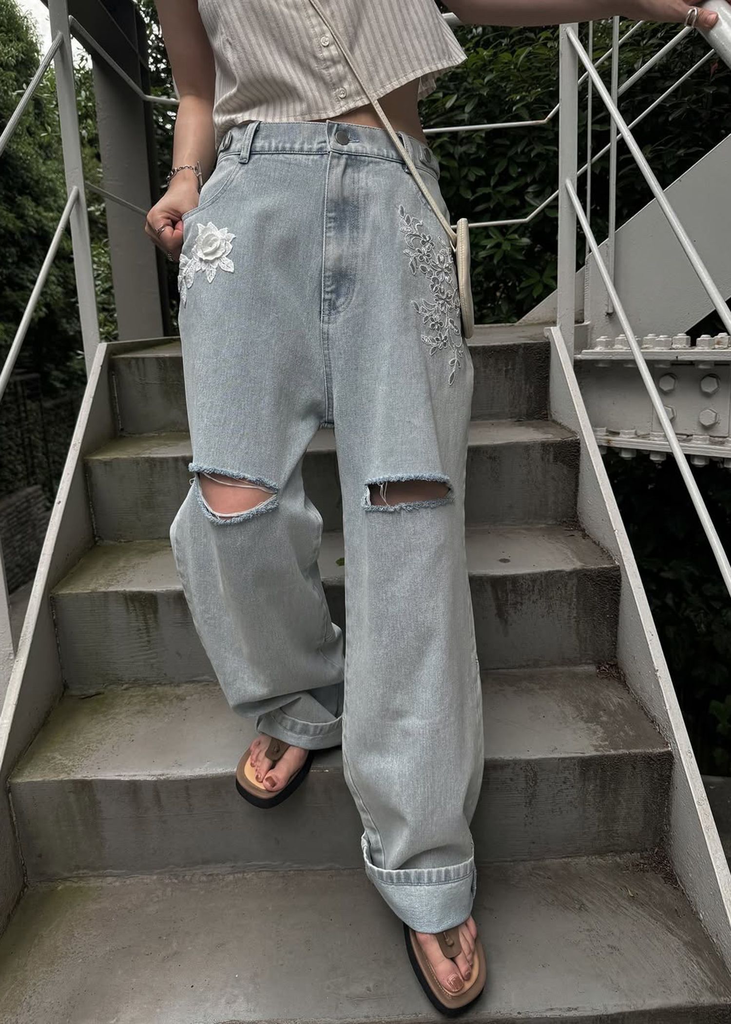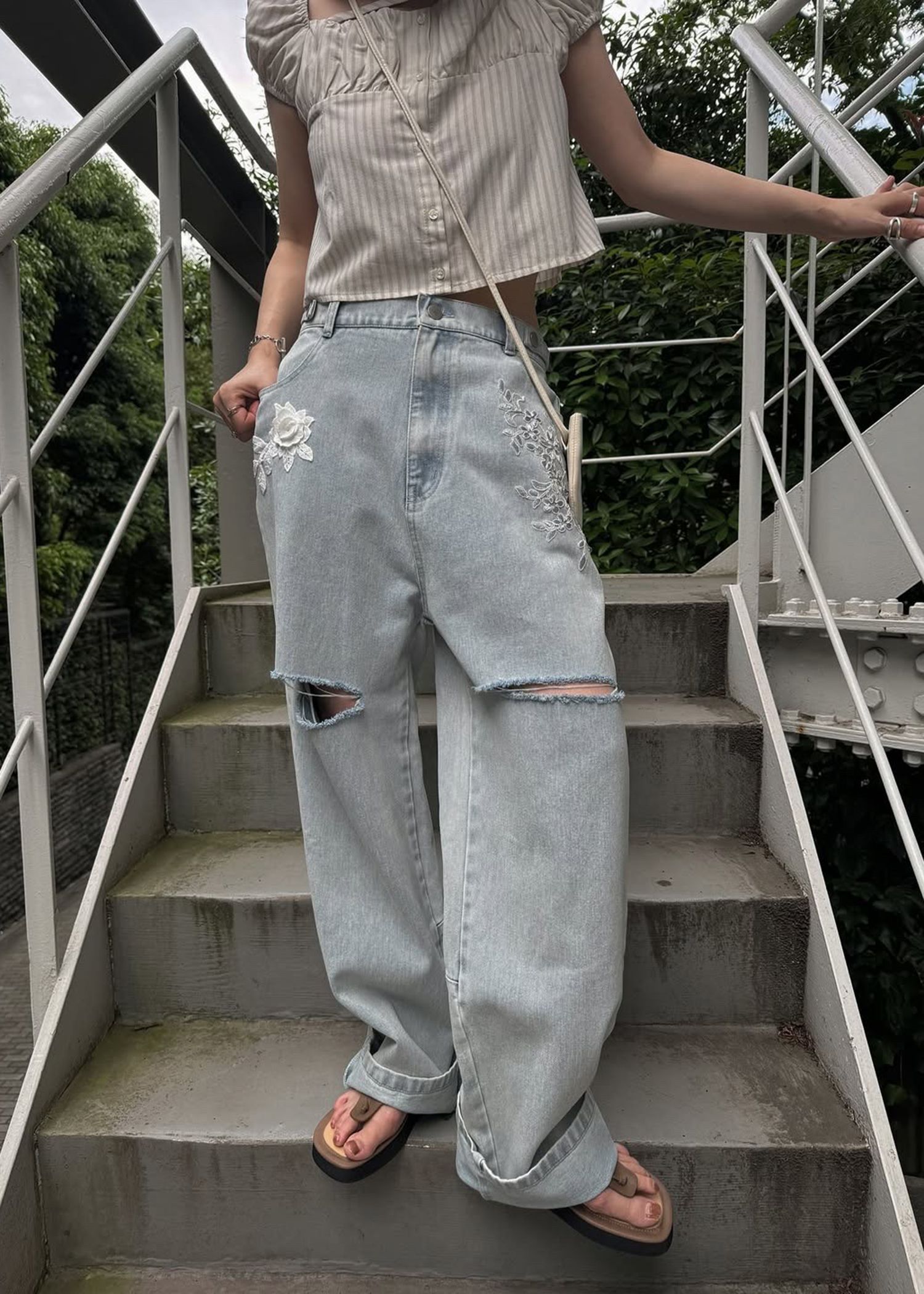 stripe gather puff sleeve BL