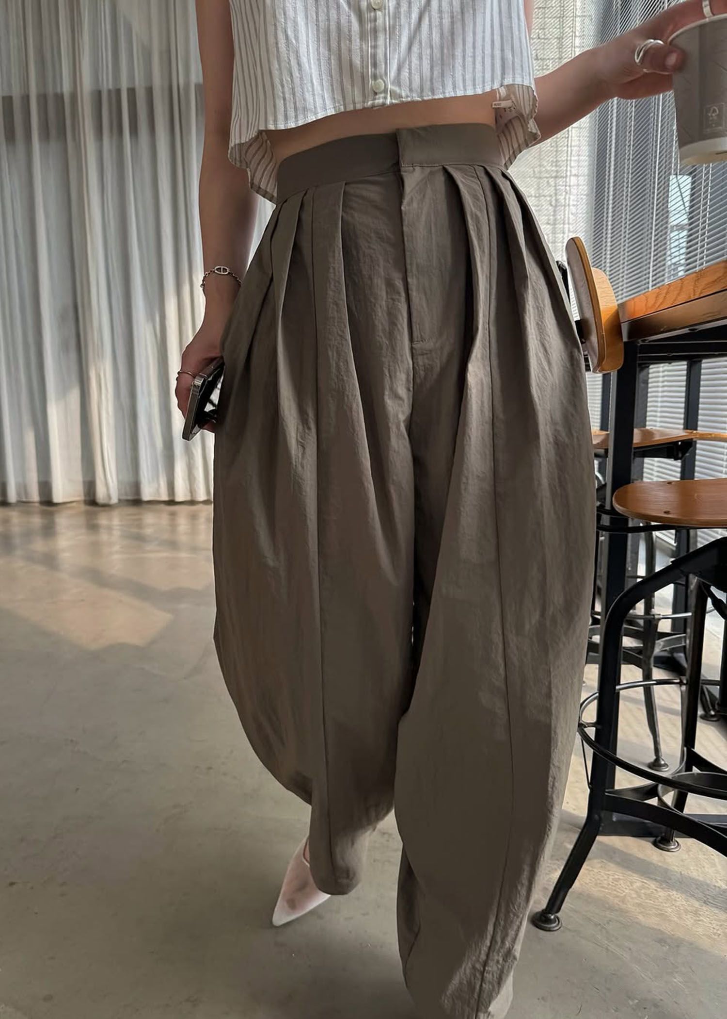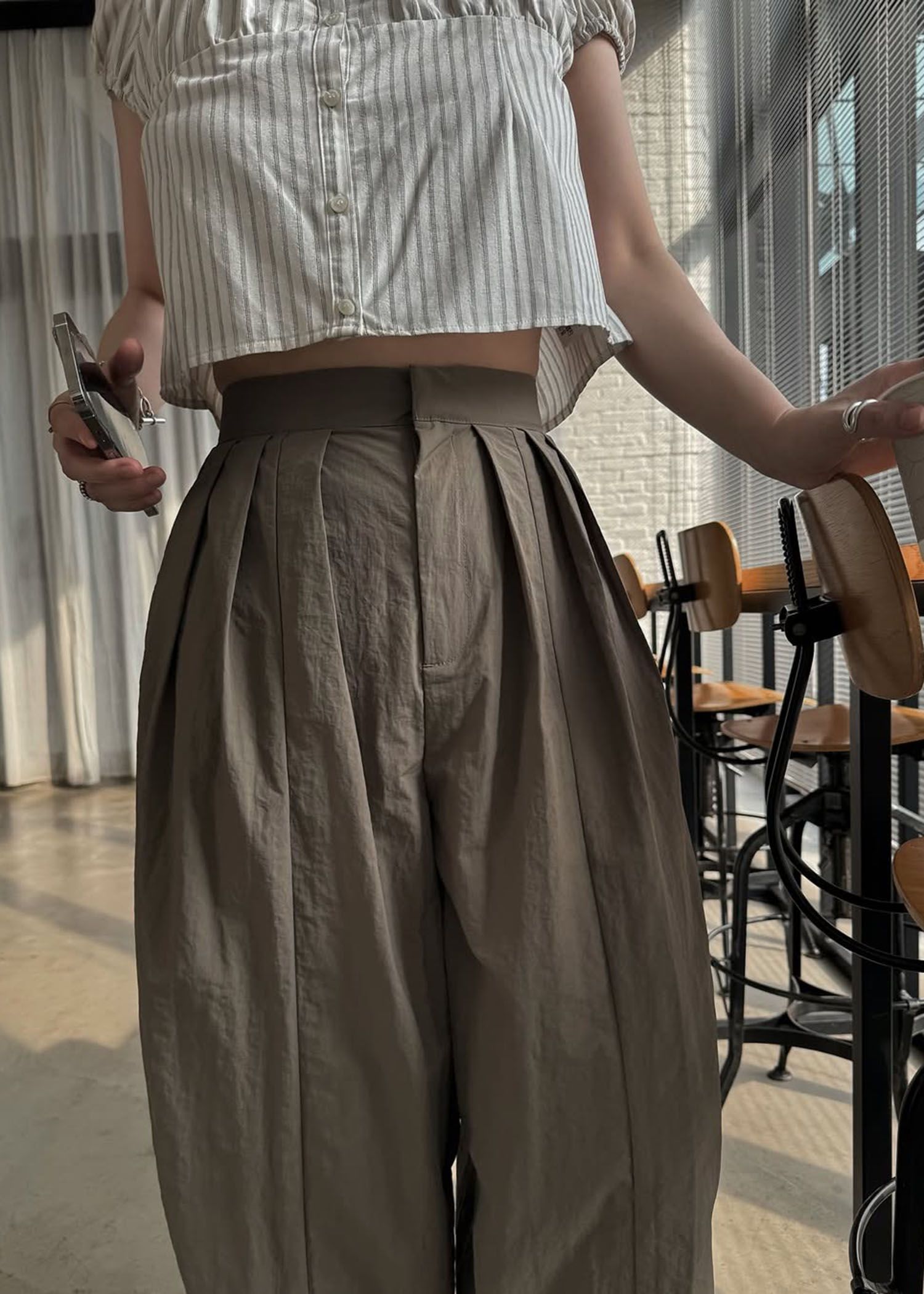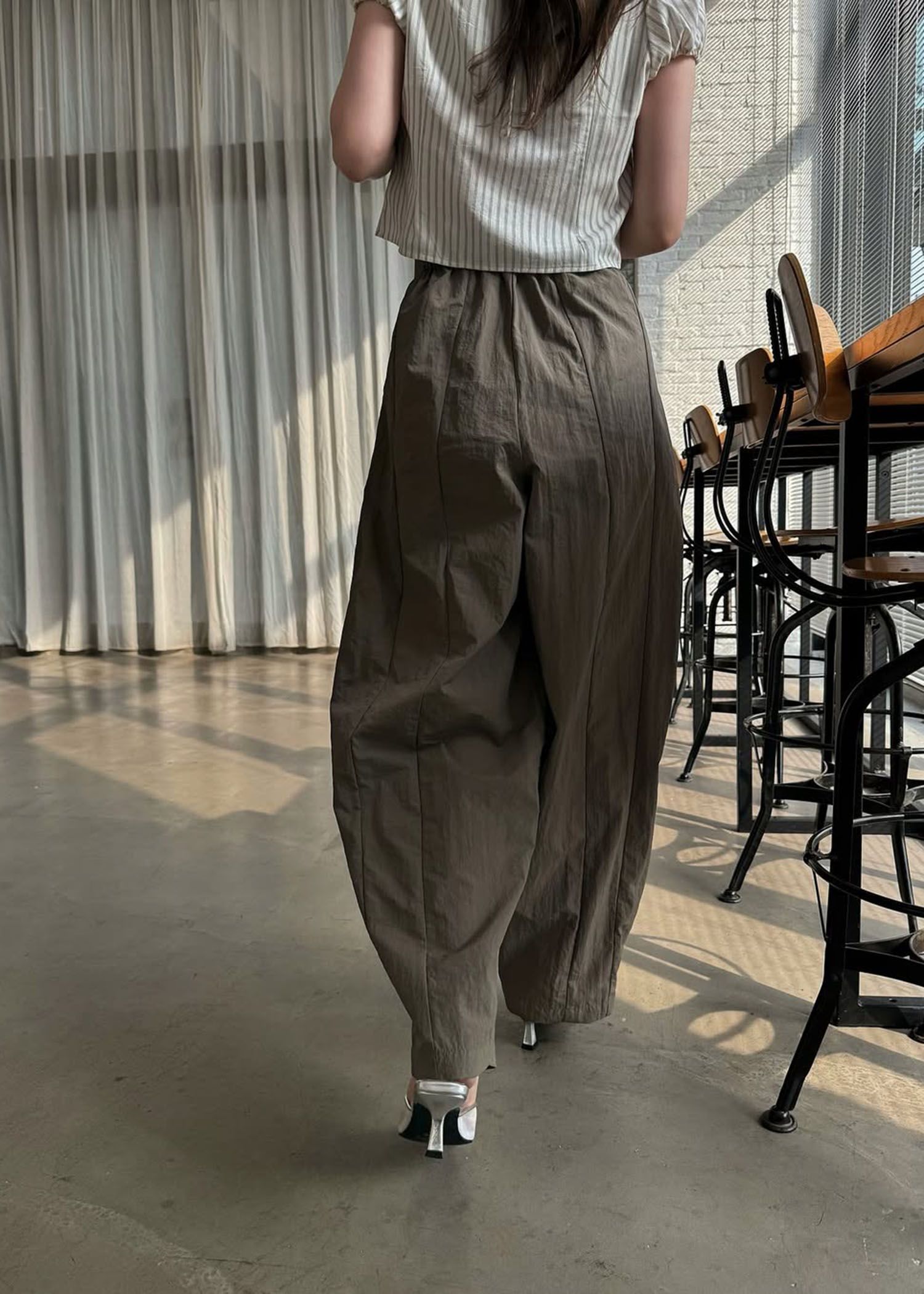 stripe gather puff sleeve BL