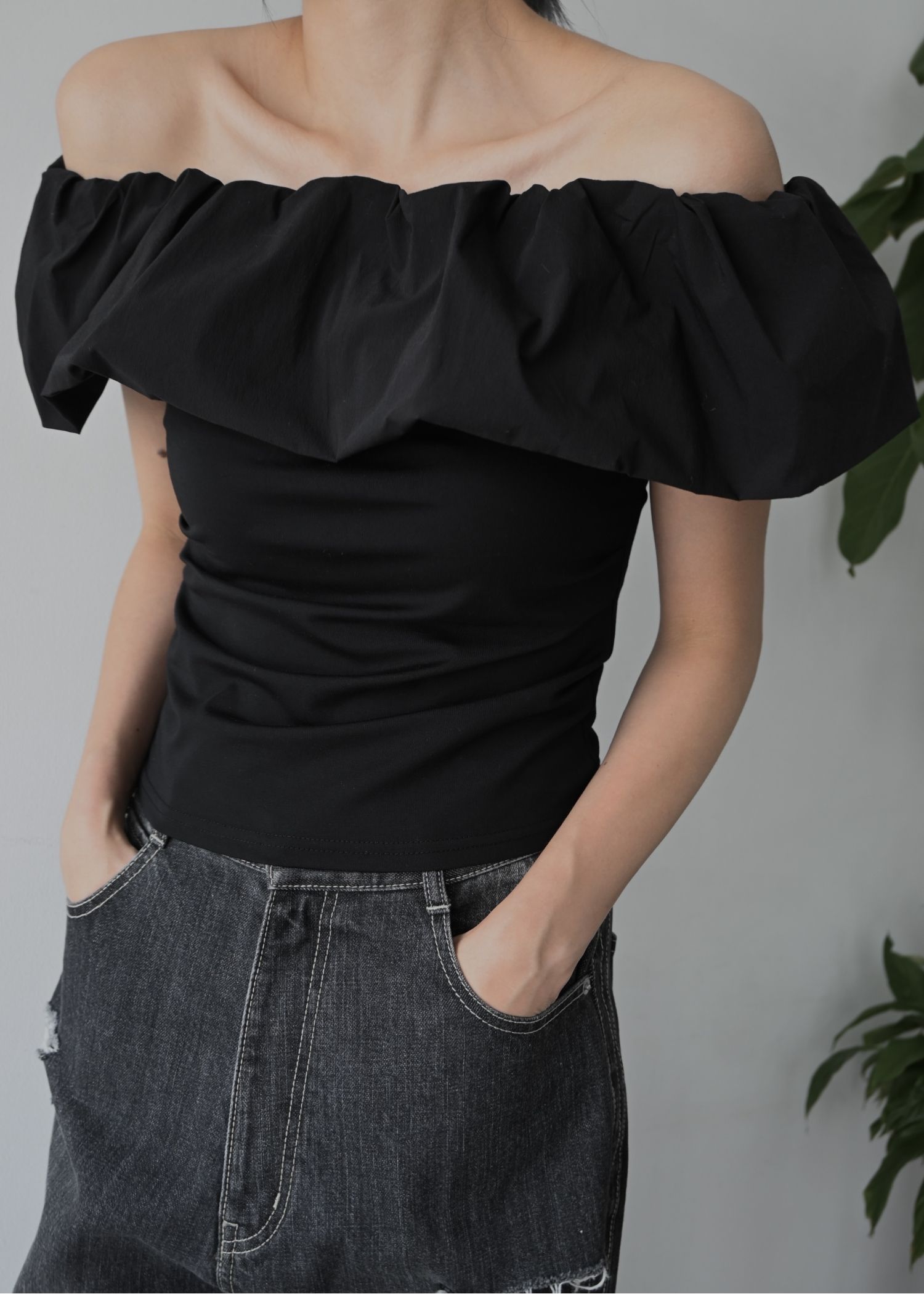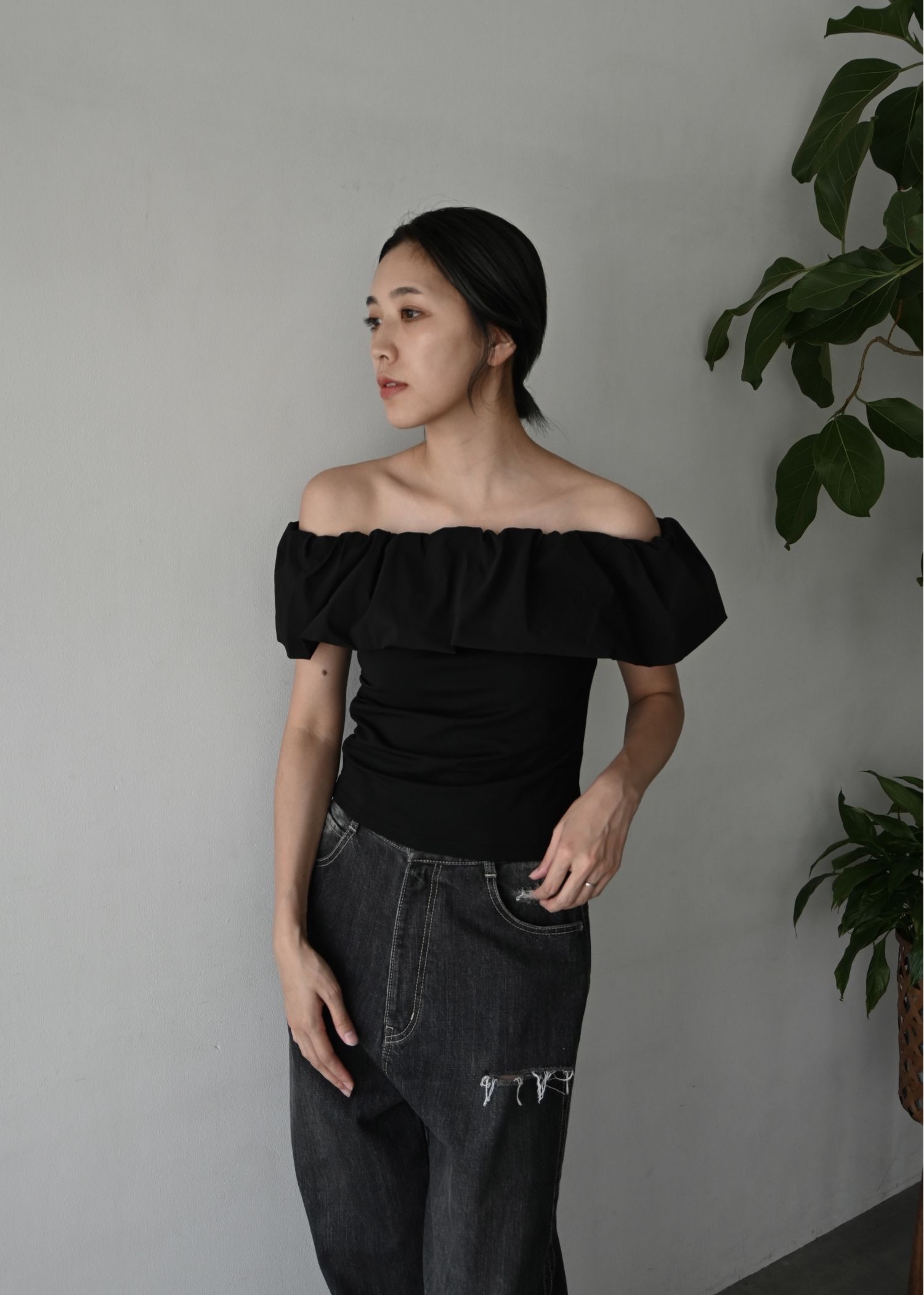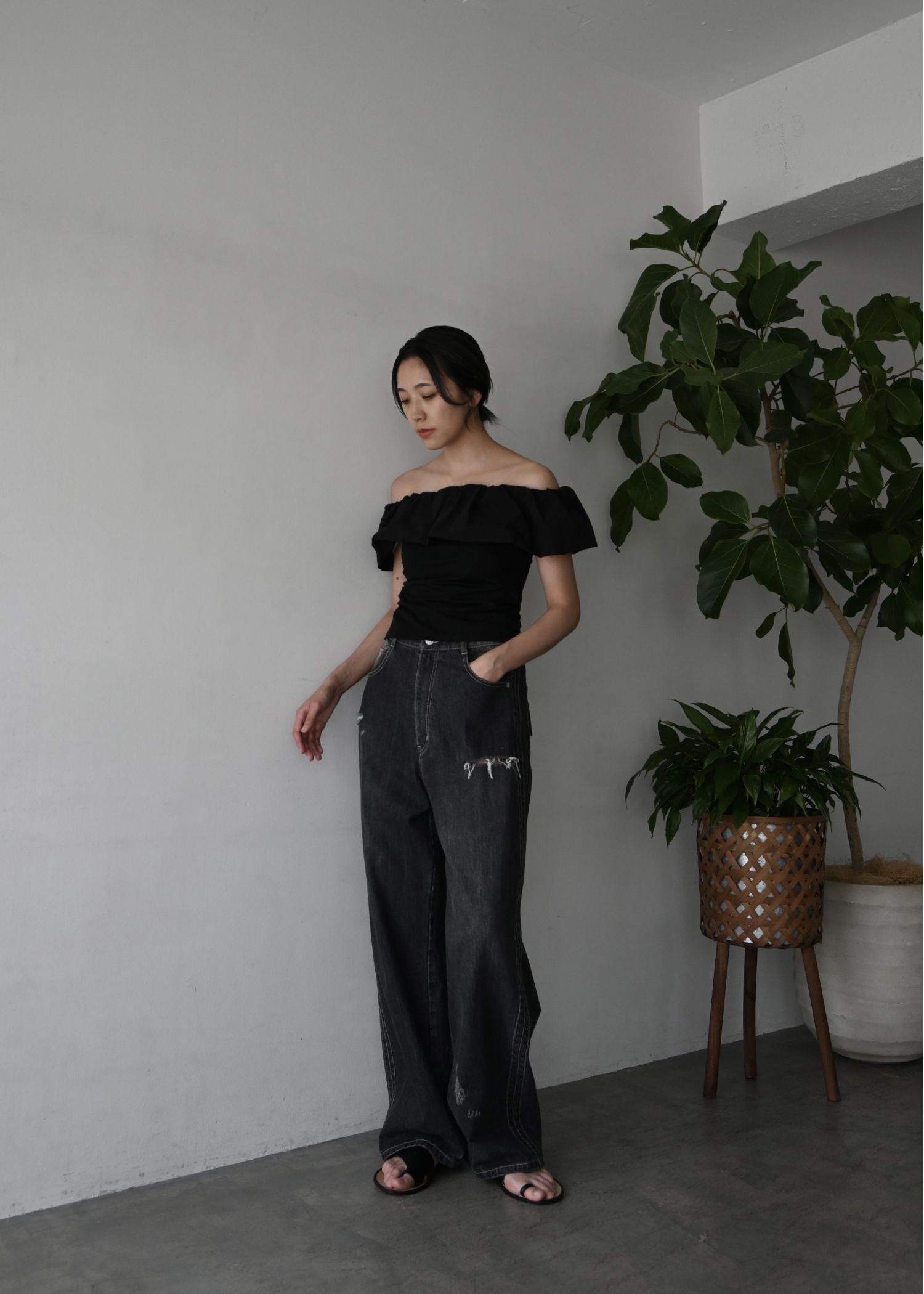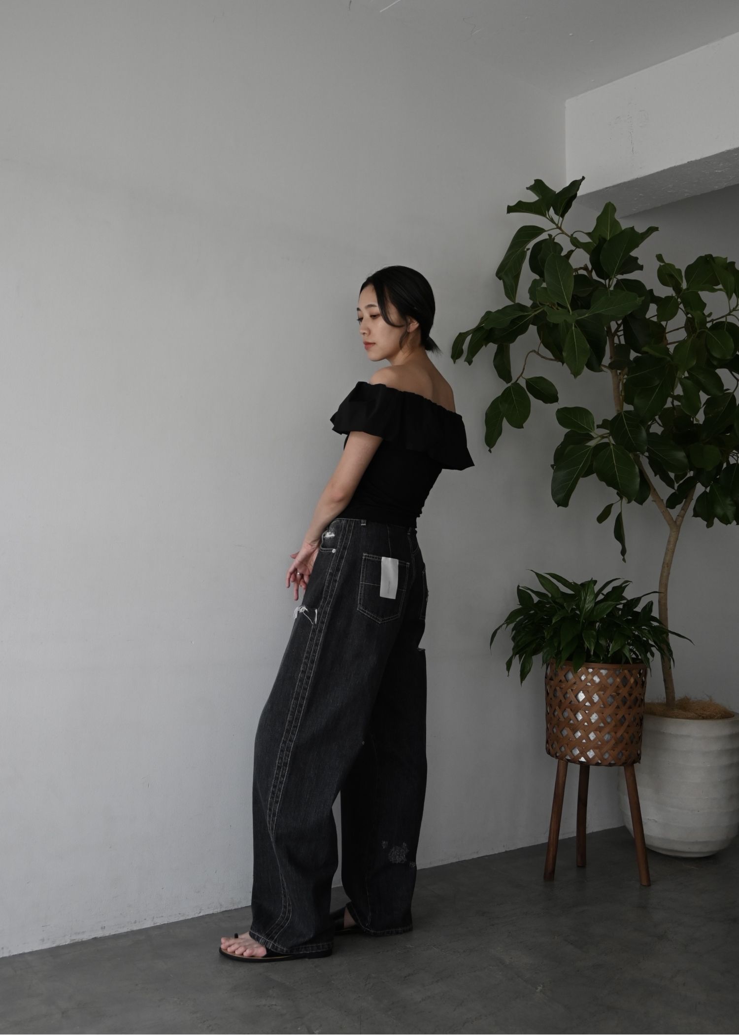 SS loose distressed effect denim PT