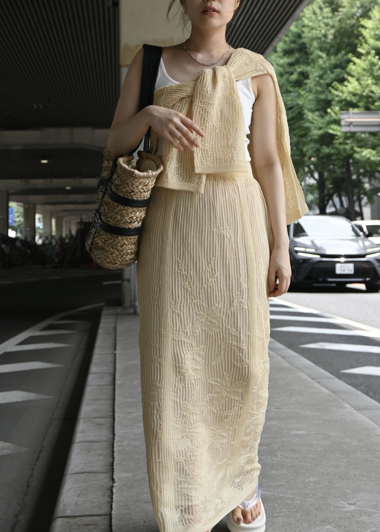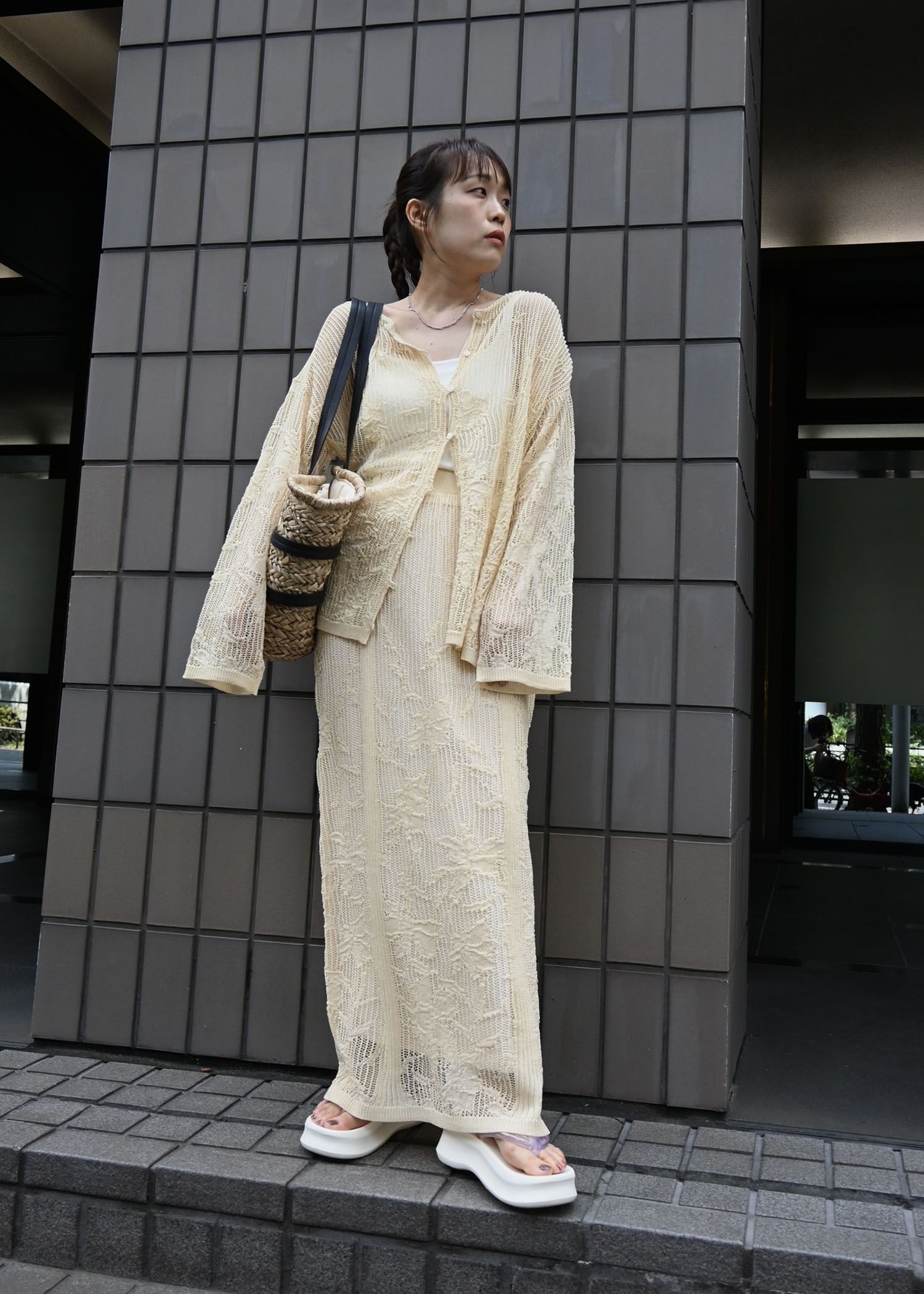 gradation flower mesh flare knit SK