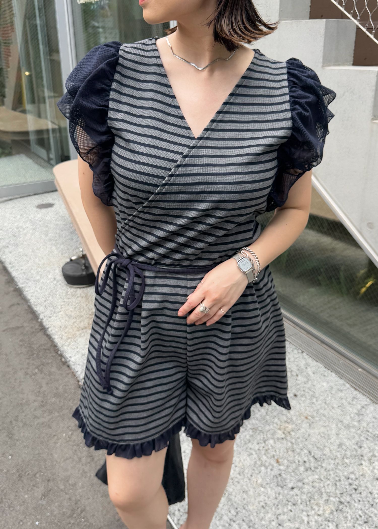 mesh frill sleeve cachecoeur combinaison