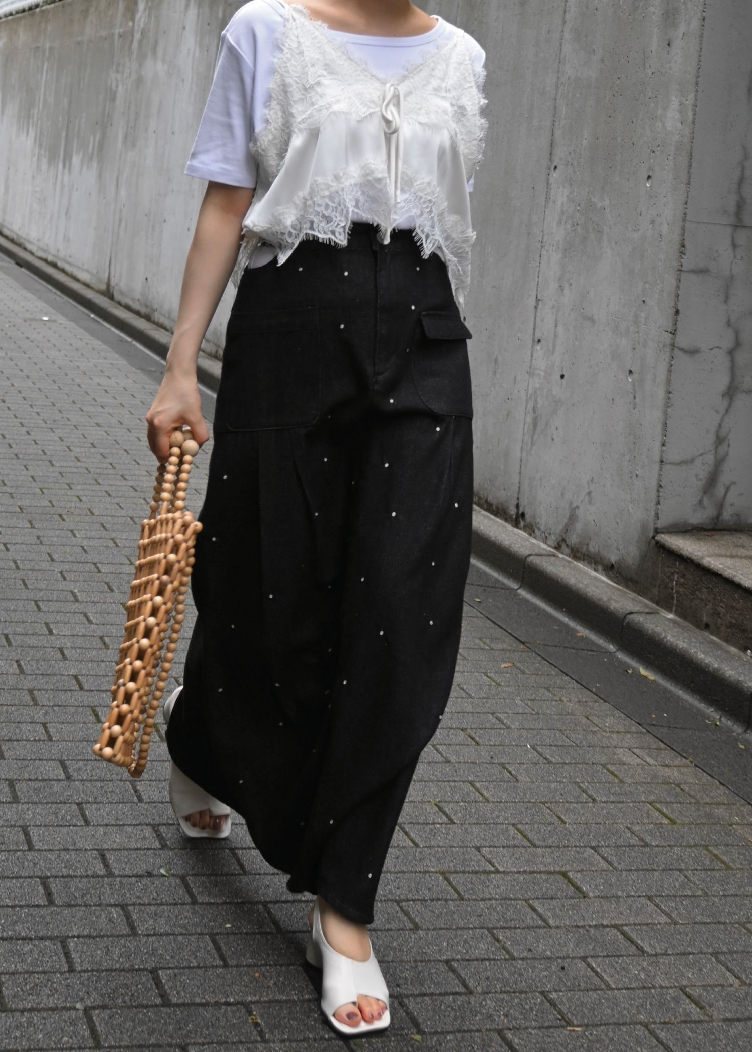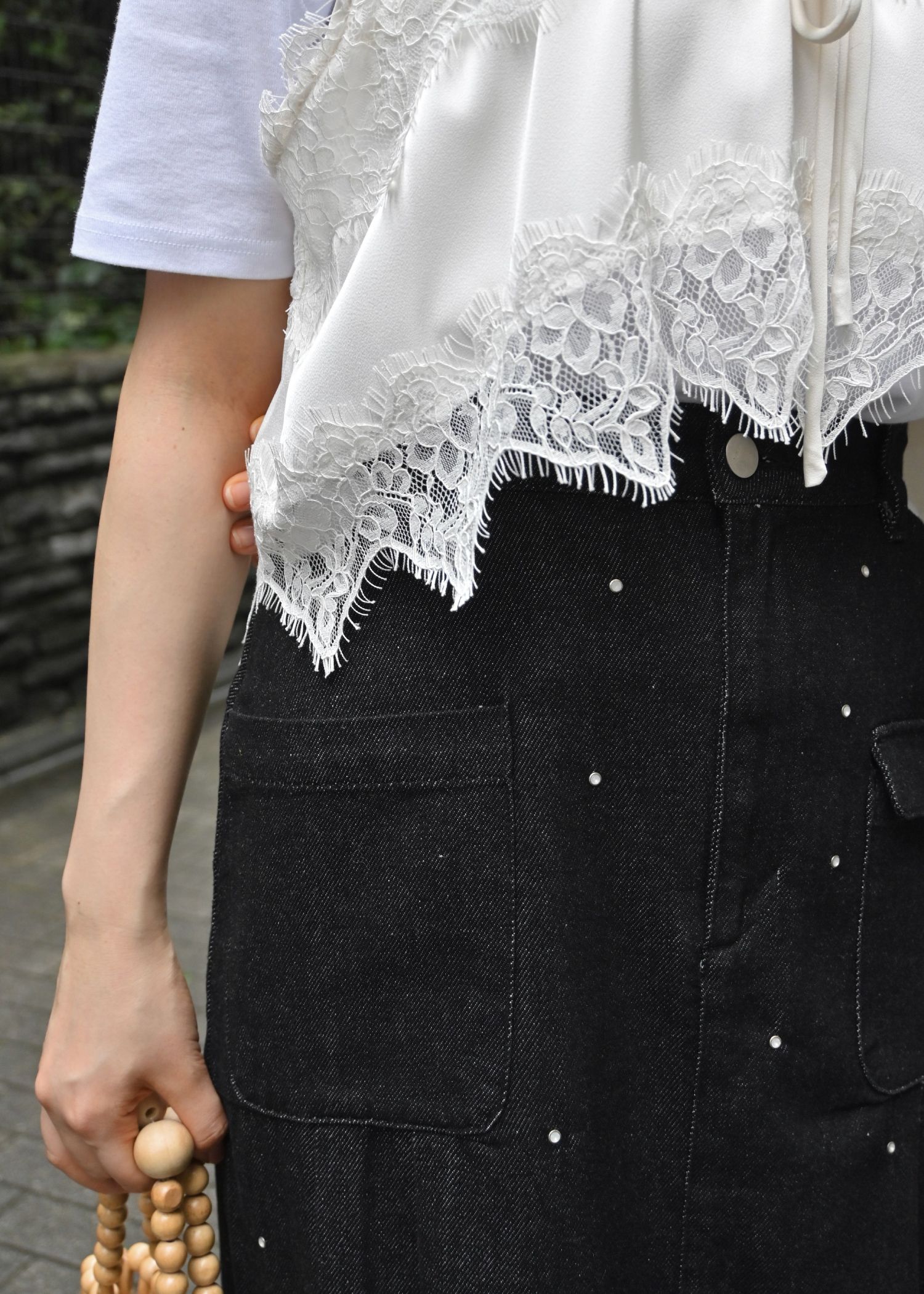 hollow out bijou tuck denim tight SK