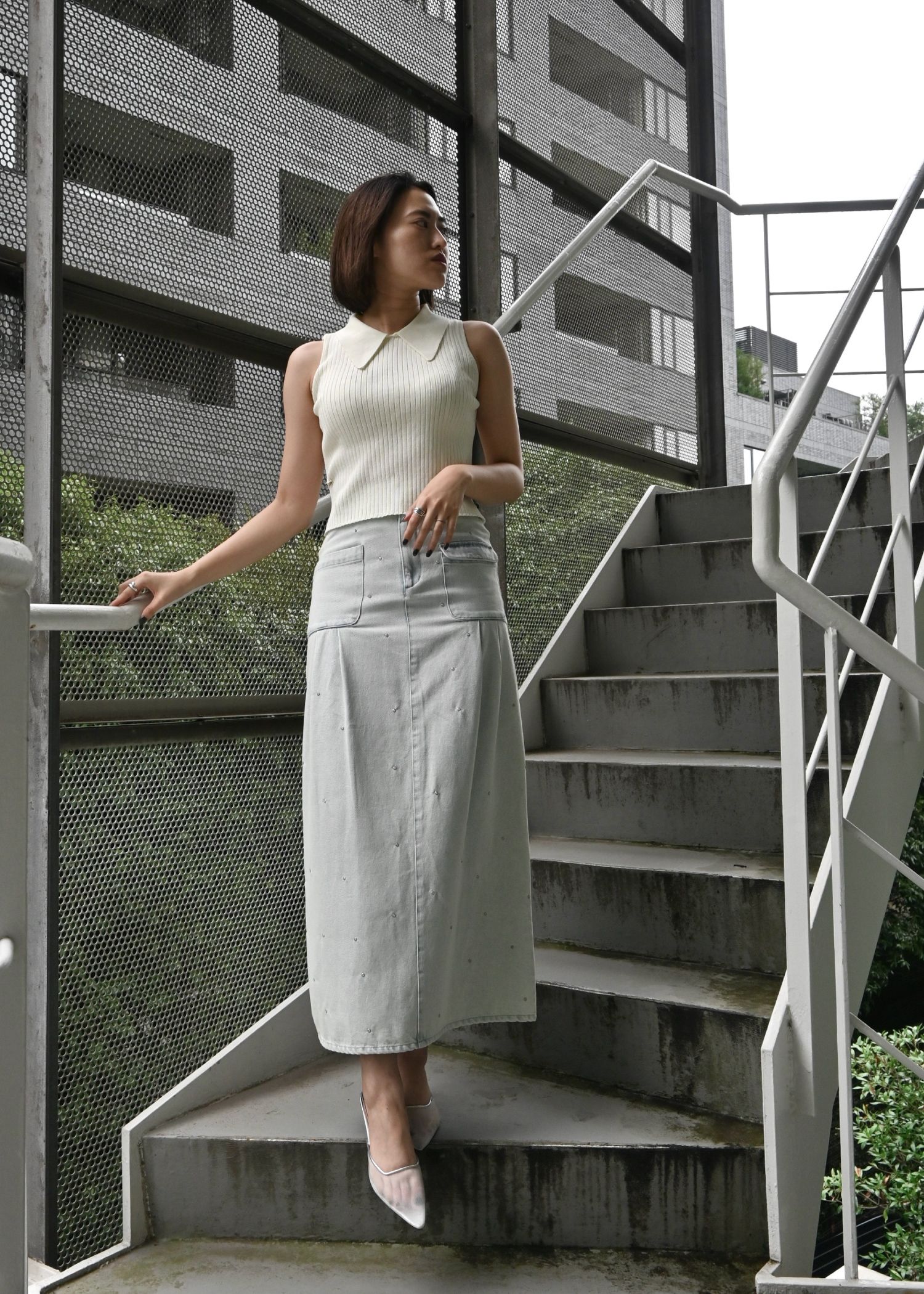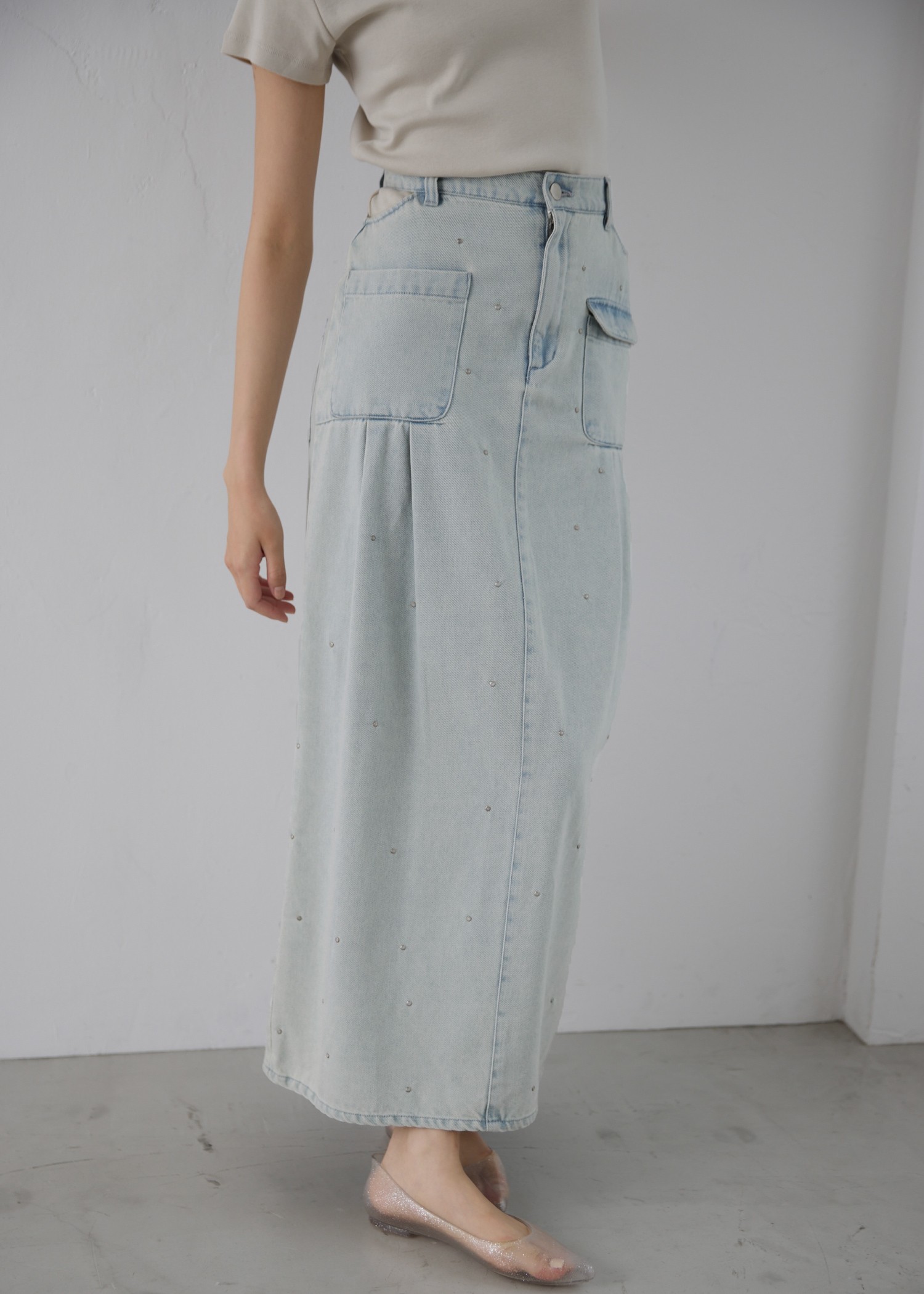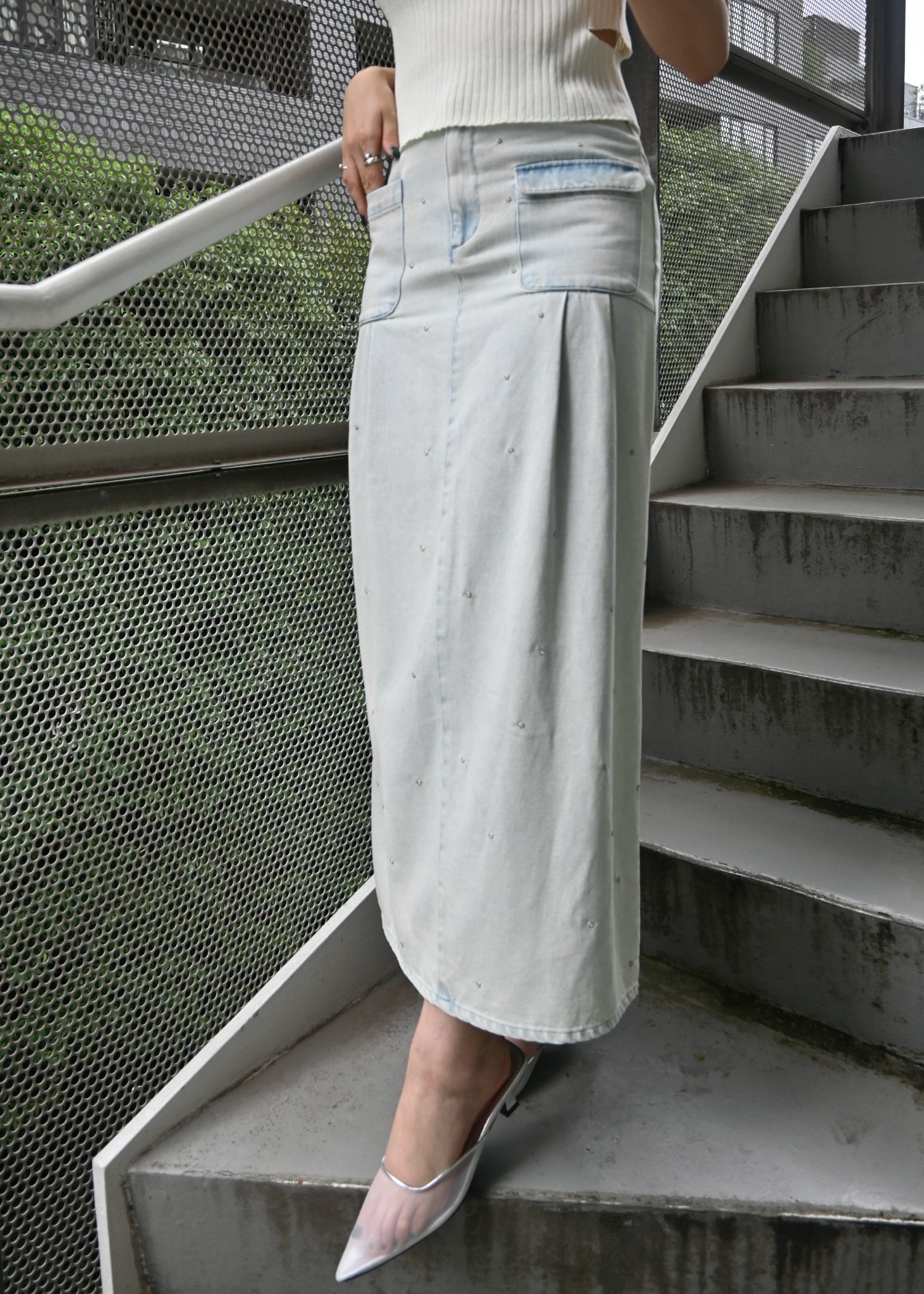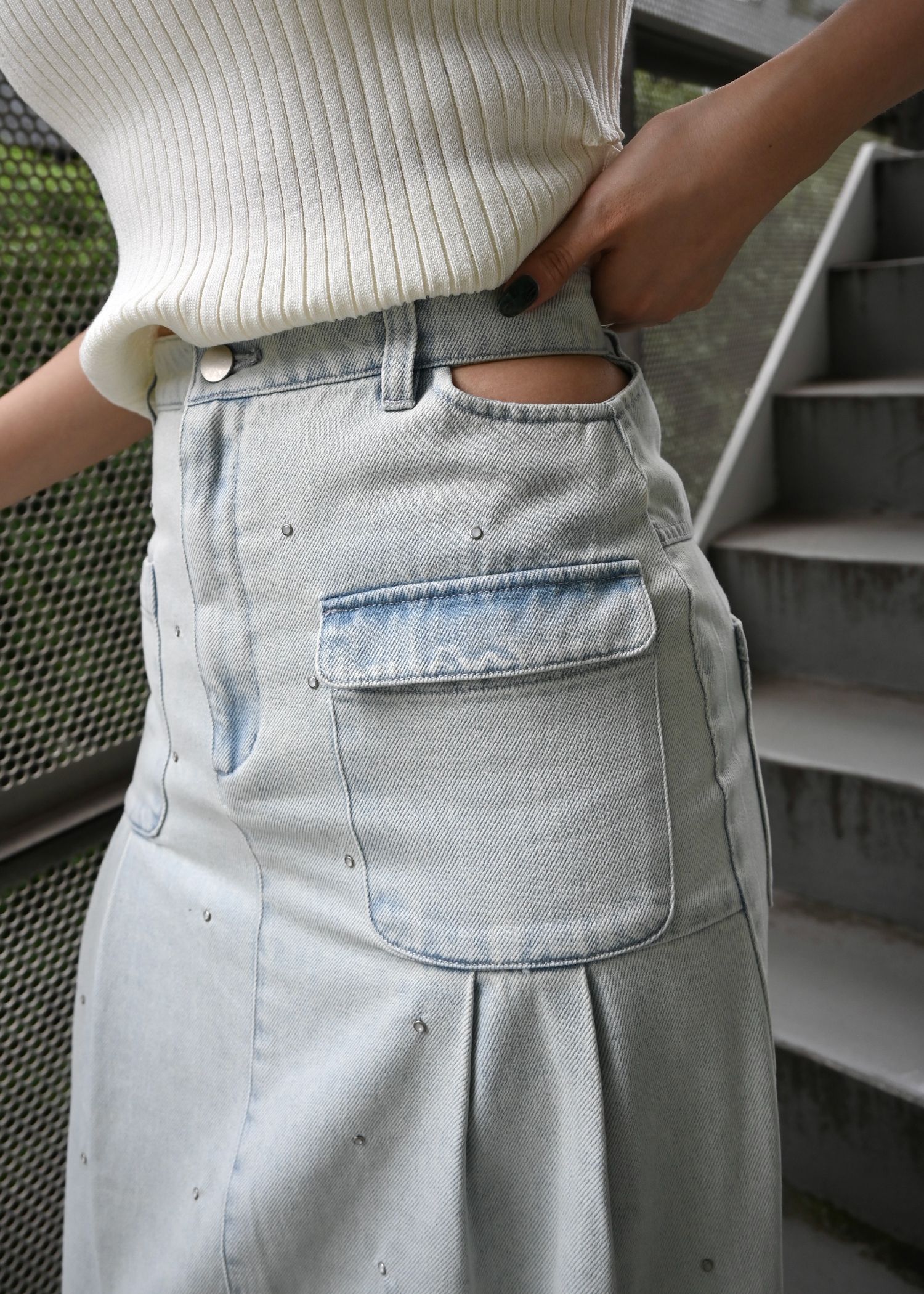 hollow out bijou tuck denim tight SK