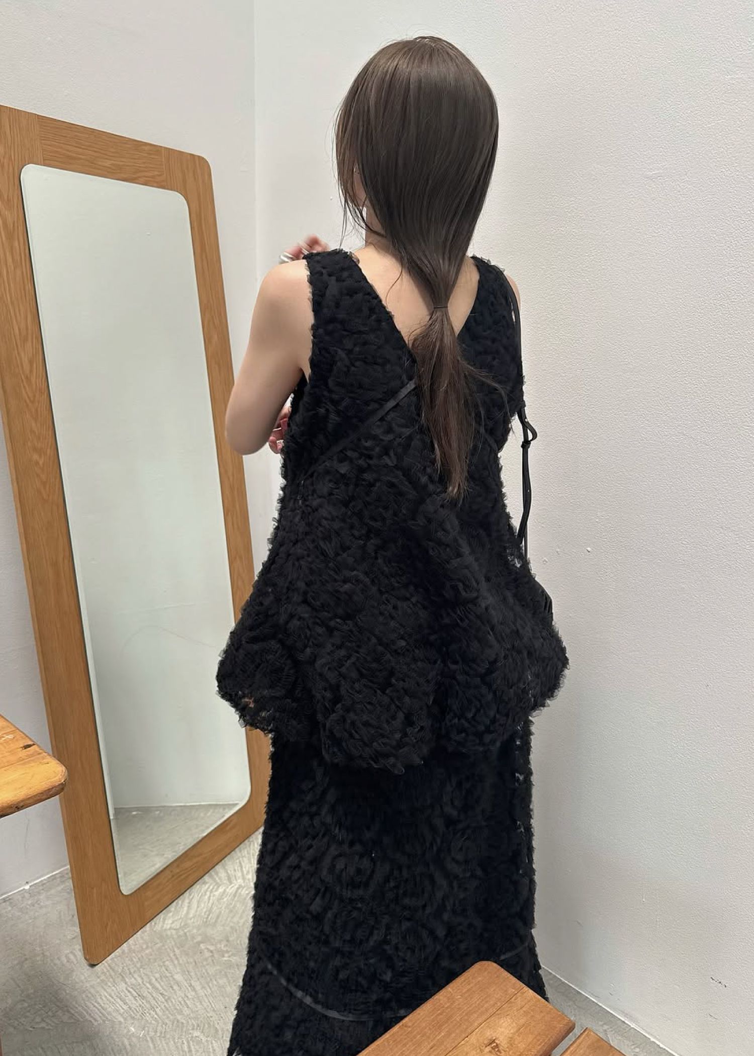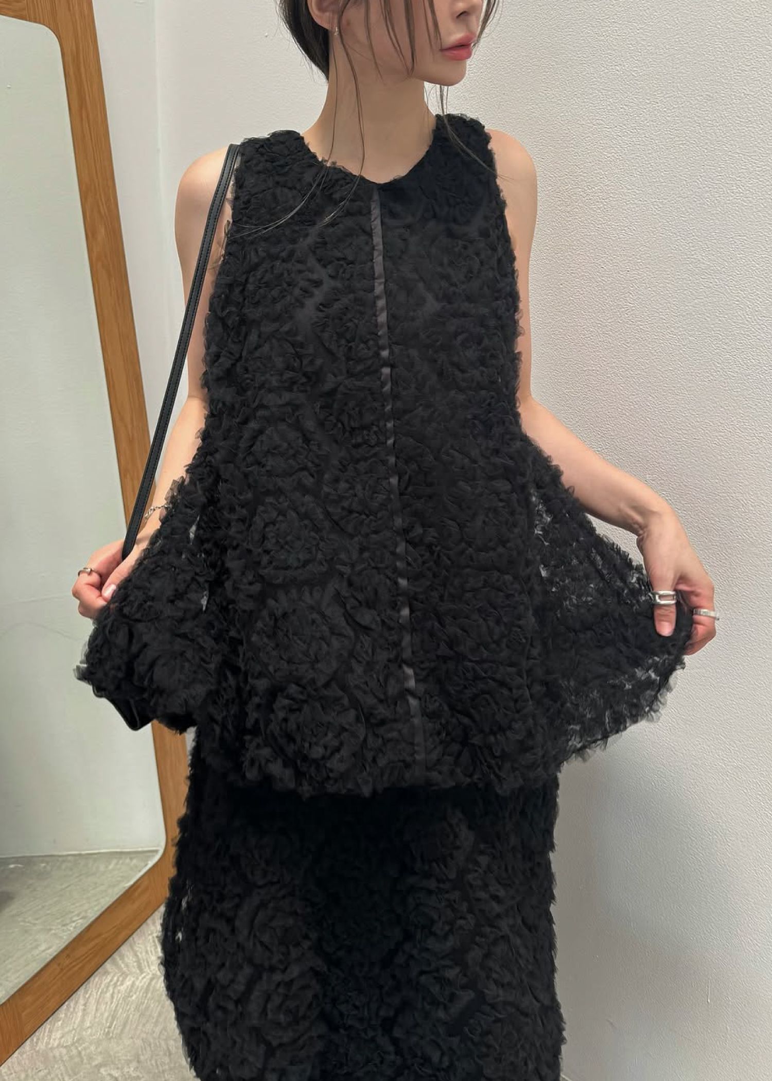 circle tulle motif balloon peplum nosleeve tops