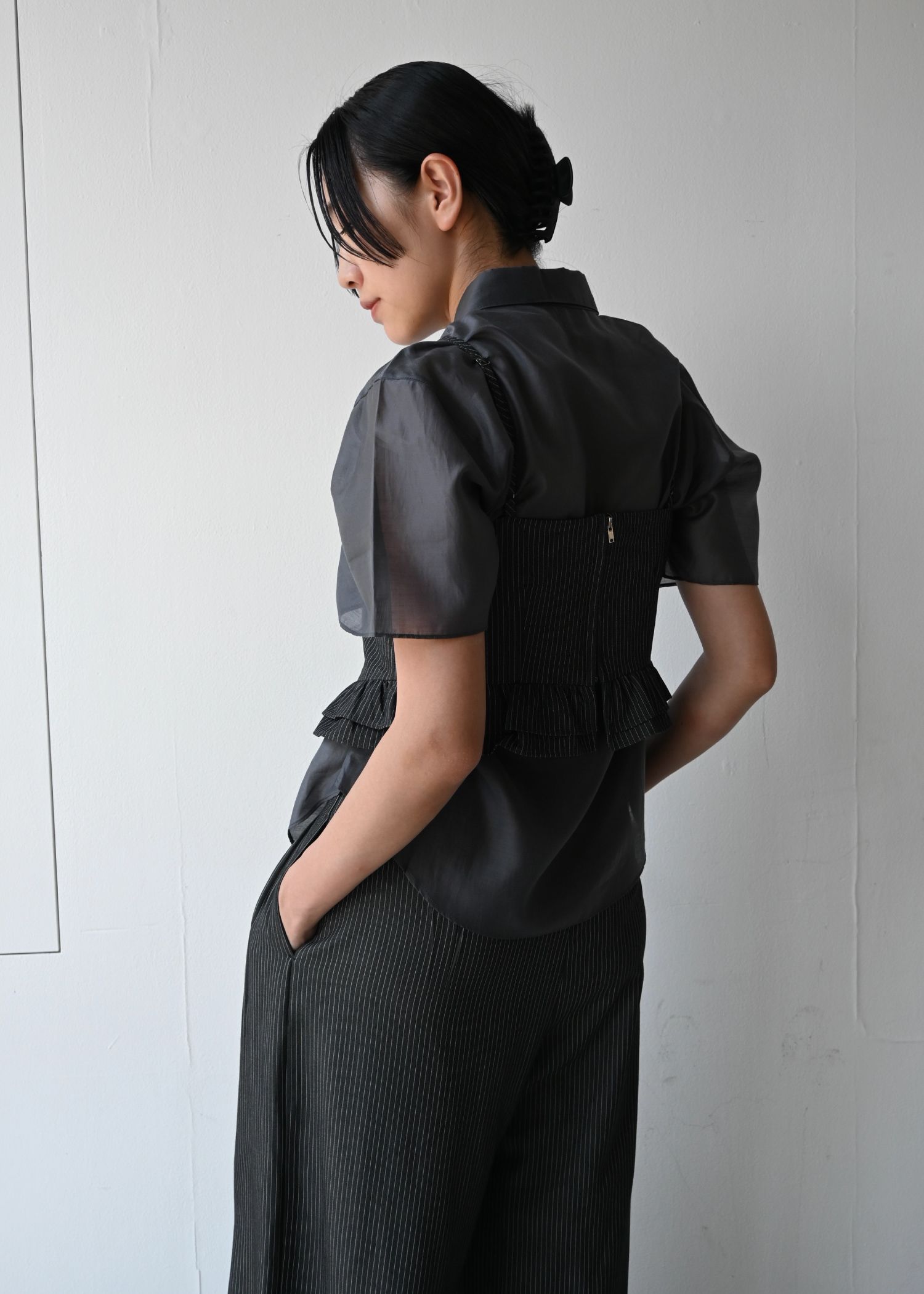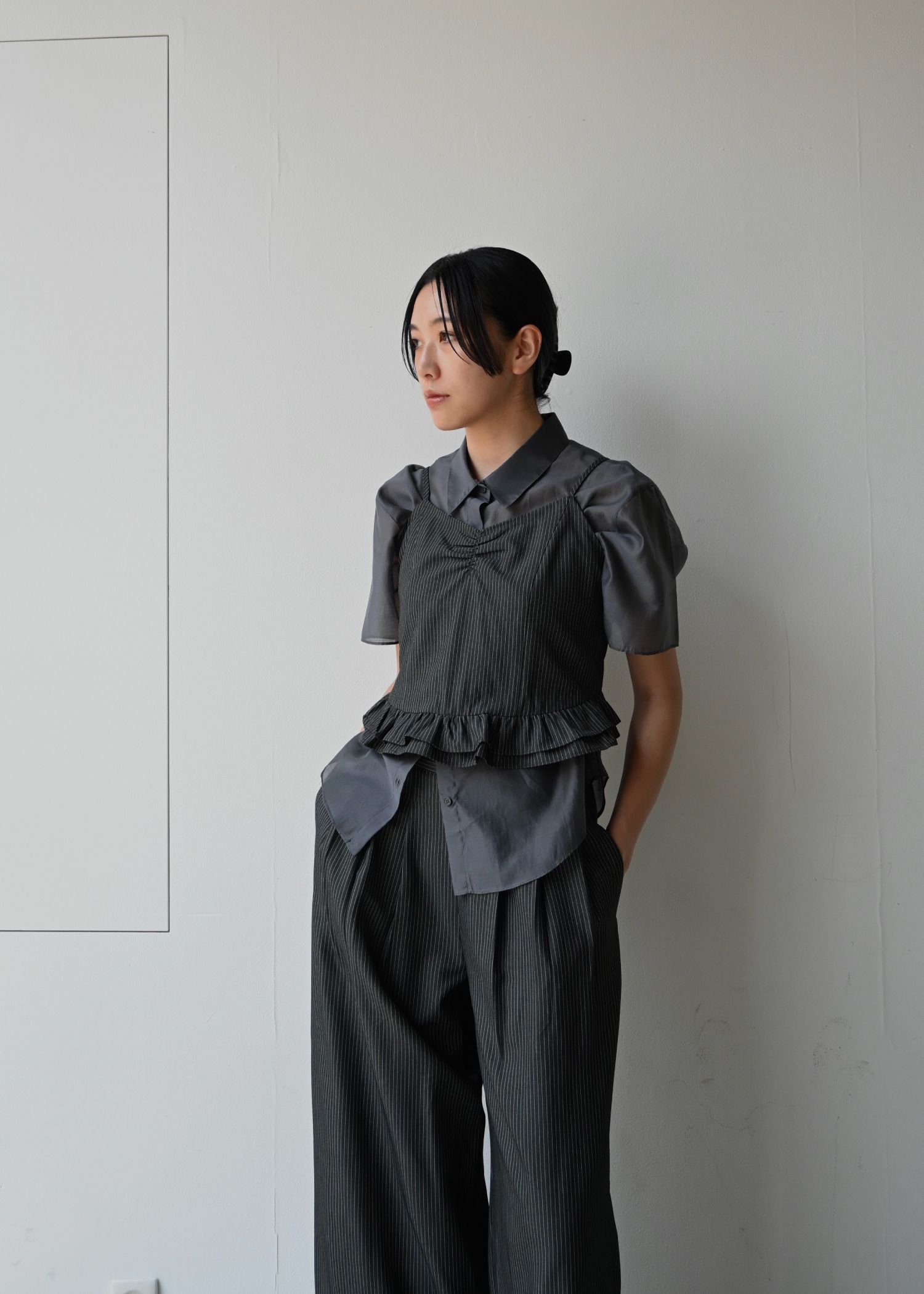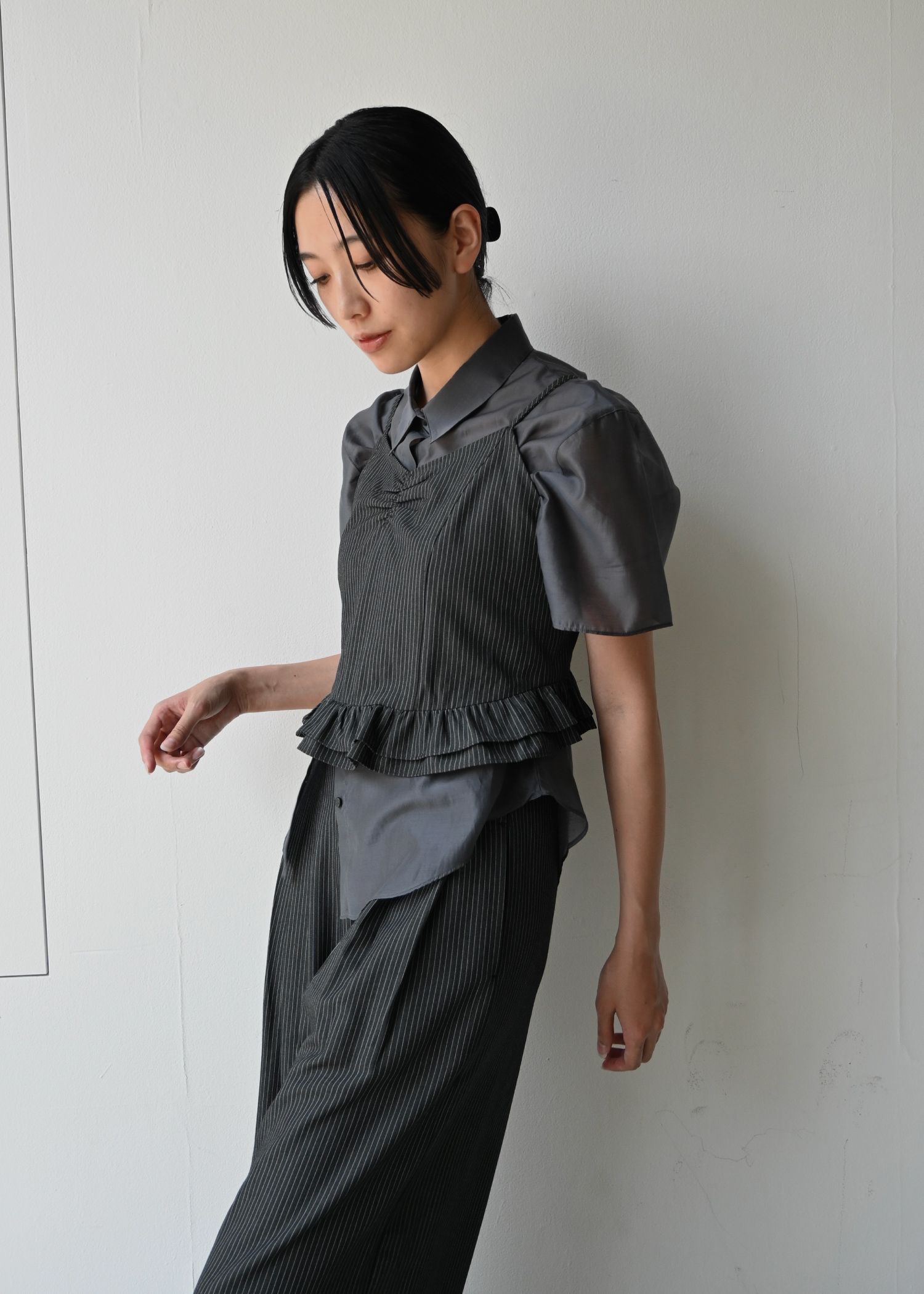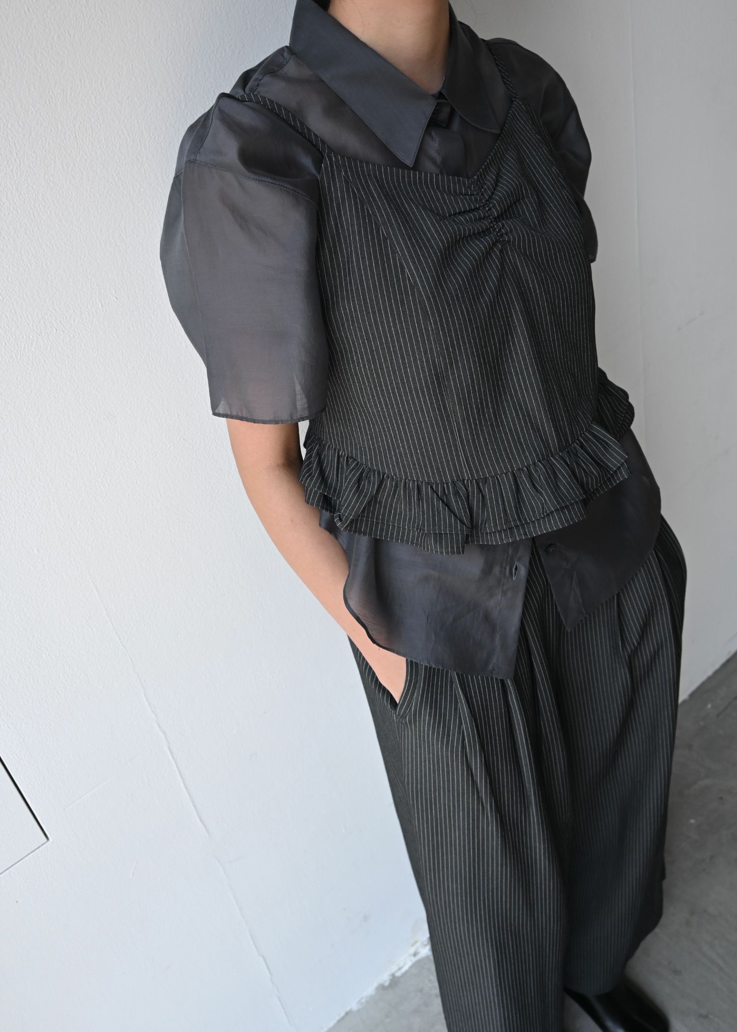 undulate gather frill stripe cami