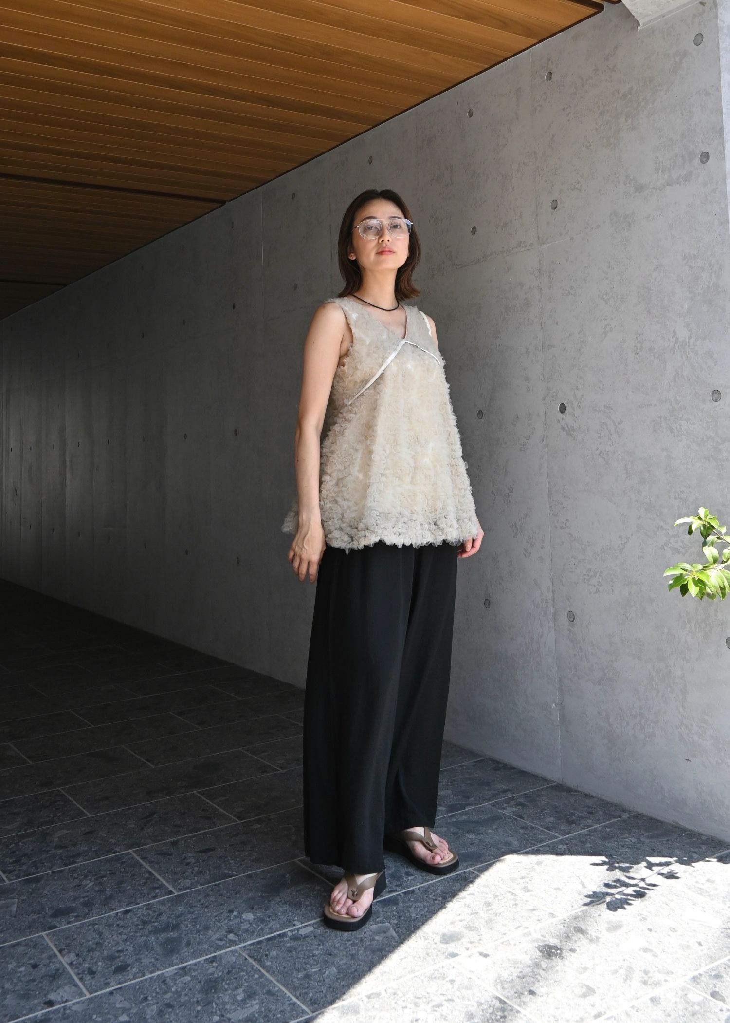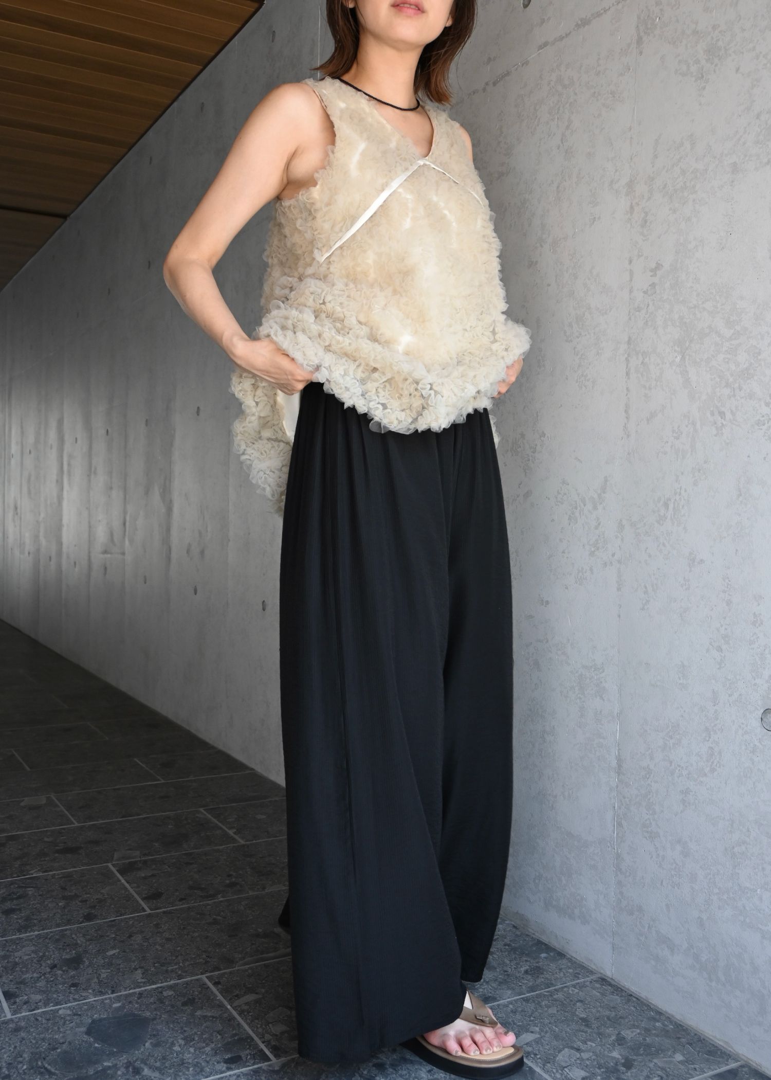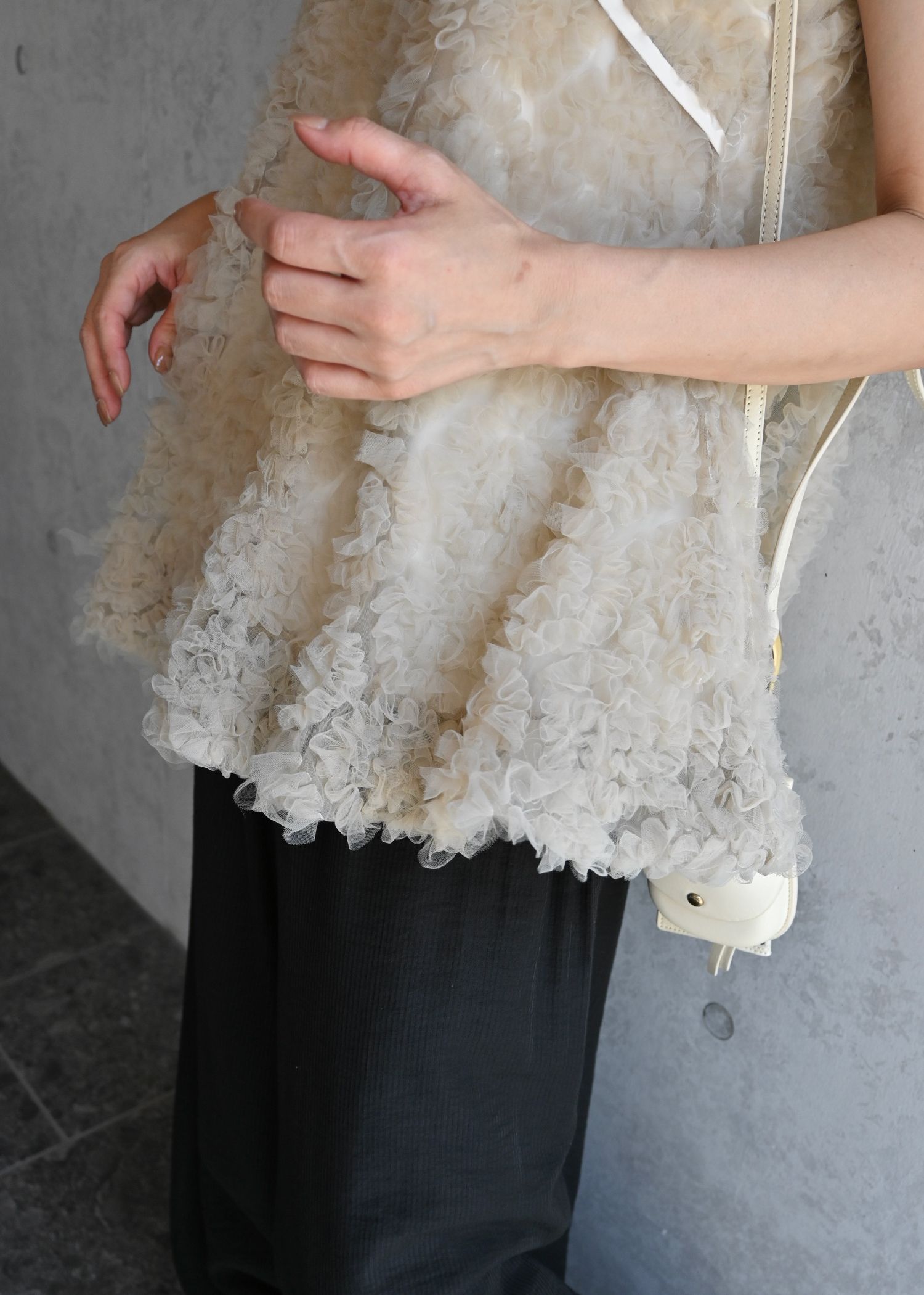 circle tulle motif balloon peplum nosleeve tops