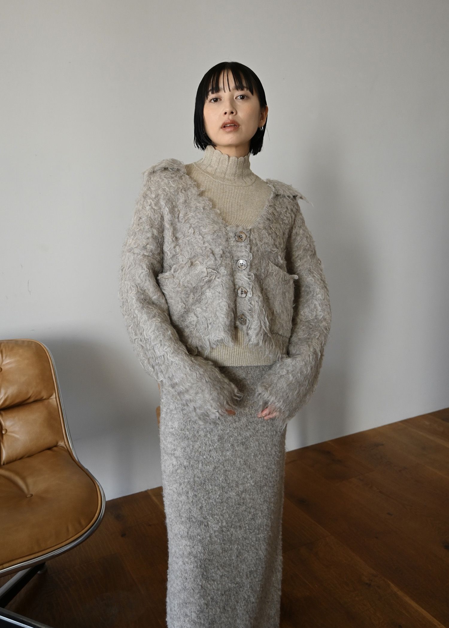 brushed lightly reversible knit cardigan