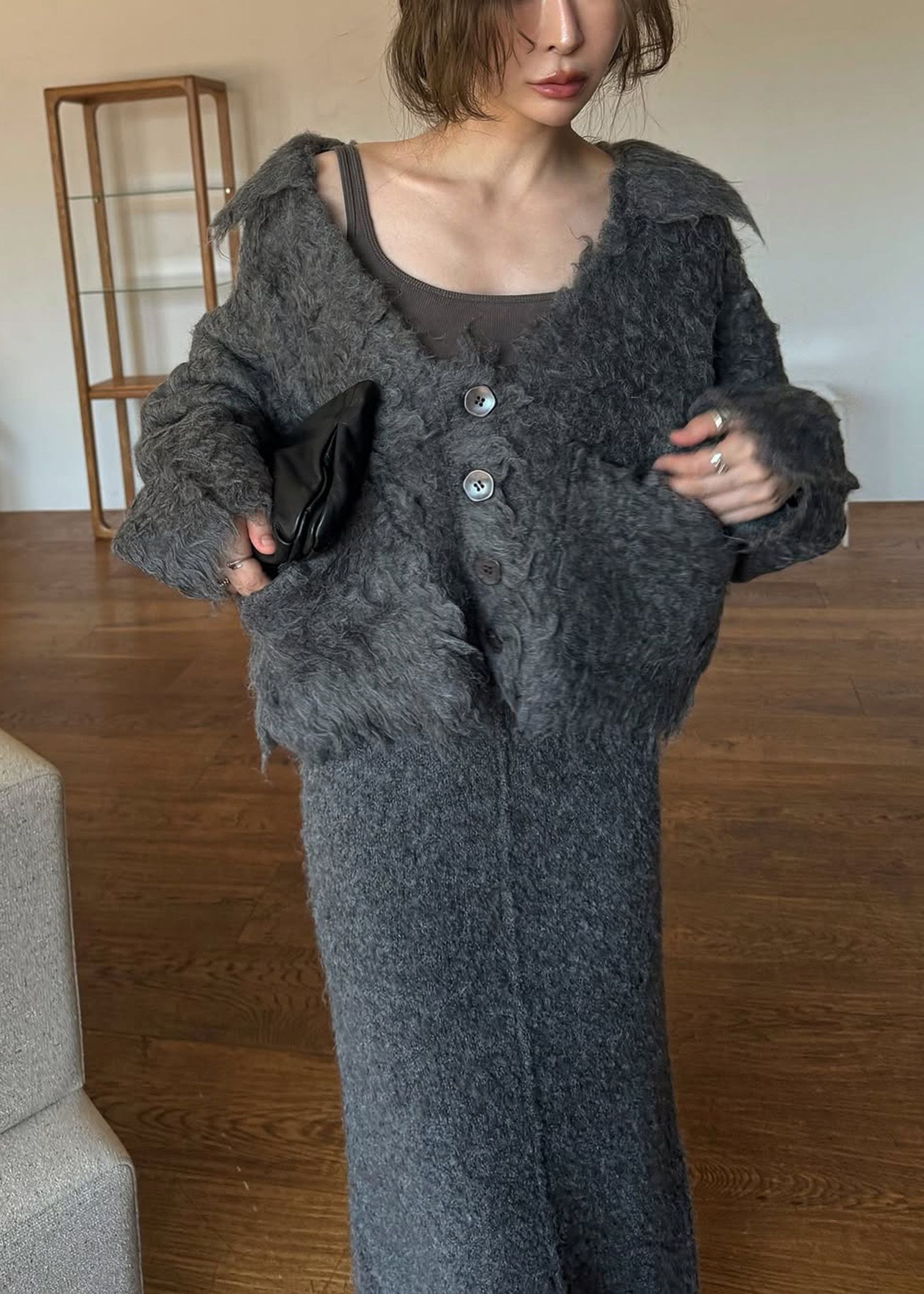 brushed lightly reversible knit cardigan
