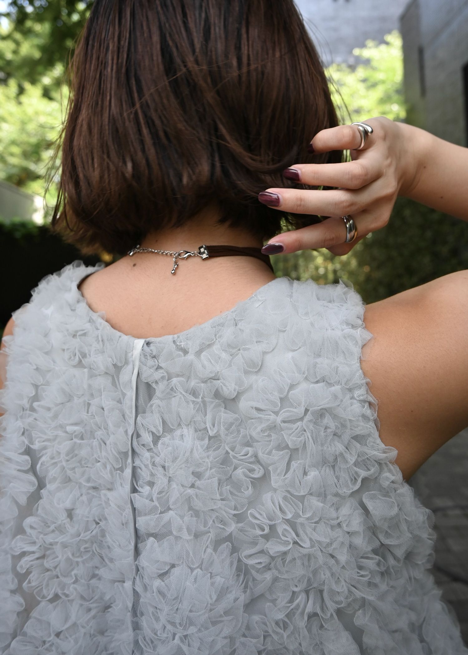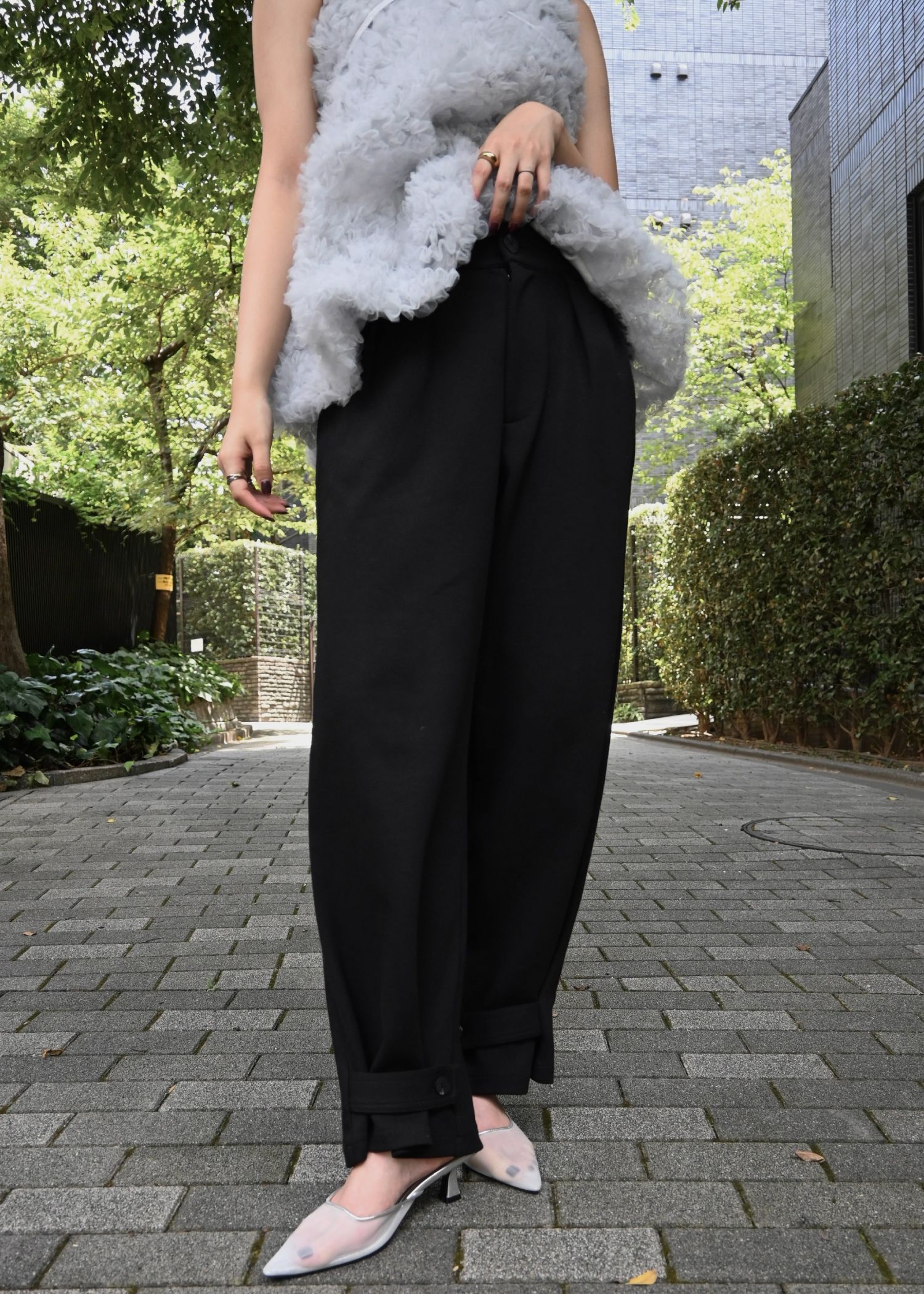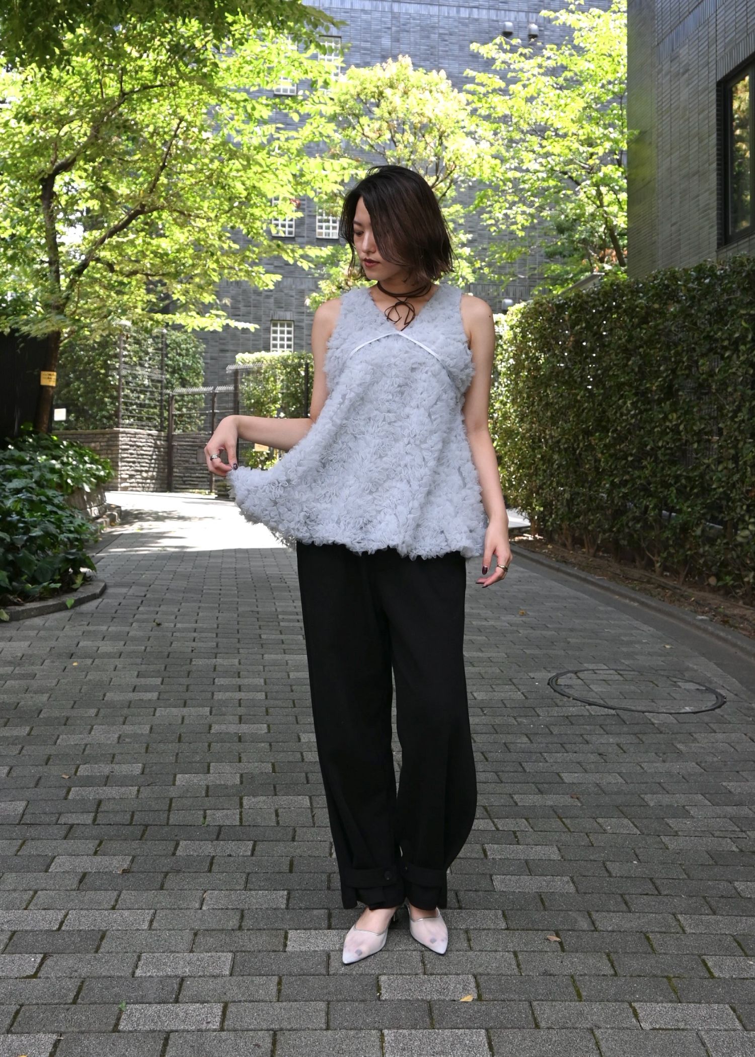 circle tulle motif balloon peplum nosleeve tops