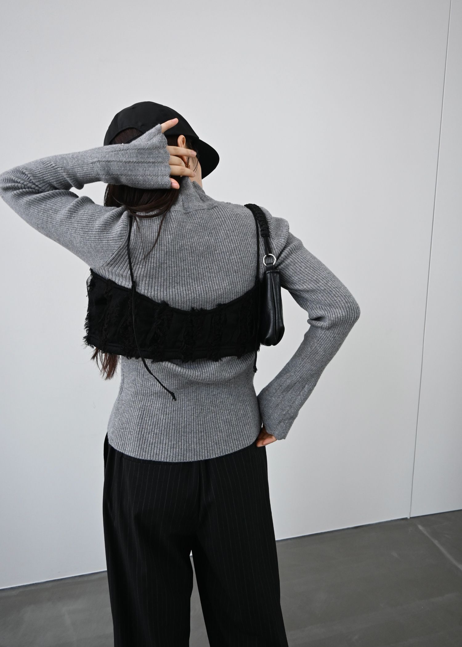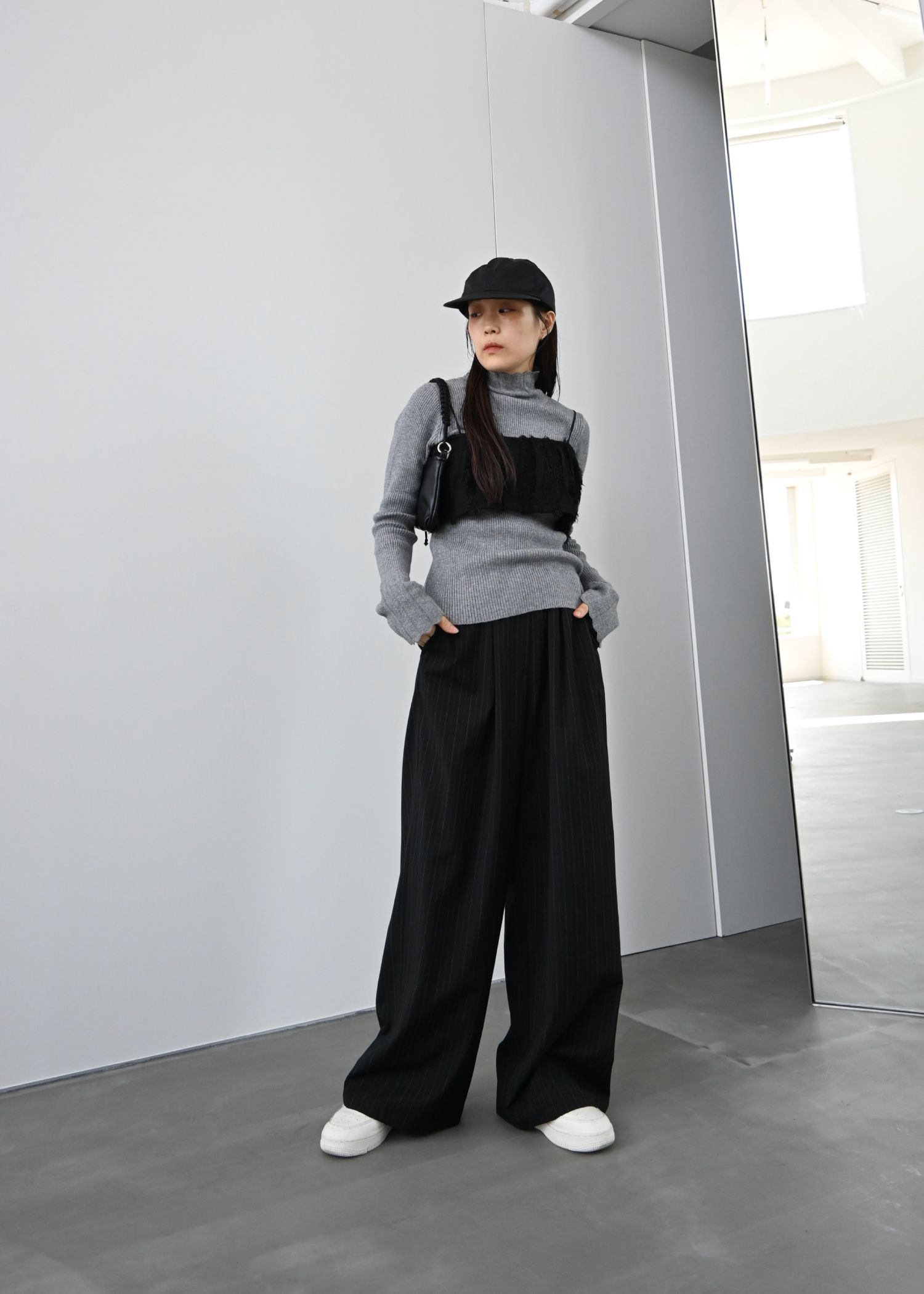 fringe tulle stripe 2way camisole