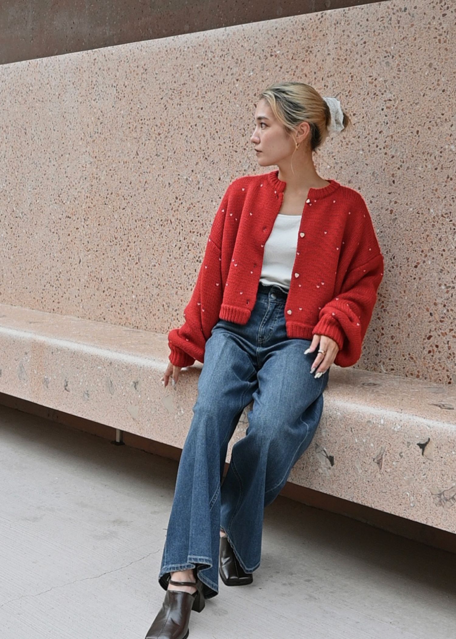 【Healthy DENIM × WILLFULLY】"Harmonia" waist frill wide denim PT